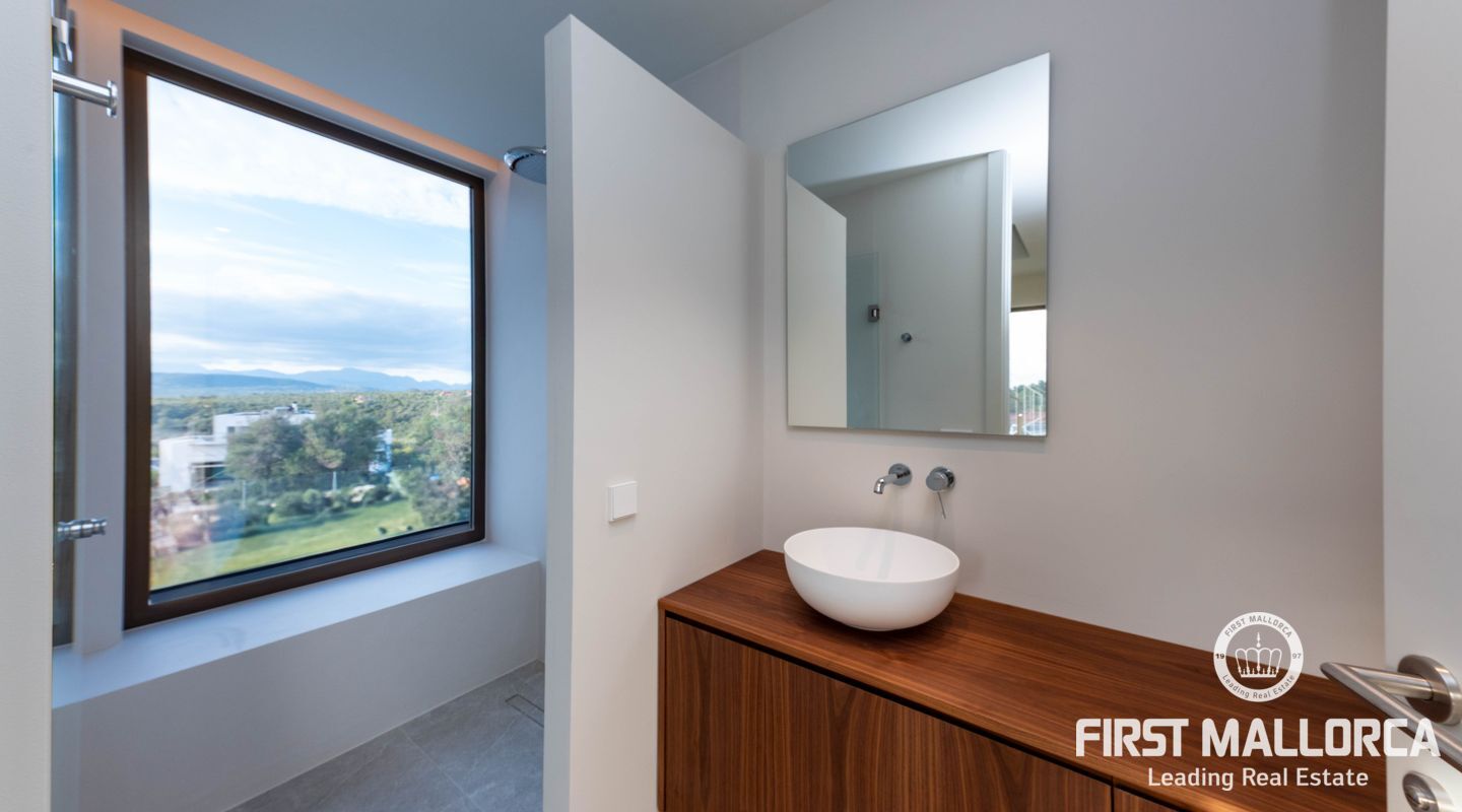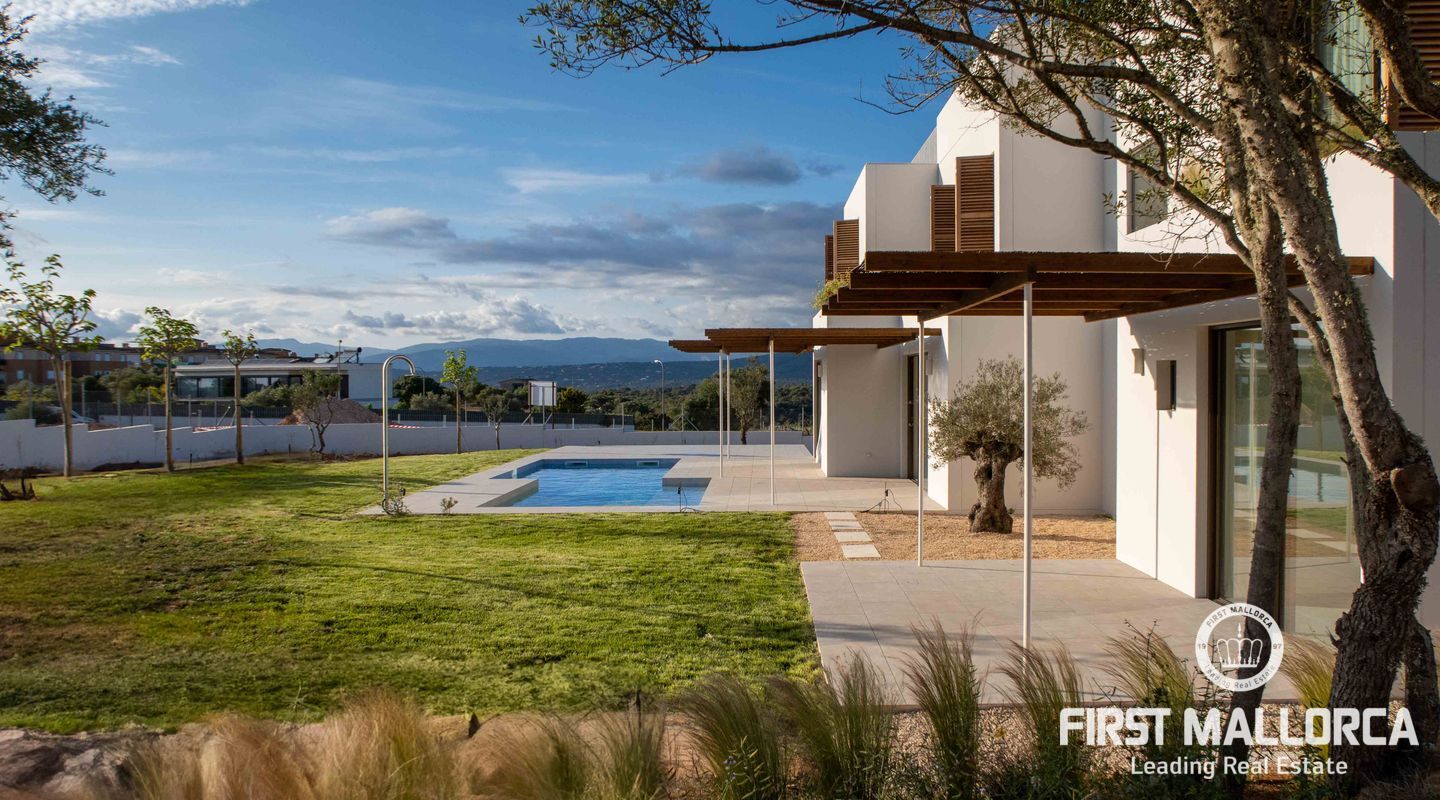 This exclusive newly built villa in Son Gual, Palma offers unparalleled views of the Tramuntana mountains and the Bay of Palma. Thanks to its southwest orientation, the property enjoys sunlight throughout the day, creating a warm and bright atmosphere in every corner. The villa, distributed over two floors, has four spacious bedrooms and three elegant bathrooms, all designed with the highest quality materials. Features include an elevator for convenience and a garage with capacity for two vehicles. Located in the prestigious area of Son Gual, this property is in a serene setting, surrounded by nature, ideal for those seeking privacy and tranquility, but with the advantage of being just a few minutes drive from the center of Palma.