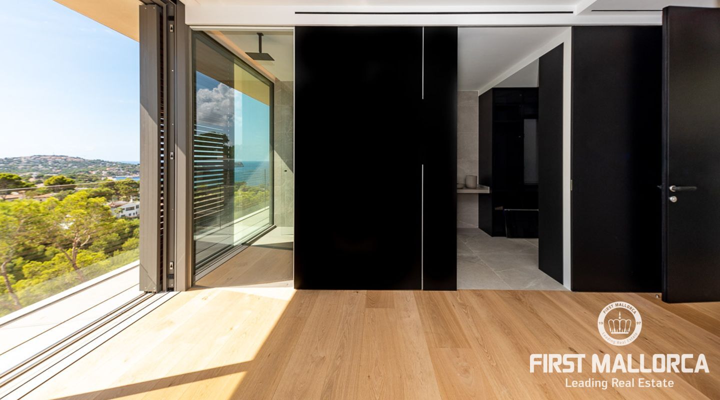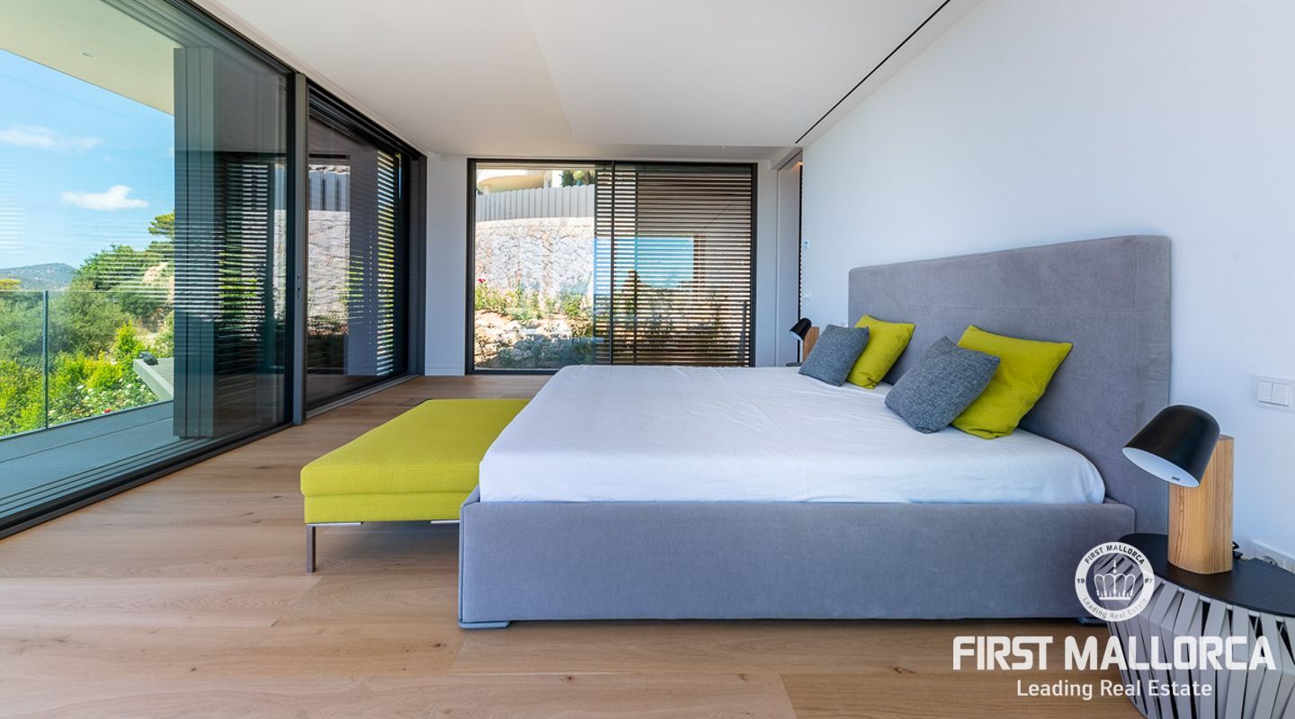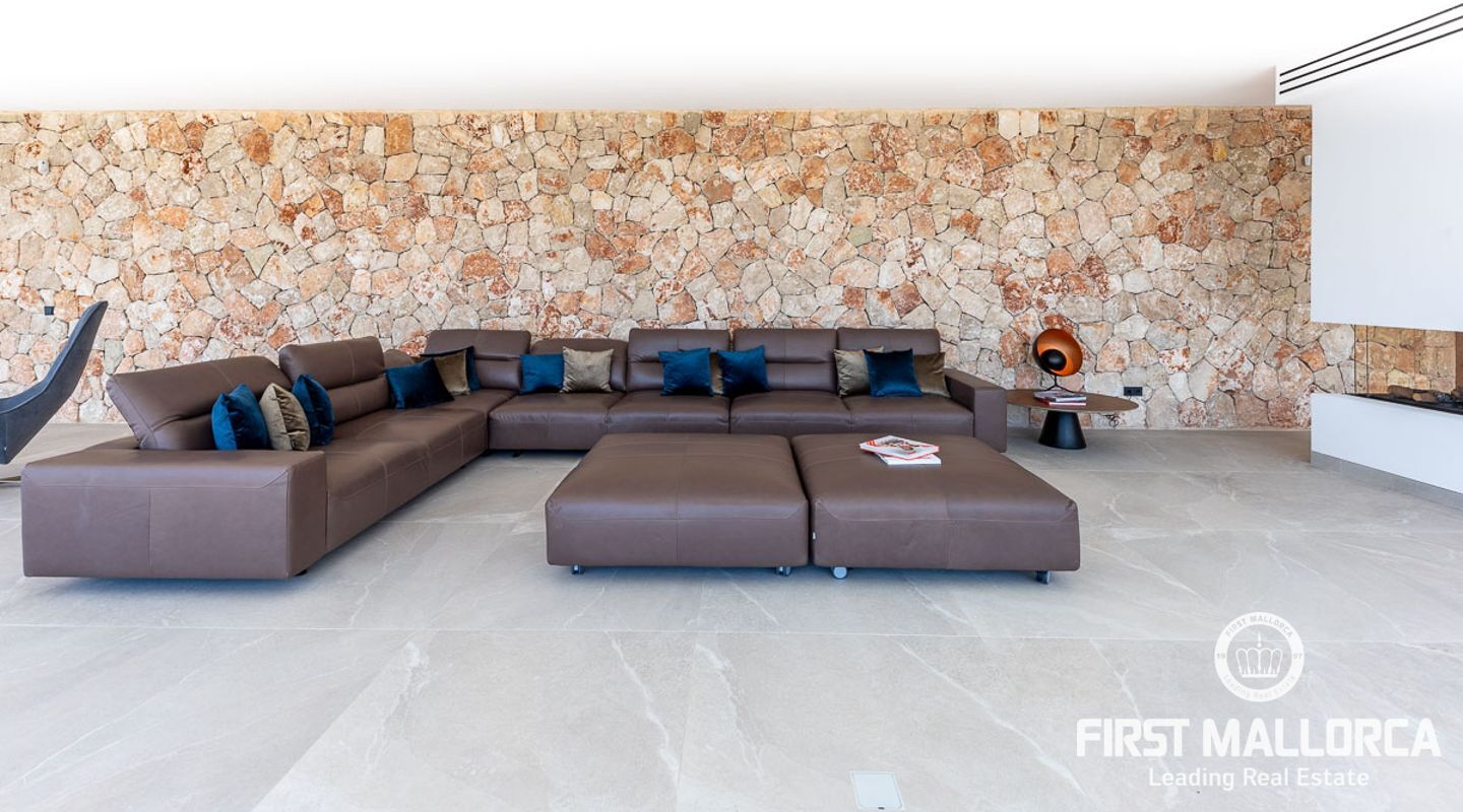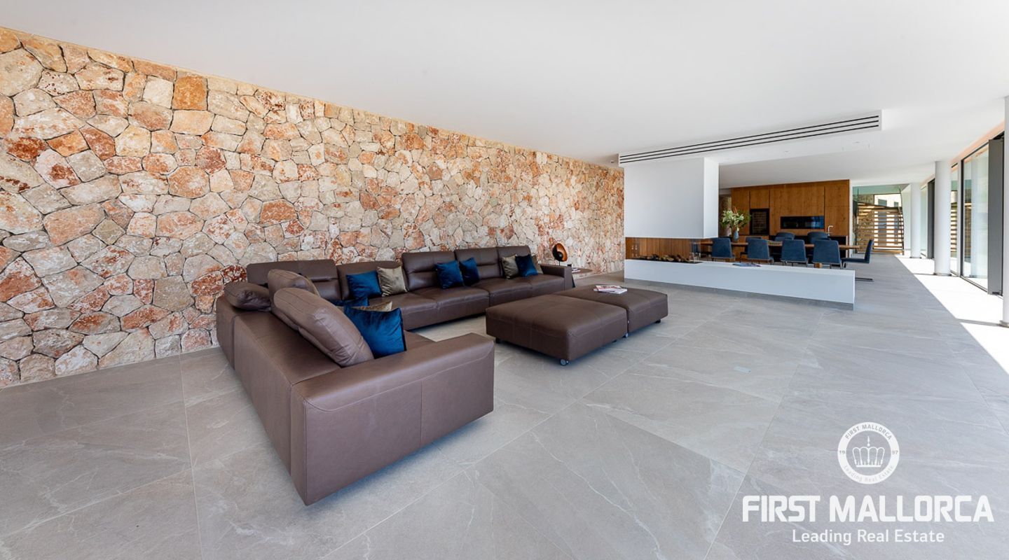 This impressive villa with over 700m2 of built area is located in an elevated position in a secluded private urbanisation in Costa de La Calma. The modern property with best privacy offers on three floors, all connected by lift and stairs, highest living comfort and impressive views to the sea and the surrounding landscape. A total of three double garages are available, one of which provides almost ground-level access to the villa's entrance and foyer. On this level are 4 elegant bedroom suites, with high quality bathrooms and ample fitted wardrobes. The master bedroom, with a large dressing area, offers an impressive, unobstructed view of the sea. One floor below is the spacious living / dining area with access to the sun terrace and the infinity pool. Furthermore, a luxury fitted kitchen, cloakroom, WC, a guest/office area with en-suite bathroom and a pantry are available here. The basement includes a utility room as well as space for the construction of e.g. a spa, home cinema or fitness room. The entire villa is equipped with high-quality materials such as wood, natural stone, as well as fantastic and sensible details, including air conditioning hot/cold, underfloor heating, double glazing, aluminium windows, lift, intelligent house control, shading systems and much more. Please contact us at any time to arrange a viewing.