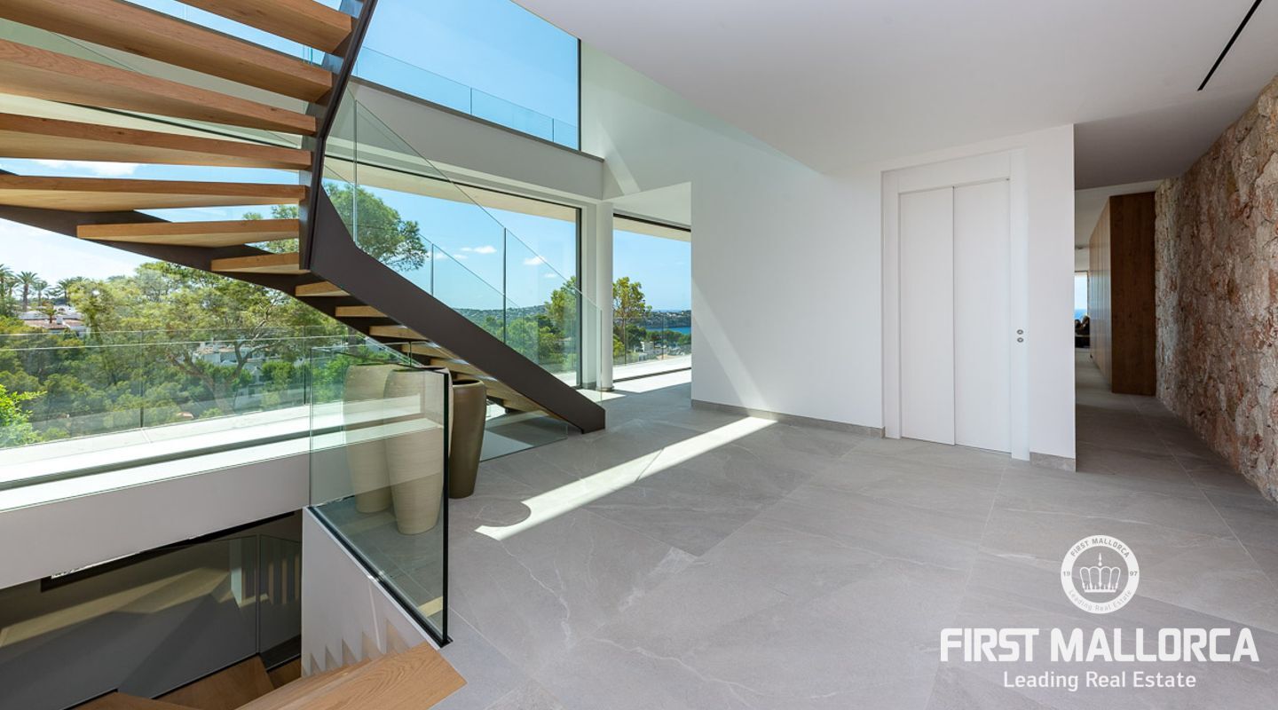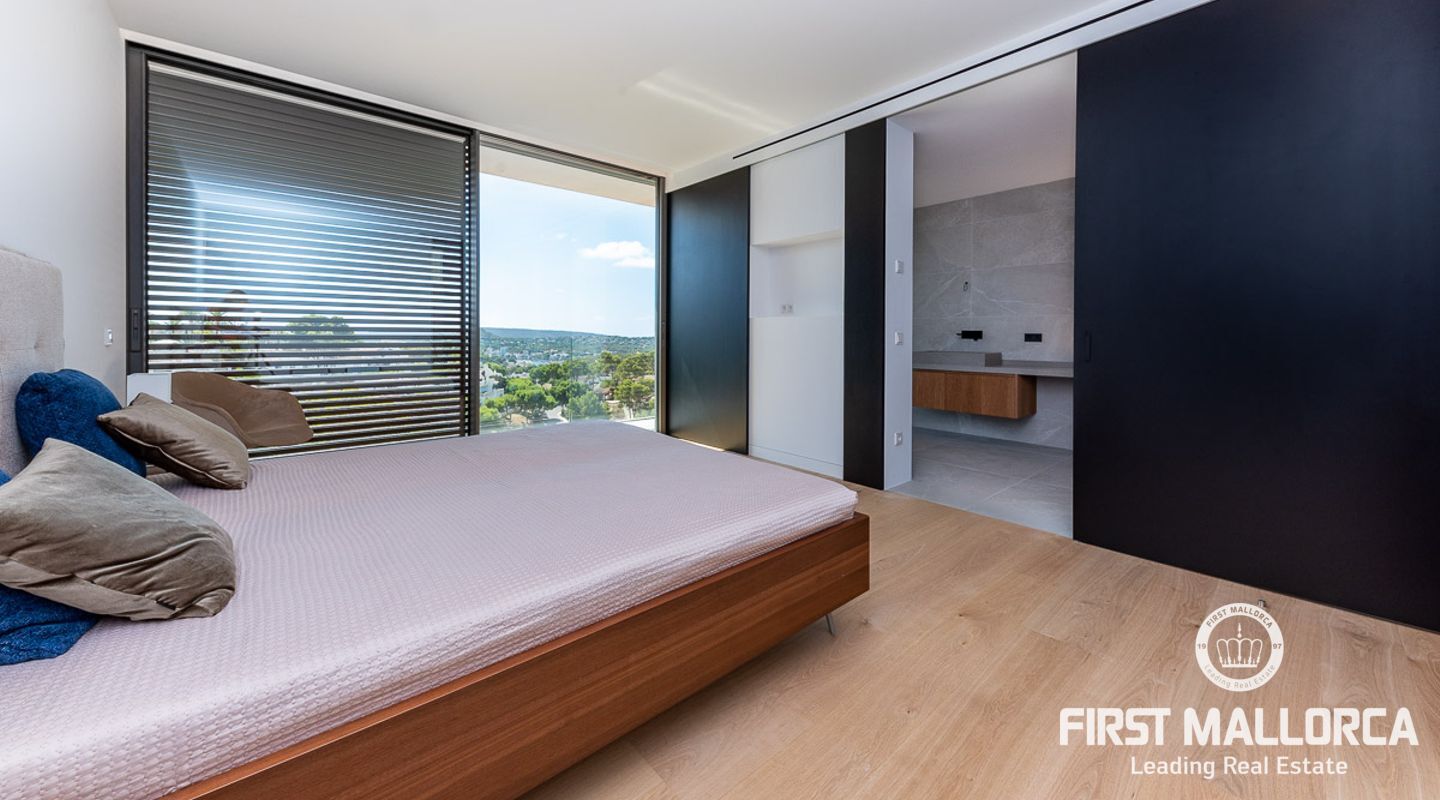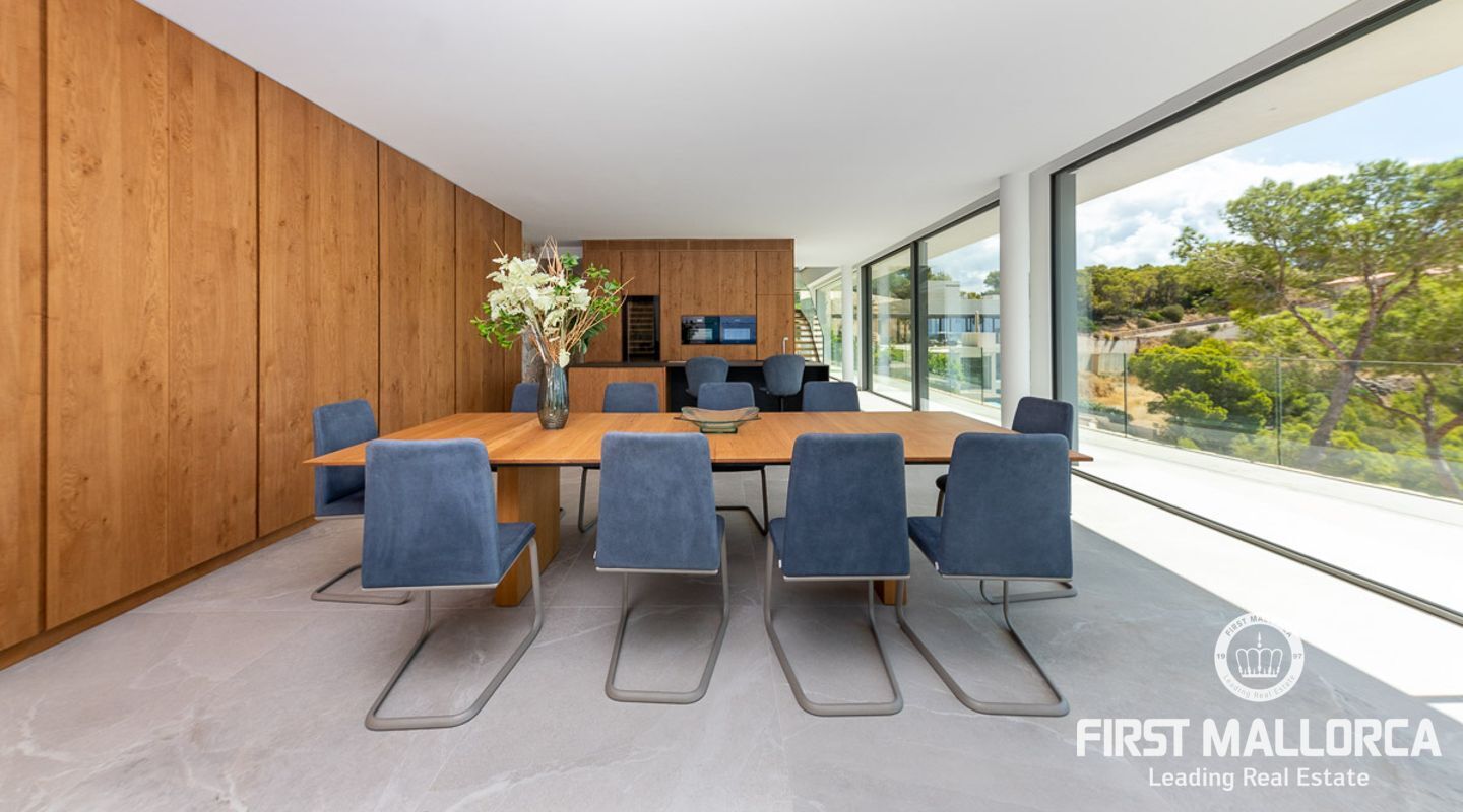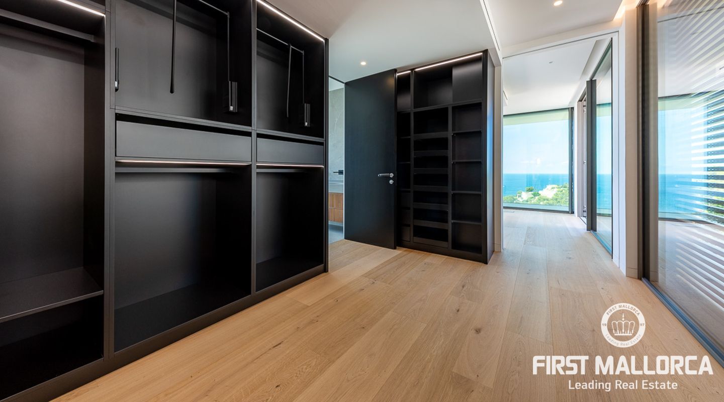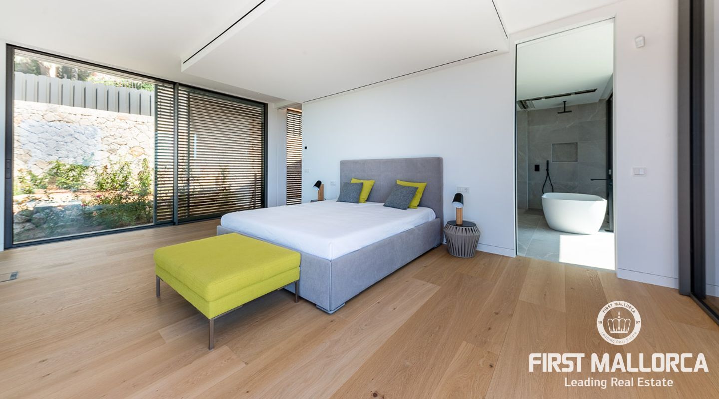 This impressive villa with over 700m2 of built area is located in an elevated position in a secluded private urbanisation in Costa de La Calma. The modern property with best privacy offers on three floors, all connected by lift and stairs, highest living comfort and impressive views to the sea and the surrounding landscape. A total of three double garages are available, one of which provides almost ground-level access to the villa's entrance and foyer. On this level are 4 elegant bedroom suites, with high quality bathrooms and ample fitted wardrobes. The master bedroom, with a large dressing area, offers an impressive, unobstructed view of the sea. One floor below is the spacious living / dining area with access to the sun terrace and the infinity pool. Furthermore, a luxury fitted kitchen, cloakroom, WC, a guest/office area with en-suite bathroom and a pantry are available here. The basement includes a utility room as well as space for the construction of e.g. a spa, home cinema or fitness room. The entire villa is equipped with high-quality materials such as wood, natural stone, as well as fantastic and sensible details, including air conditioning hot/cold, underfloor heating, double glazing, aluminium windows, lift, intelligent house control, shading systems and much more. Please contact us at any time to arrange a viewing.