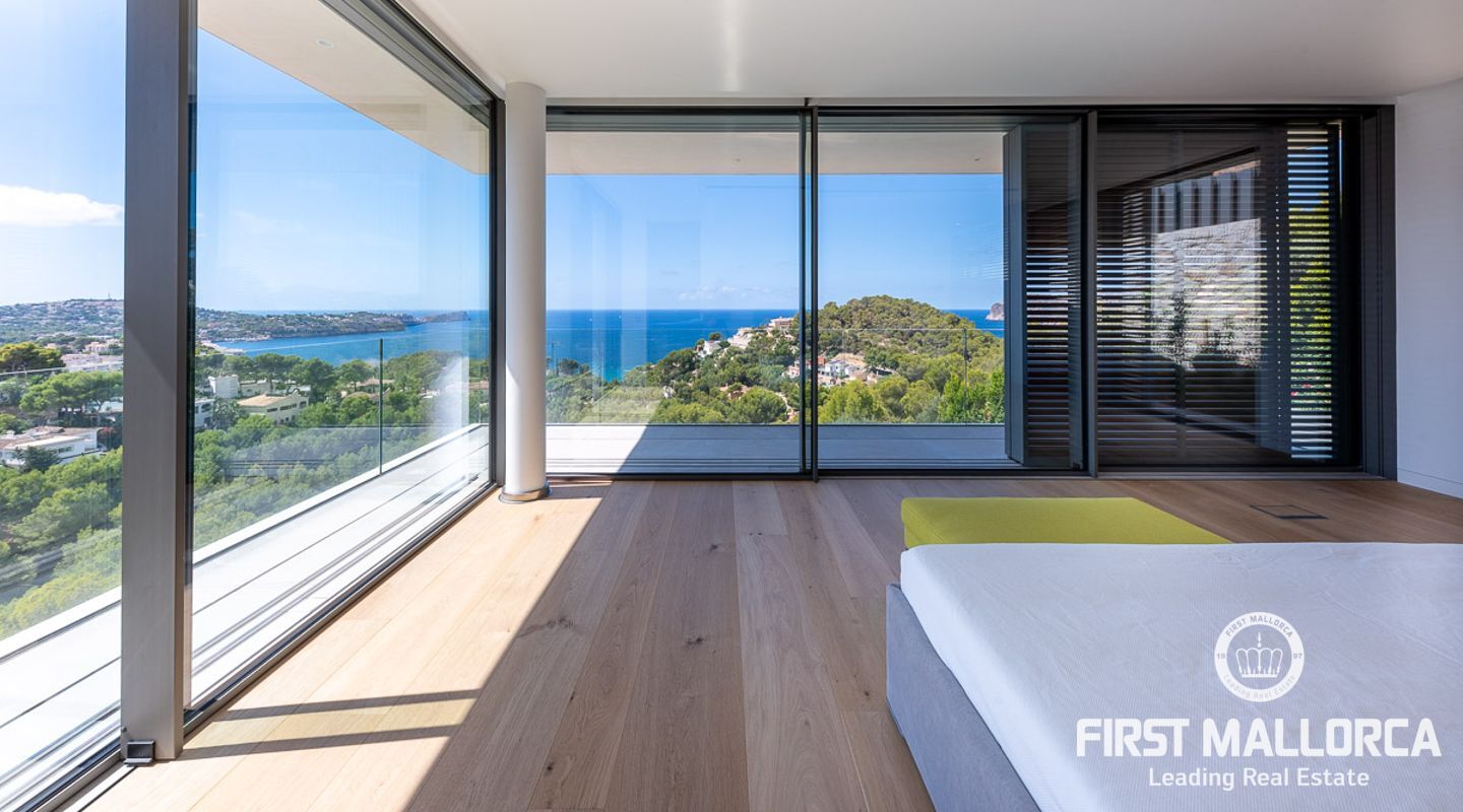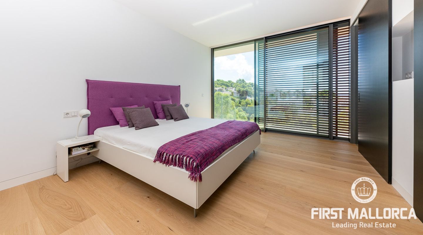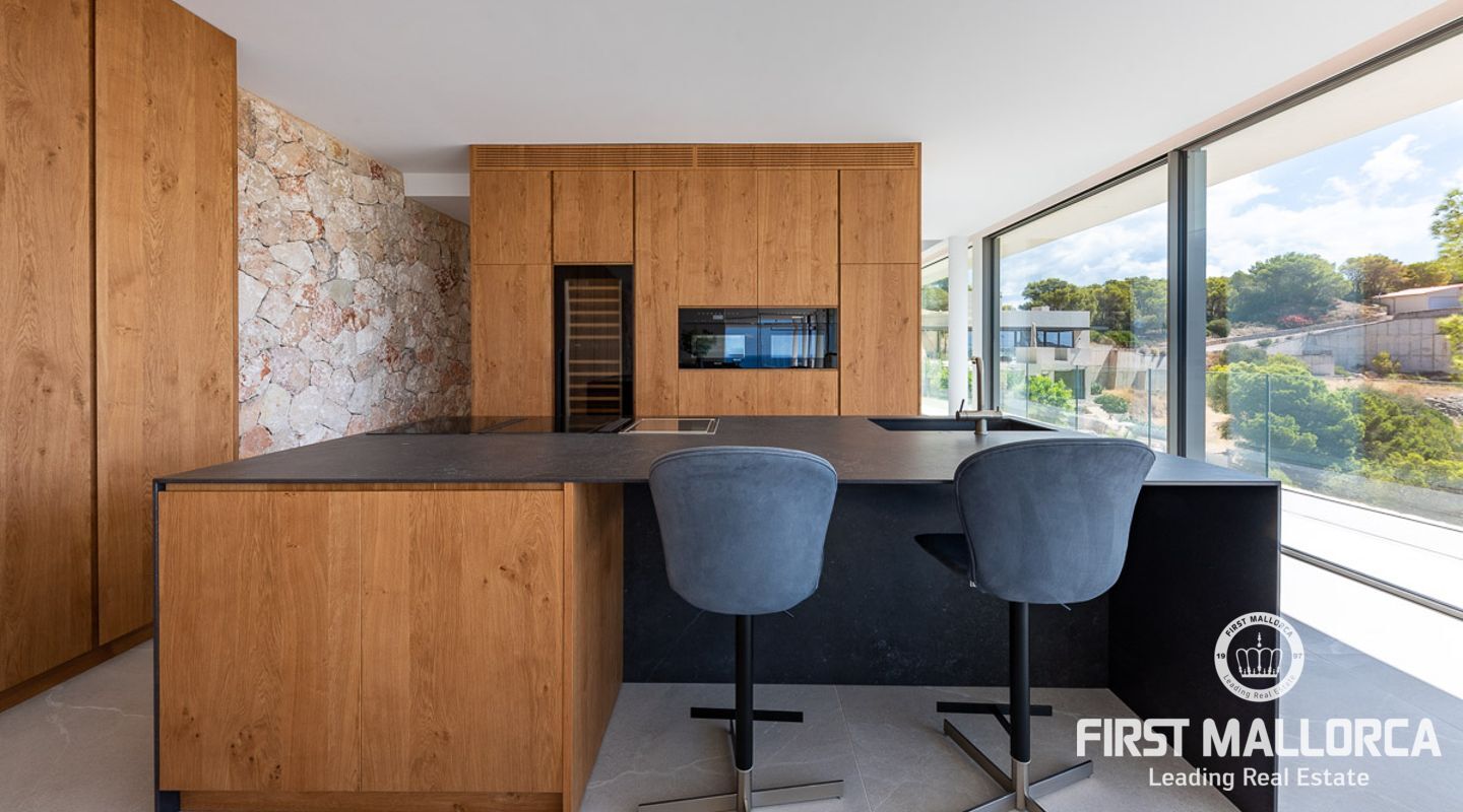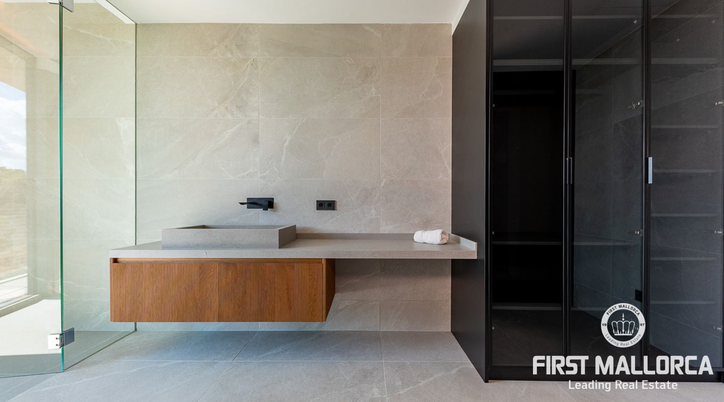 This impressive villa with over 700m2 of built area is located in an elevated position in a secluded private urbanisation in Costa de La Calma. The modern property with best privacy offers on three floors, all connected by lift and stairs, highest living comfort and impressive views to the sea and the surrounding landscape. A total of three double garages are available, one of which provides almost ground-level access to the villa's entrance and foyer. On this level are 4 elegant bedroom suites, with high quality bathrooms and ample fitted wardrobes. The master bedroom, with a large dressing area, offers an impressive, unobstructed view of the sea. One floor below is the spacious living / dining area with access to the sun terrace and the infinity pool. Furthermore, a luxury fitted kitchen, cloakroom, WC, a guest/office area with en-suite bathroom and a pantry are available here. The basement includes a utility room as well as space for the construction of e.g. a spa, home cinema or fitness room. The entire villa is equipped with high-quality materials such as wood, natural stone, as well as fantastic and sensible details, including air conditioning hot/cold, underfloor heating, double glazing, aluminium windows, lift, intelligent house control, shading systems and much more. Please contact us at any time to arrange a viewing.