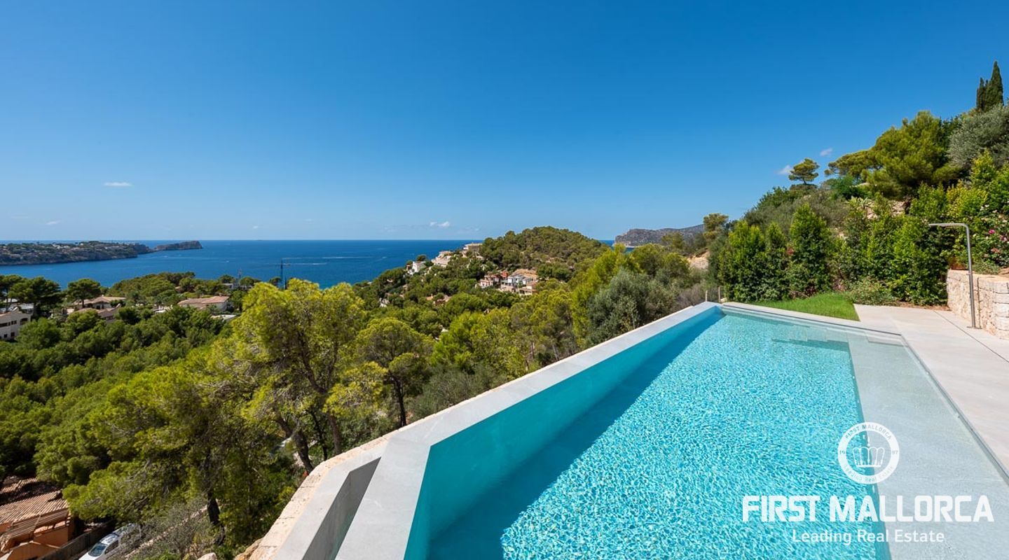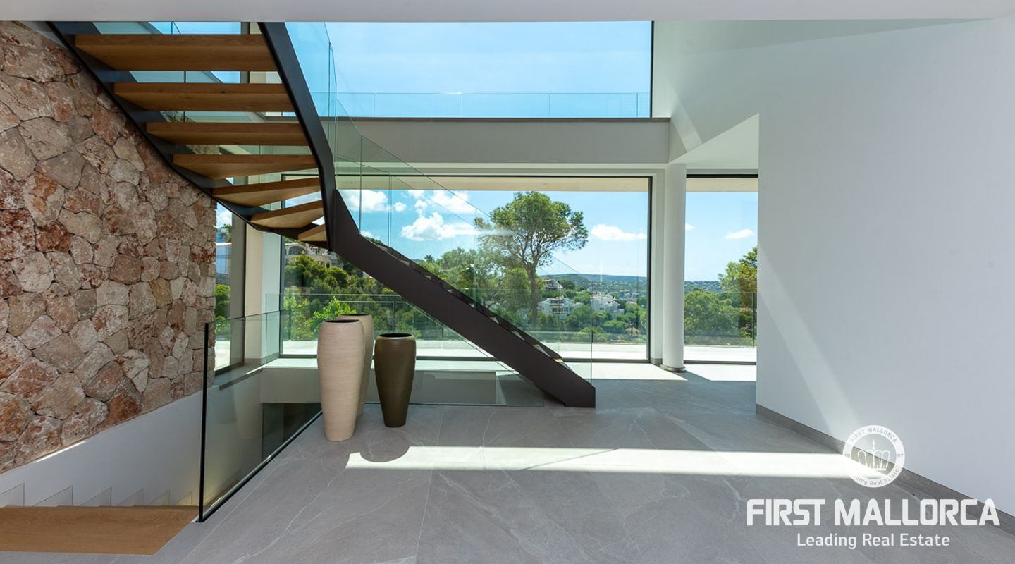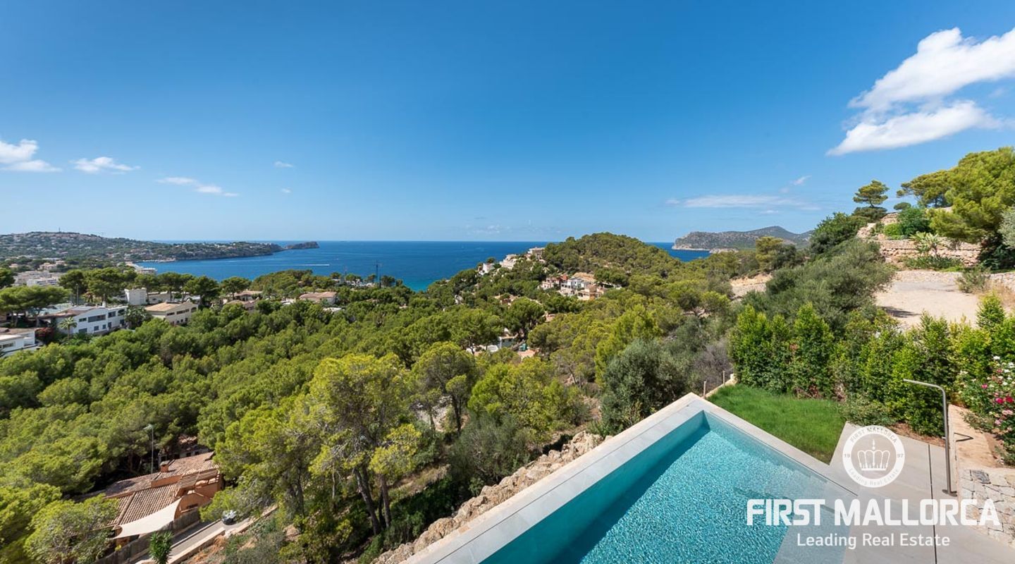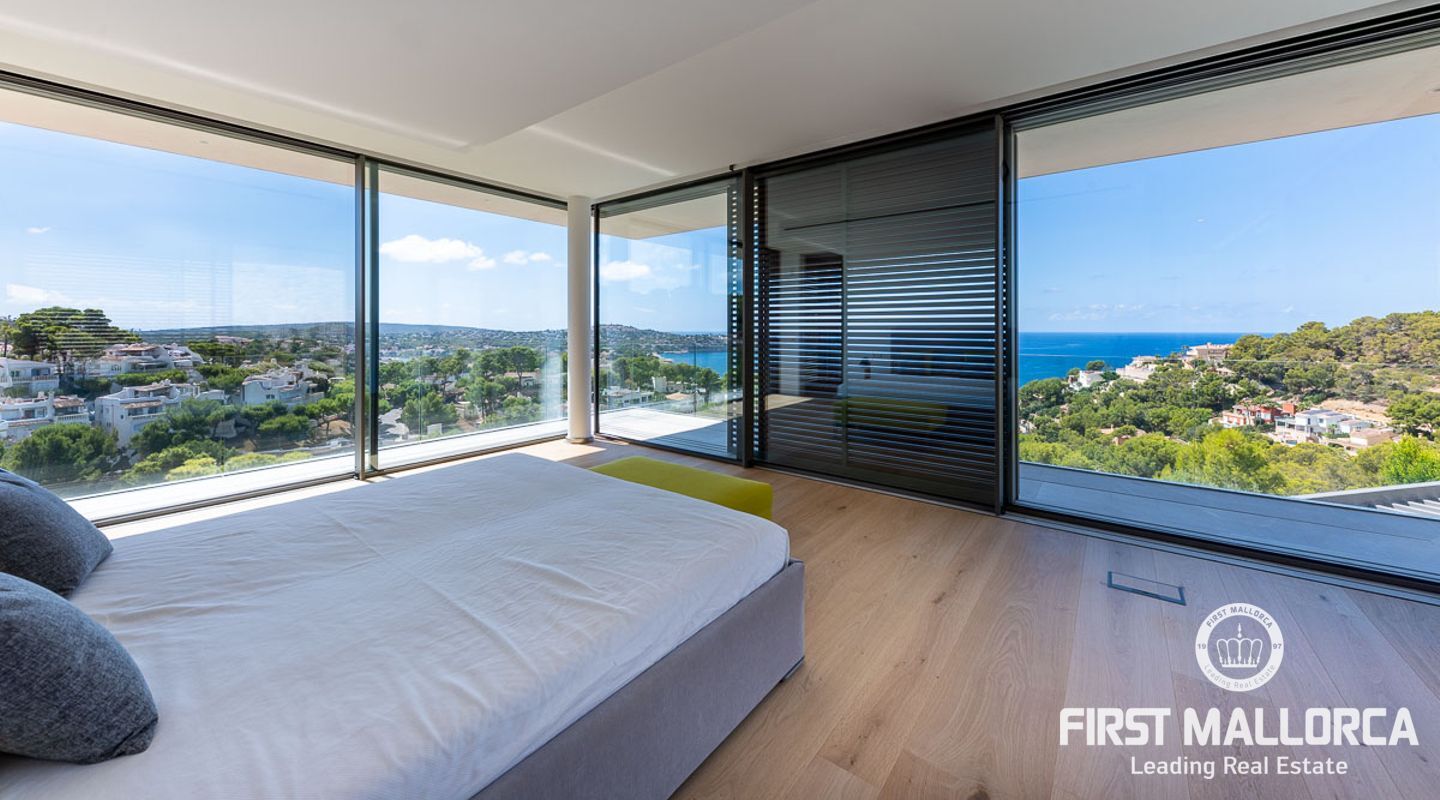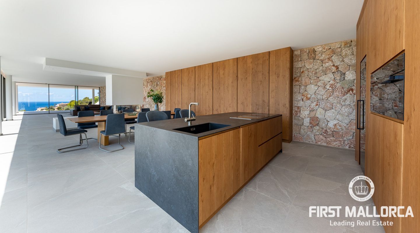This impressive villa with over 700m2 of built area is located in an elevated position in a secluded private urbanisation in Costa de La Calma. The modern property with best privacy offers on three floors, all connected by lift and stairs, highest living comfort and impressive views to the sea and the surrounding landscape. A total of three double garages are available, one of which provides almost ground-level access to the villa's entrance and foyer. On this level are 4 elegant bedroom suites, with high quality bathrooms and ample fitted wardrobes. The master bedroom, with a large dressing area, offers an impressive, unobstructed view of the sea. One floor below is the spacious living / dining area with access to the sun terrace and the infinity pool. Furthermore, a luxury fitted kitchen, cloakroom, WC, a guest/office area with en-suite bathroom and a pantry are available here. The basement includes a utility room as well as space for the construction of e.g. a spa, home cinema or fitness room. The entire villa is equipped with high-quality materials such as wood, natural stone, as well as fantastic and sensible details, including air conditioning hot/cold, underfloor heating, double glazing, aluminium windows, lift, intelligent house control, shading systems and much more. Please contact us at any time to arrange a viewing.