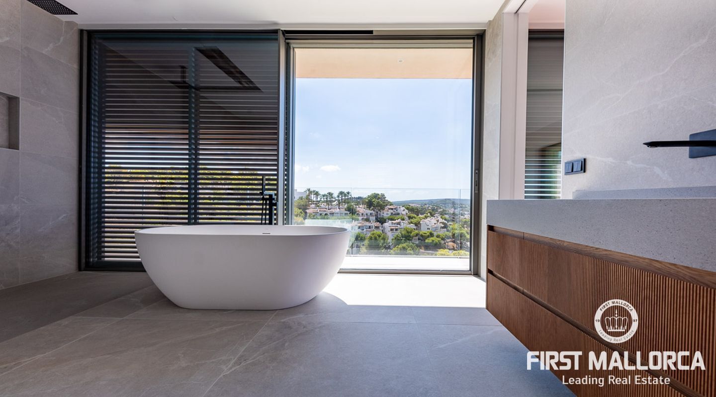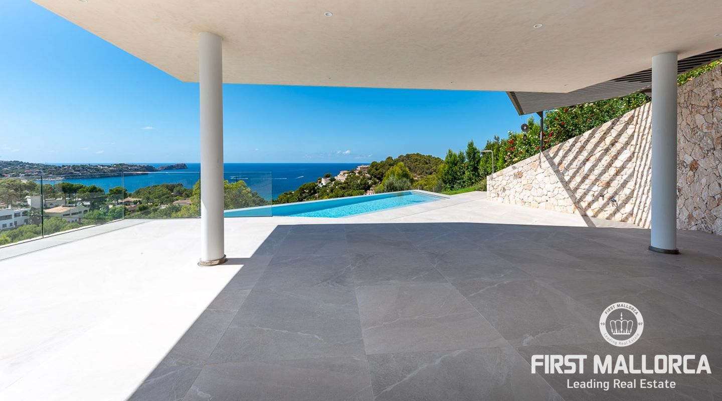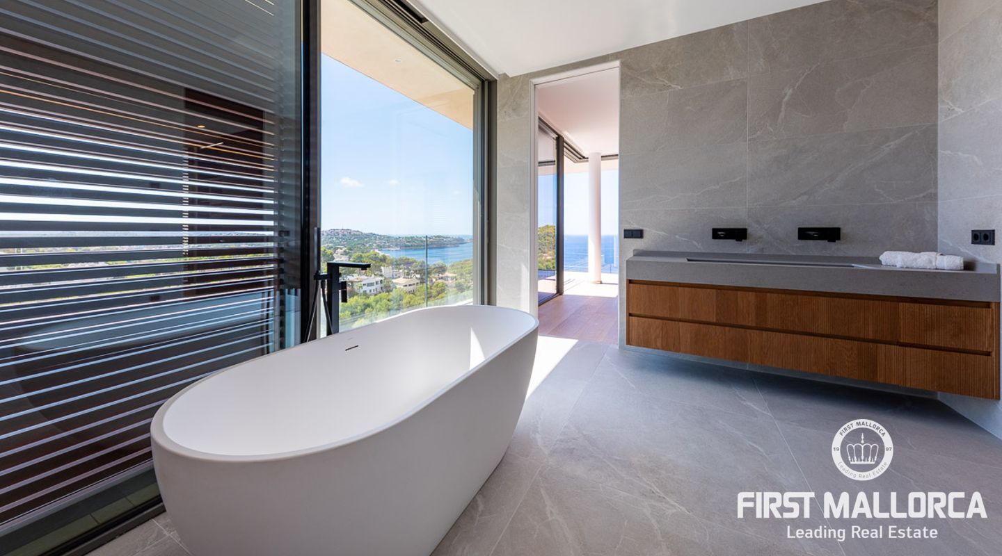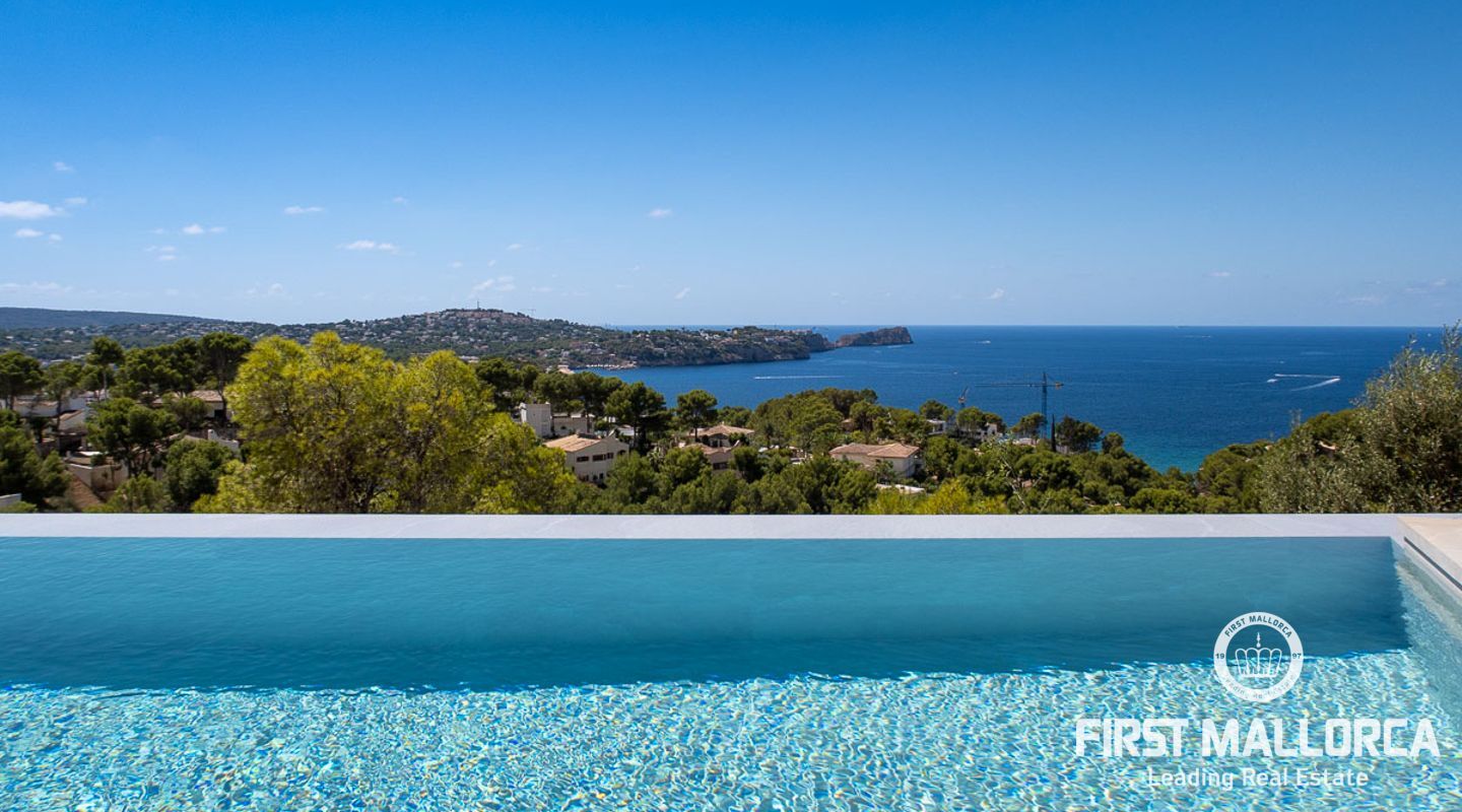 This impressive villa with over 700m2 of built area is located in an elevated position in a secluded private urbanisation in Costa de La Calma. The modern property with best privacy offers on three floors, all connected by lift and stairs, highest living comfort and impressive views to the sea and the surrounding landscape. A total of three double garages are available, one of which provides almost ground-level access to the villa's entrance and foyer. On this level are 4 elegant bedroom suites, with high quality bathrooms and ample fitted wardrobes. The master bedroom, with a large dressing area, offers an impressive, unobstructed view of the sea. One floor below is the spacious living / dining area with access to the sun terrace and the infinity pool. Furthermore, a luxury fitted kitchen, cloakroom, WC, a guest/office area with en-suite bathroom and a pantry are available here. The basement includes a utility room as well as space for the construction of e.g. a spa, home cinema or fitness room. The entire villa is equipped with high-quality materials such as wood, natural stone, as well as fantastic and sensible details, including air conditioning hot/cold, underfloor heating, double glazing, aluminium windows, lift, intelligent house control, shading systems and much more. Please contact us at any time to arrange a viewing.