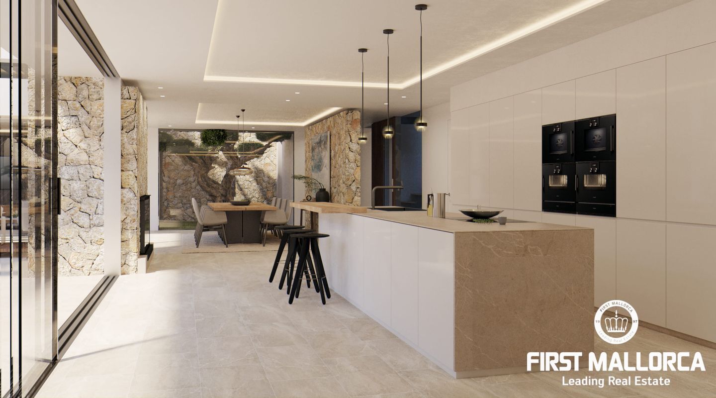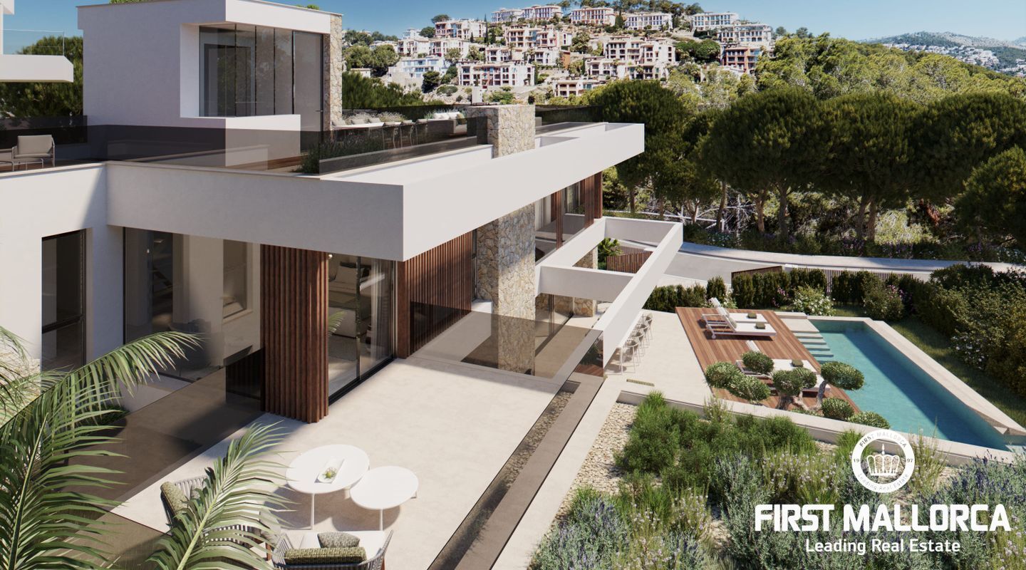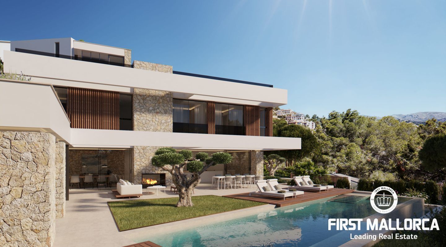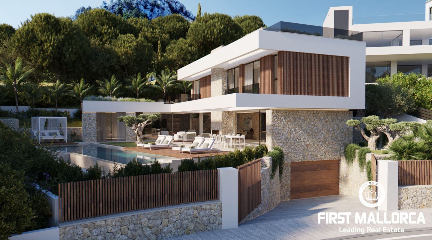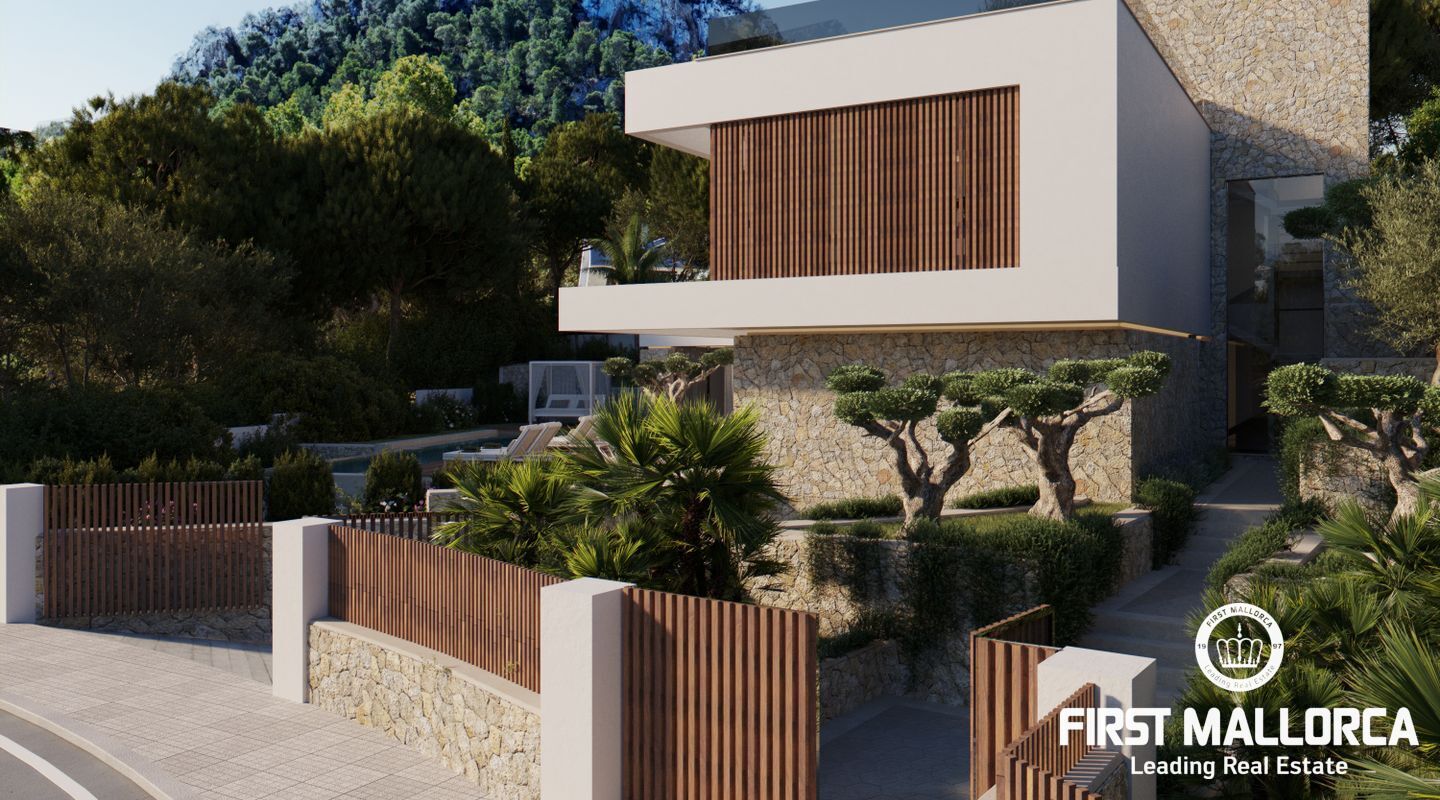 Situated in the exclusive Cala Llamp area near Port Andratx, this project features a three-story detached house with a total built area of 518.32 m², including a spacious infinity pool, multiple terraces, and lush gardens. The property elegantly combines Mediterranean style with modern amenities.