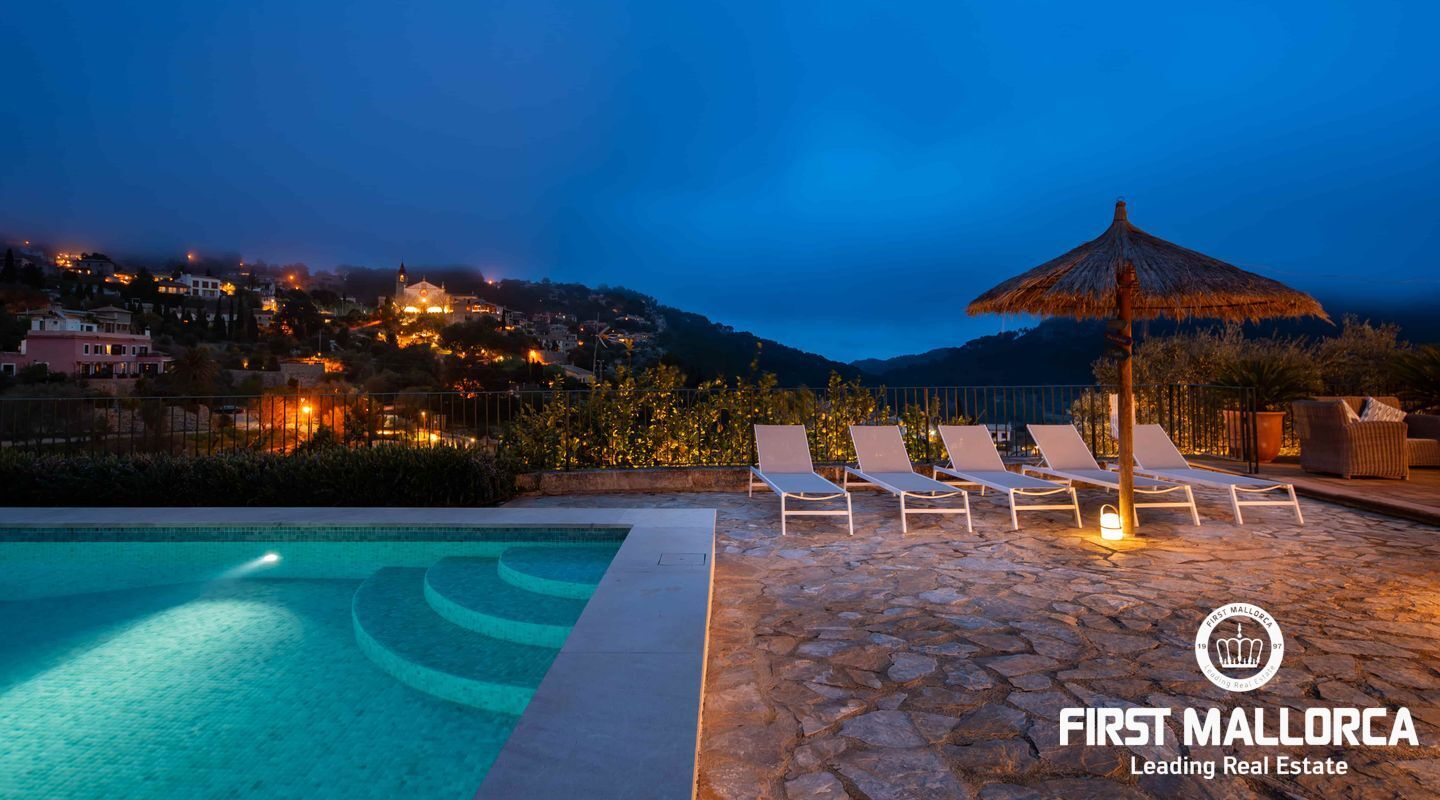 We present this fantastic property in Galilea, a small village near Puigpunyent, part of the wonderful Serra de Tramuntana. This independent two-story villa, plus a basement, features a pool and a well-maintained garden. The villa is located in a position that offers dreamlike views. Although the construction dates back to 2006, its design is a replica of the old stone houses of the area, with the use of traditional materials such as natural stone cladding on the facades, wooden windows and shutters (adapted with double glazing), terracotta flooring on the terraces, and clay roof tiles. This is combined with modern and practical elements such as central heating, air conditioning, and a modern kitchen and bathrooms. The distribution of this property is excellent, being spacious and bright. In the basement, you'll find the garage, a cinema room, water tank, additional storage, boiler, and other machinery such as water filters and AC condenser. The house has 4 bedrooms, and most of the rooms, porches, and terraces benefit from natural light and views of the village and surrounding countryside. On the ground floor, there is a large living-dining room with access to the porch, a kitchen with a breakfast area, an office/bedroom, and a full bathroom. The property blends interior and exterior spaces well and features attractive design elements such as the double-height entrance hall with its large open staircase. On the first floor, there are 4 bedrooms, two bathrooms, and terraces. The master suite, with a walk-in closet, is particularly appealing. The high ceilings give the property a palatial feel. Another important detail is the excellent investment potential of its vacation rental license, renewed in 2021, which offers very high profitability for the property. Contact the sales specialists at First Mallorca for more information.