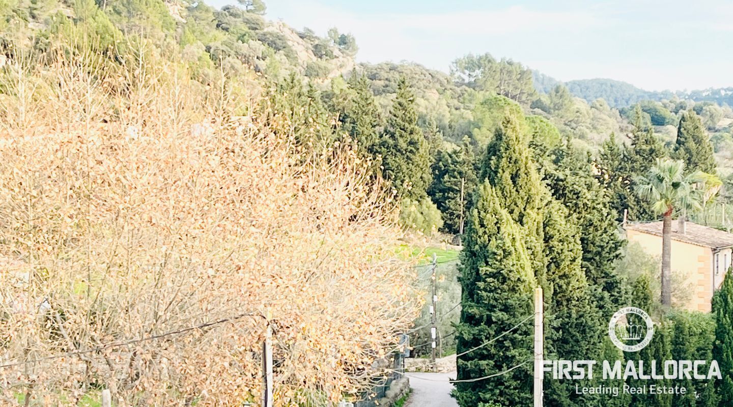 Pretty Mallorcan village house with the typical style elements which were preserved during the reform in 2004/2005, exposed beams, stone walls, fireplace in the kitchen, well for rain water. The house has a spacious living area from which you can reach the kitchen, there is room to open the kitchen to the living room. From the living area there is another room which could be used as a study and a full bathroom with bath. On the first floor there are two more bedrooms, one of which leads to a terrace and another bathroom with shower. From the first floor there is an internal staircase leading to the large roof terrace with panoramic views of the Tramuntana landscape.