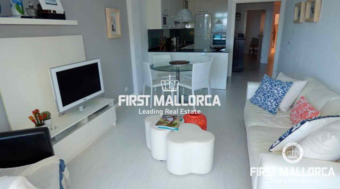 Se alquila bonito apartamento de dos habitaciones y dos baños de primera línea en Camp de Mar, totalmente amueblado y equipado. Esta propiedad cuenta con una ubicación privilegiada, en una comunidad con parque y piscina comunitaria y parking.