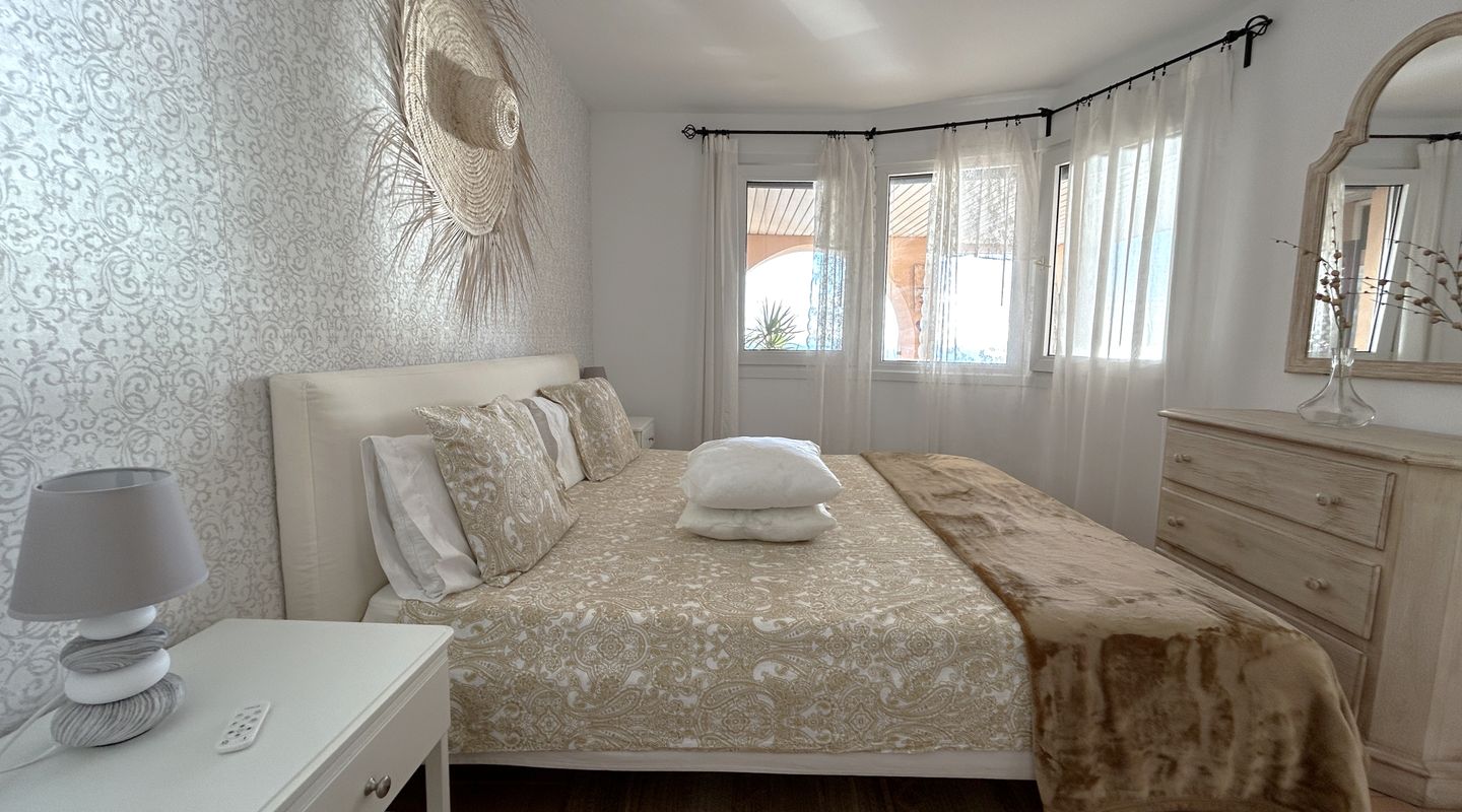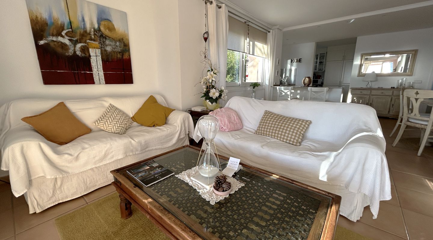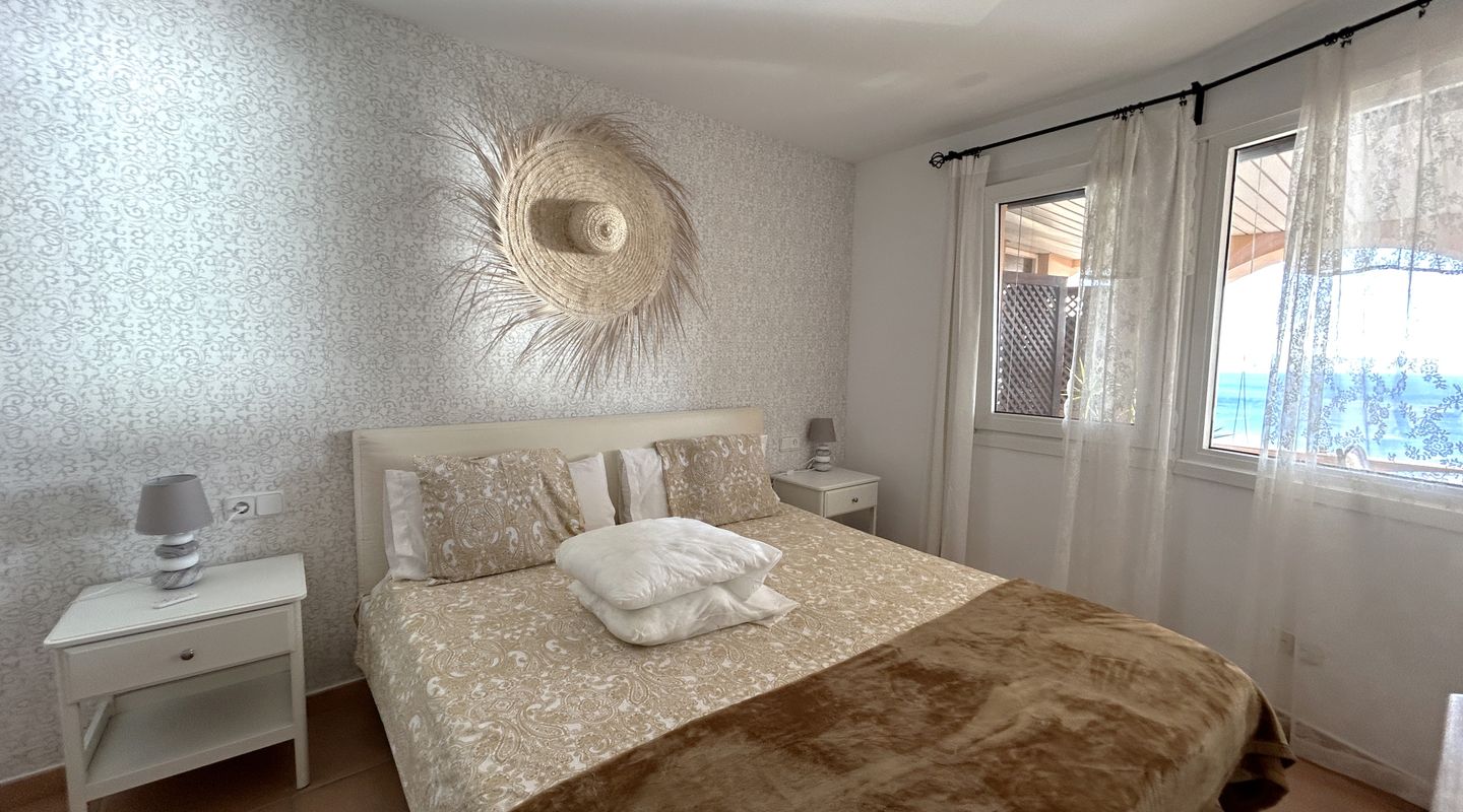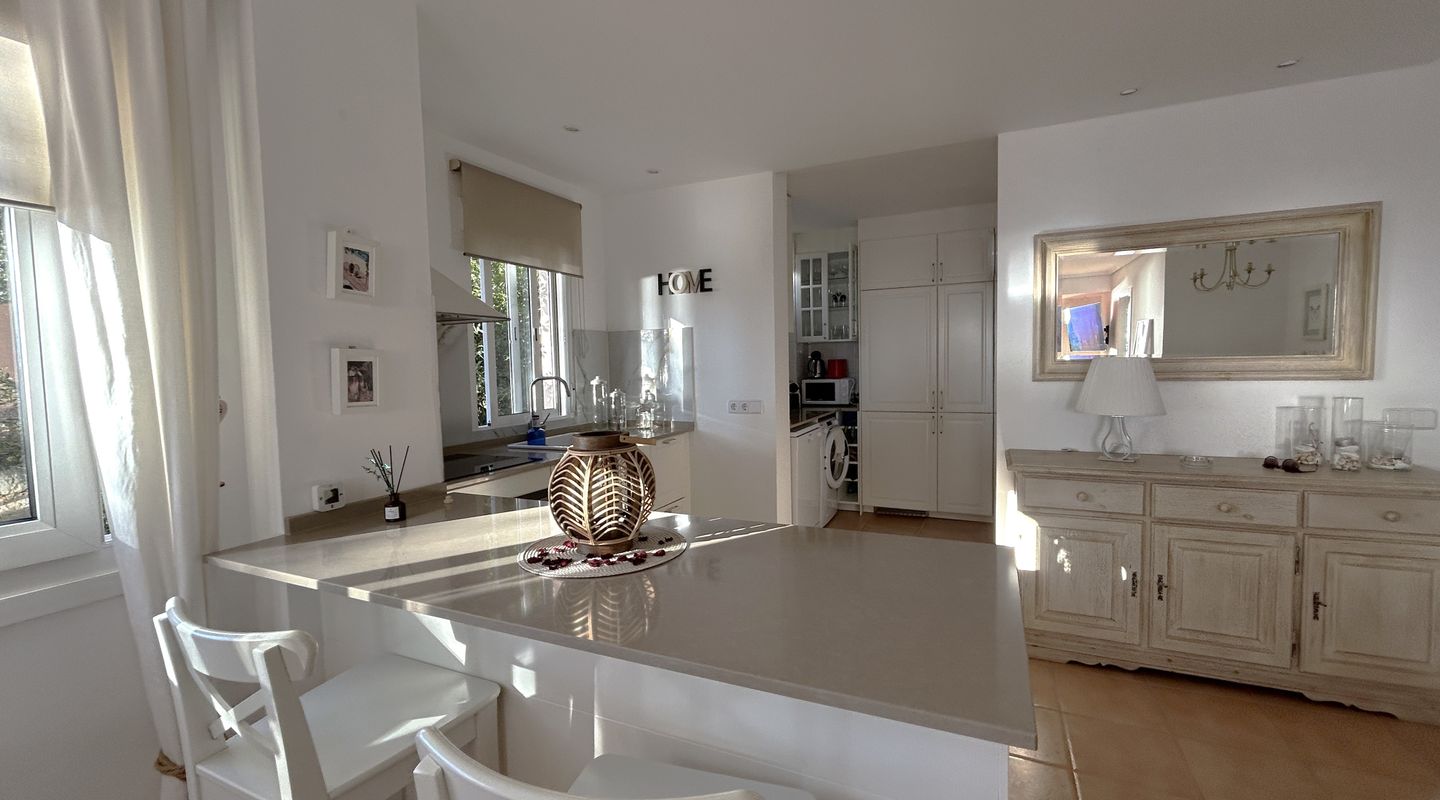 Apartamento con espectaculares vistas al mar en Illetas. Dispone de 2 dormitorios, 2 baños, cocina, salón comedor, amplia terraza y lavadero. Totalmente equipado con todos los electrodomésticos necesarios, suelo de terracota, aire acondicionado f/c. Dispone de 1 plaza de garaje y piscina exterior.