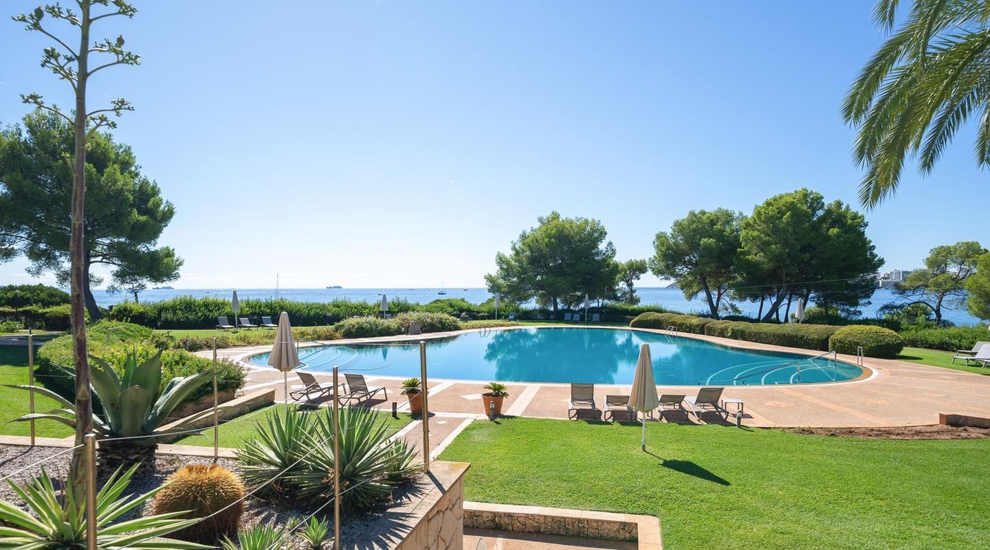 Bienvenido a su nuevo hogar de sueños en la exclusiva comunidad de Mardavall. Este impresionante apartamento con vistas al mar está ubicado justo al lado del prestigioso Hotel St. Regis Mardavall Mallorca y forma parte de un resort de 35,000m2 frente al mar. Con su ubicación privilegiada, estará a solo un corto paseo de 1.9 km de Puerto Portals.