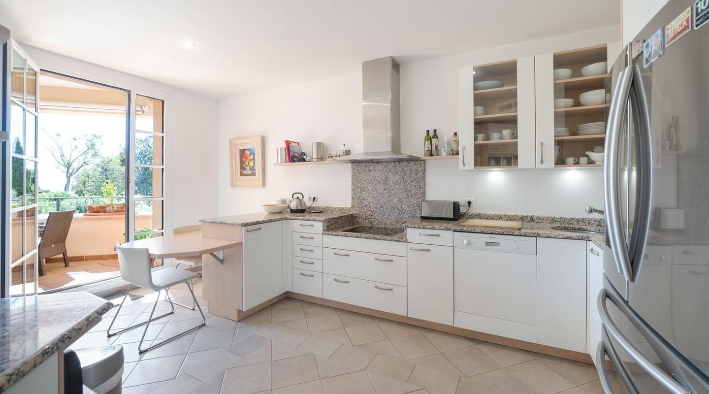 Este lujoso apartamento cuenta con un espacioso área de 191m2, completo con 2 dormitorios, 2 baños en suite, un aseo para invitados, un pasillo, una sala de estar y una cocina. La sala de estar, la cocina y el dormitorio principal tienen acceso a una gran terraza con vistas al mar y al jardín. La terraza cubierta tiene 39m2 y es perfecta para relajarse y disfrutar del hermoso clima mediterráneo.