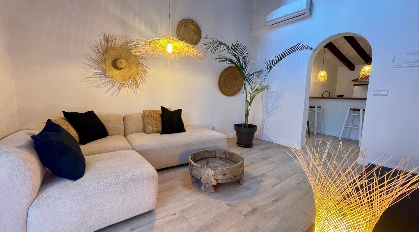 Apartamento reformado y amueblado con estilo moderno a pocos metros de la playa en Molinar. El apartamento tiene una amplia cocina equipada con comedor, una luminosa sala de estar, dos dormitorios, un baño con bañera y una azotea privada. El apartamento está totalmente equipado con toallas, vajilla, ropa de cama y dispone de lavadora, ventanas climalit, internet y aire acondicionado. Lo único que necesitas es tu propia maleta y podrás disfrutar del clima mediterráneo. El paseo marítimo está a sólo 2 minutos a pie, donde podrás disfrutar de una deliciosa bebida en uno de los cafés de la playa. En la zona hay restaurantes, bares, tiendas como Eroski, Lidl y no muy lejos está Ikea y el aeropuerto, al que se puede llegar rápidamente en transporte público. Llámenos para más información.