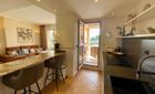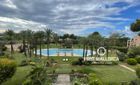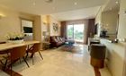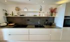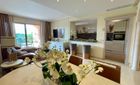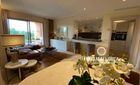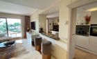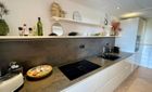 La moderna cocina de diseño Stork, totalmente equipada, se integra a la perfección con el salón-comedor de concepto abierto e incluye una elegante barra de desayuno. Desde aquí se accede a la amplia terraza de más de 33 m². Con su decoración elegante y chimenea, la terraza crea un ambiente lounge exclusivo, ideal para disfrutar de una copa o una cena gourmet mientras se contempla el clima mediterráneo y las vistas a la gran piscina y a los jardines de estilo parque.
