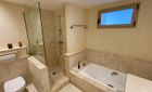 El luminoso dormitorio también tiene acceso a la terraza y cuenta con armarios empotrados a medida y un lujoso baño en suite con ducha y bañera.