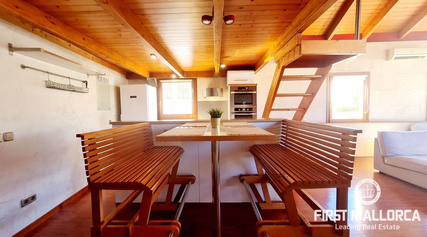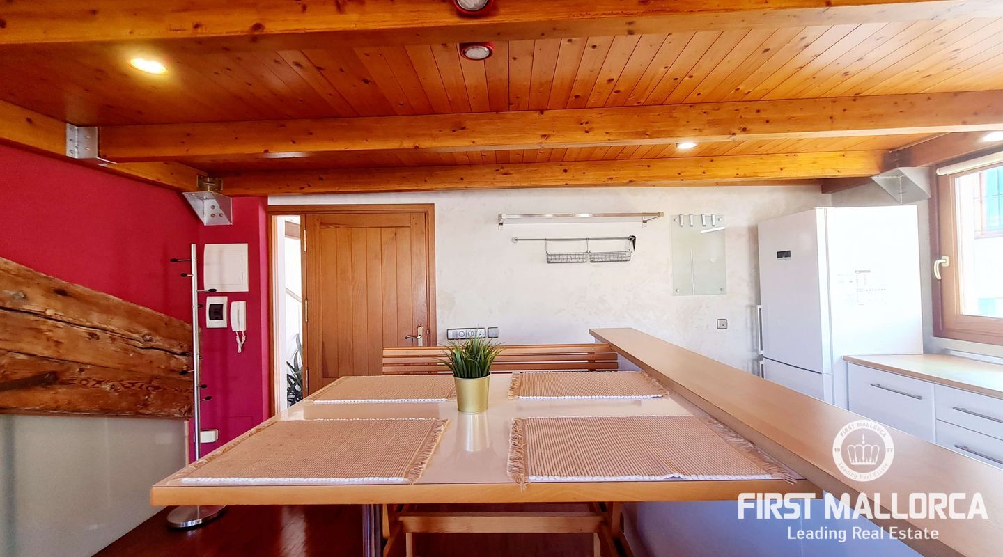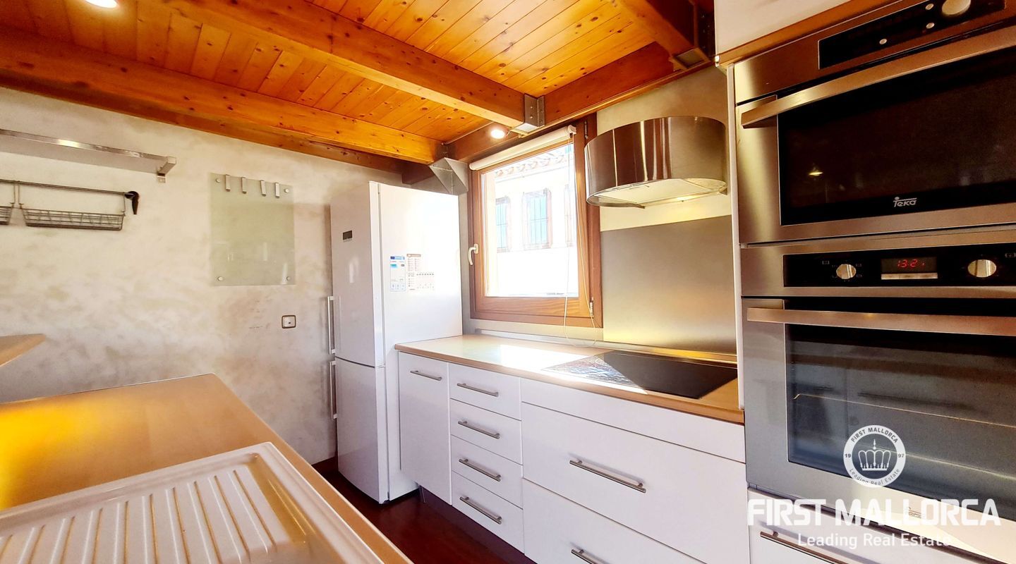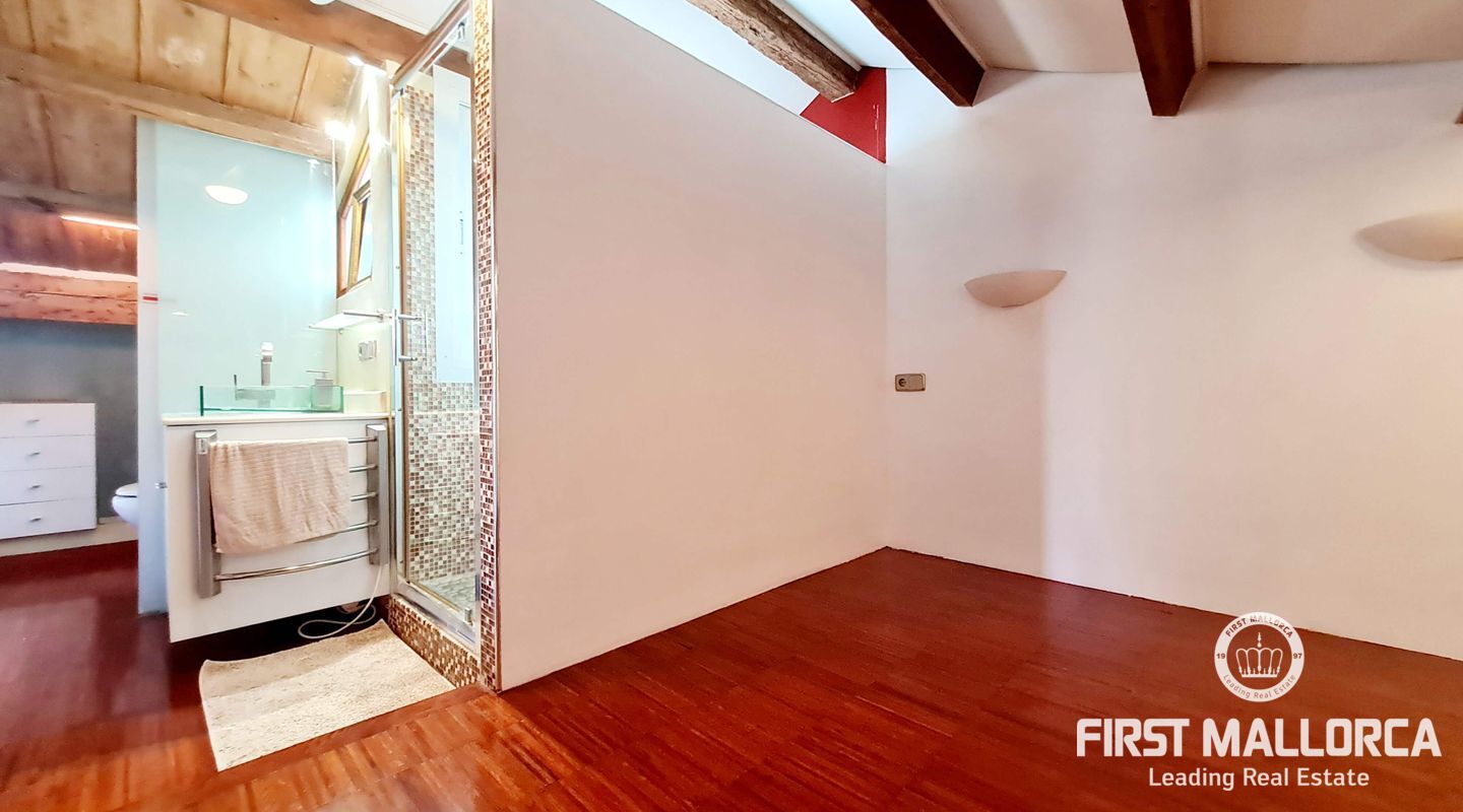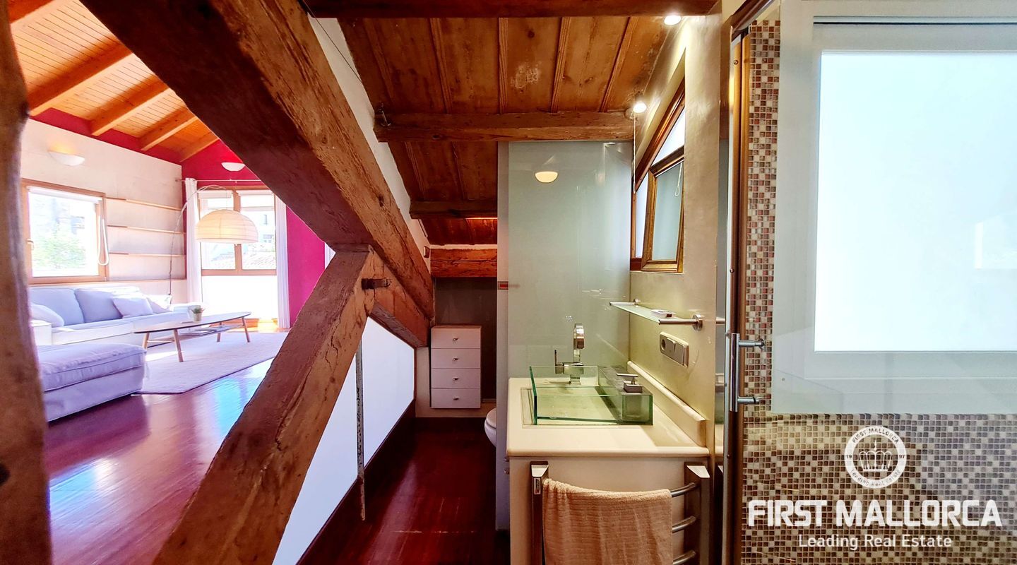 En el corazón del encantador casco antiguo de Palma, encontrará esta propiedad verdaderamente única. Las vigas de madera a la vista le confieren un carácter cálido y antiguo que crea un ambiente acogedor y acogedor. Los grandes ventanales del salón llenan la casa de luz natural durante todo el día.