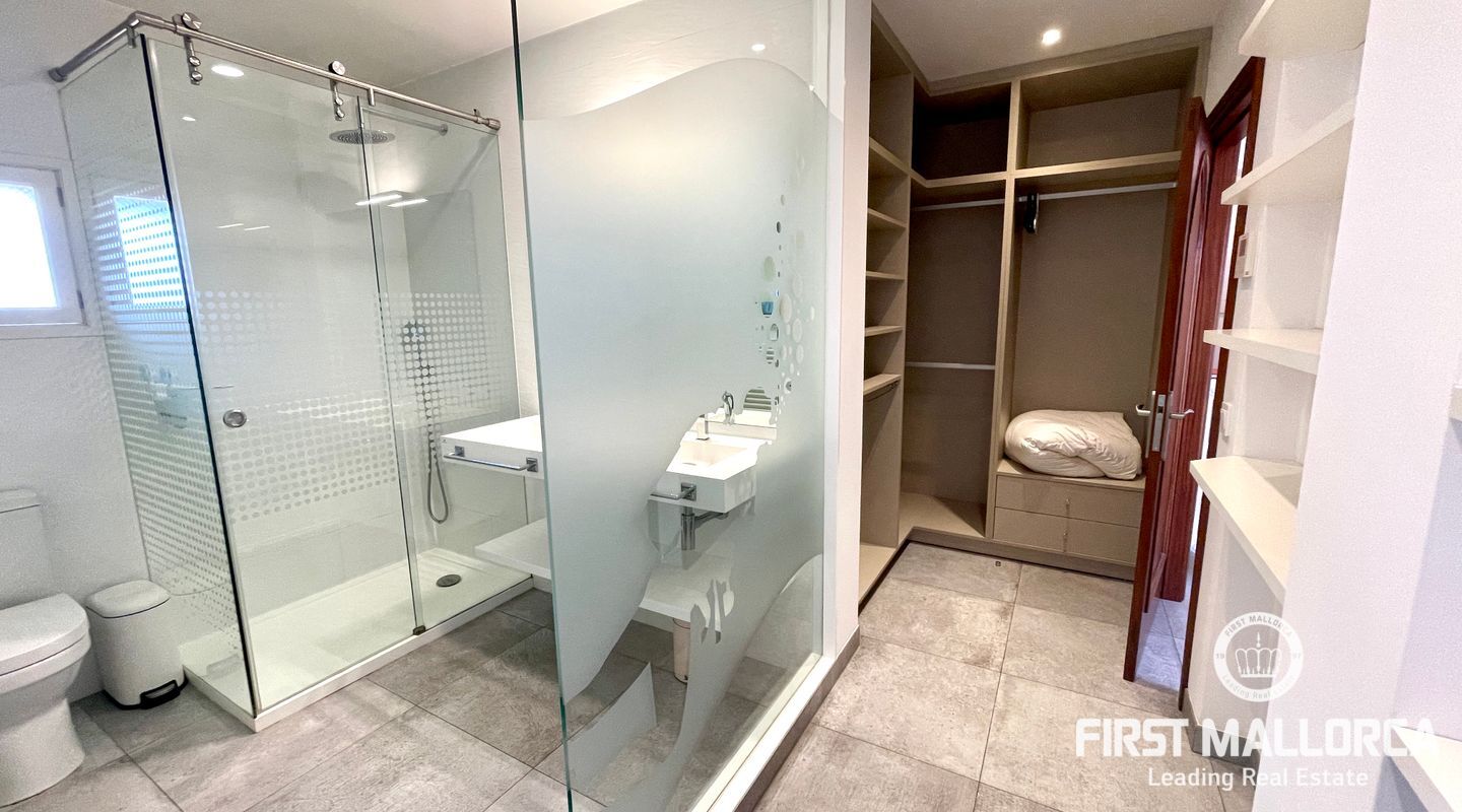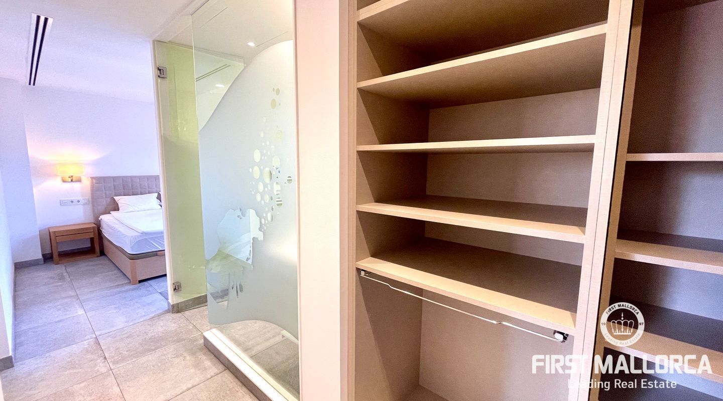 También hay una zona que puede utilizarse como rincón de oficina si es necesario. El dormitorio ofrece un gran armario abierto y un moderno baño con ducha.
