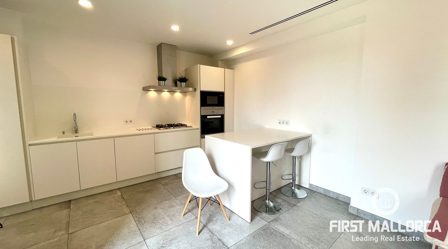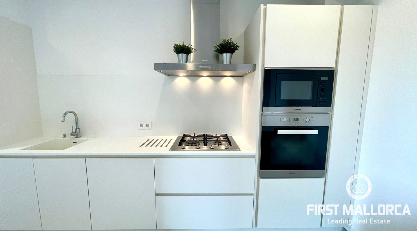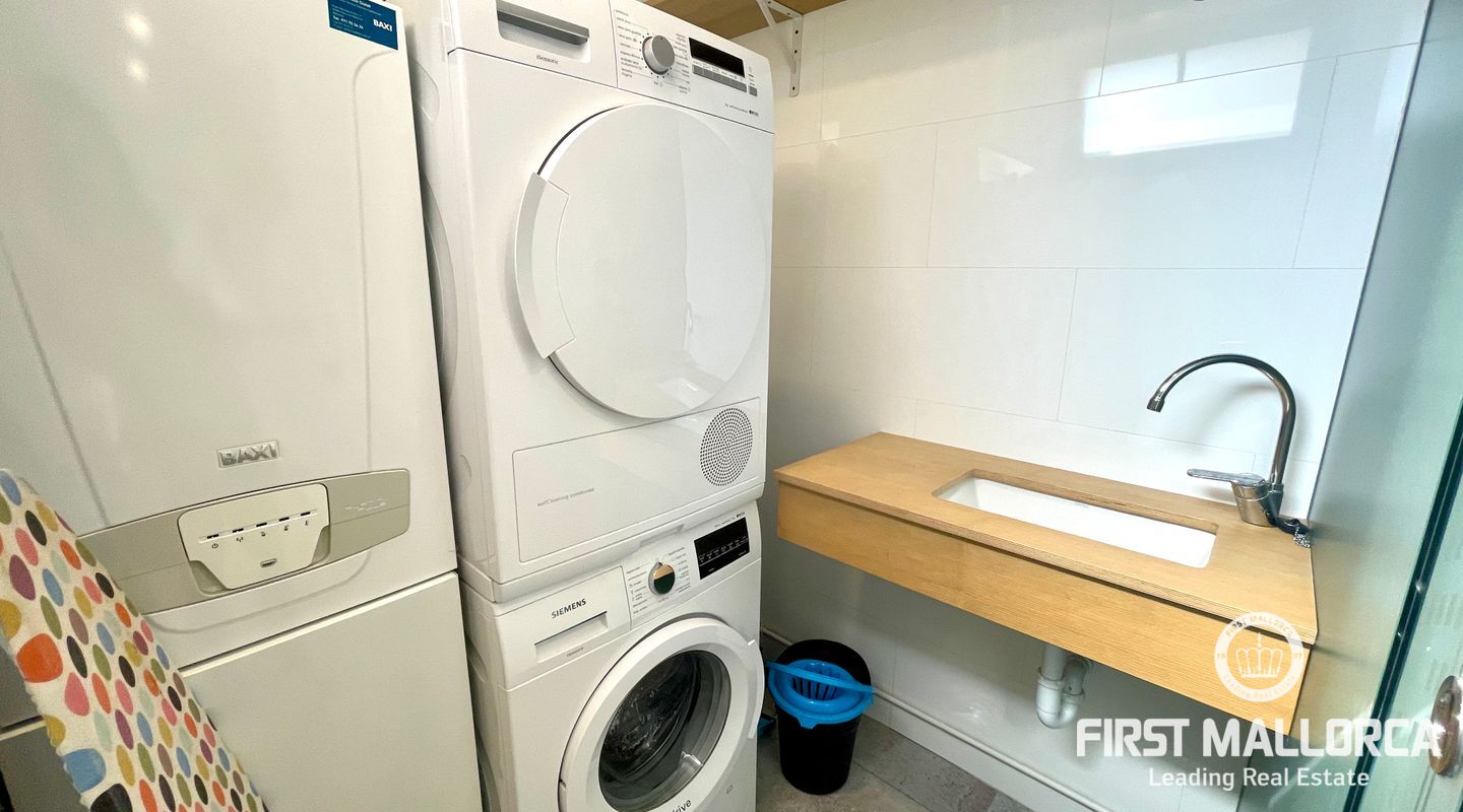 La moderna y espaciosa cocina equipada en blanco invita a preparar las comidas, y la isla de cocción también podría dieer como barra de desayuno. El lavadero está equipado con una lavadora y una secadora y se puede separar con una puerta de cristal opaco, creando un ambiente elegante.