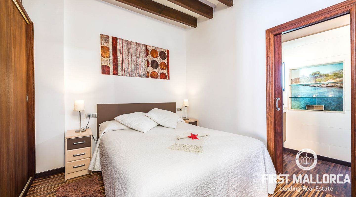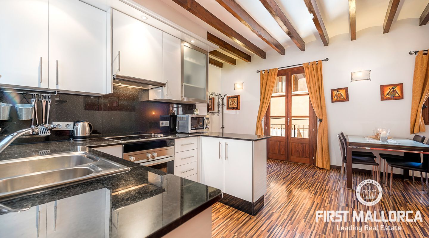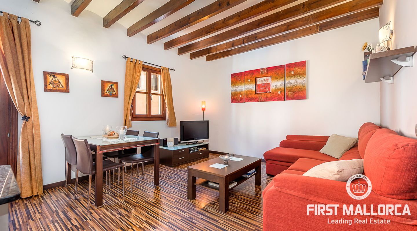 Tiene techos altos y vigas vistas características. Este bonito apartamento está totalmente reformado y amueblado. Dispone de un amplio dormitorio y baño en suite. Tiene una orientación sur desde la sala de estar, y se puede ver el mar desde el balcón.