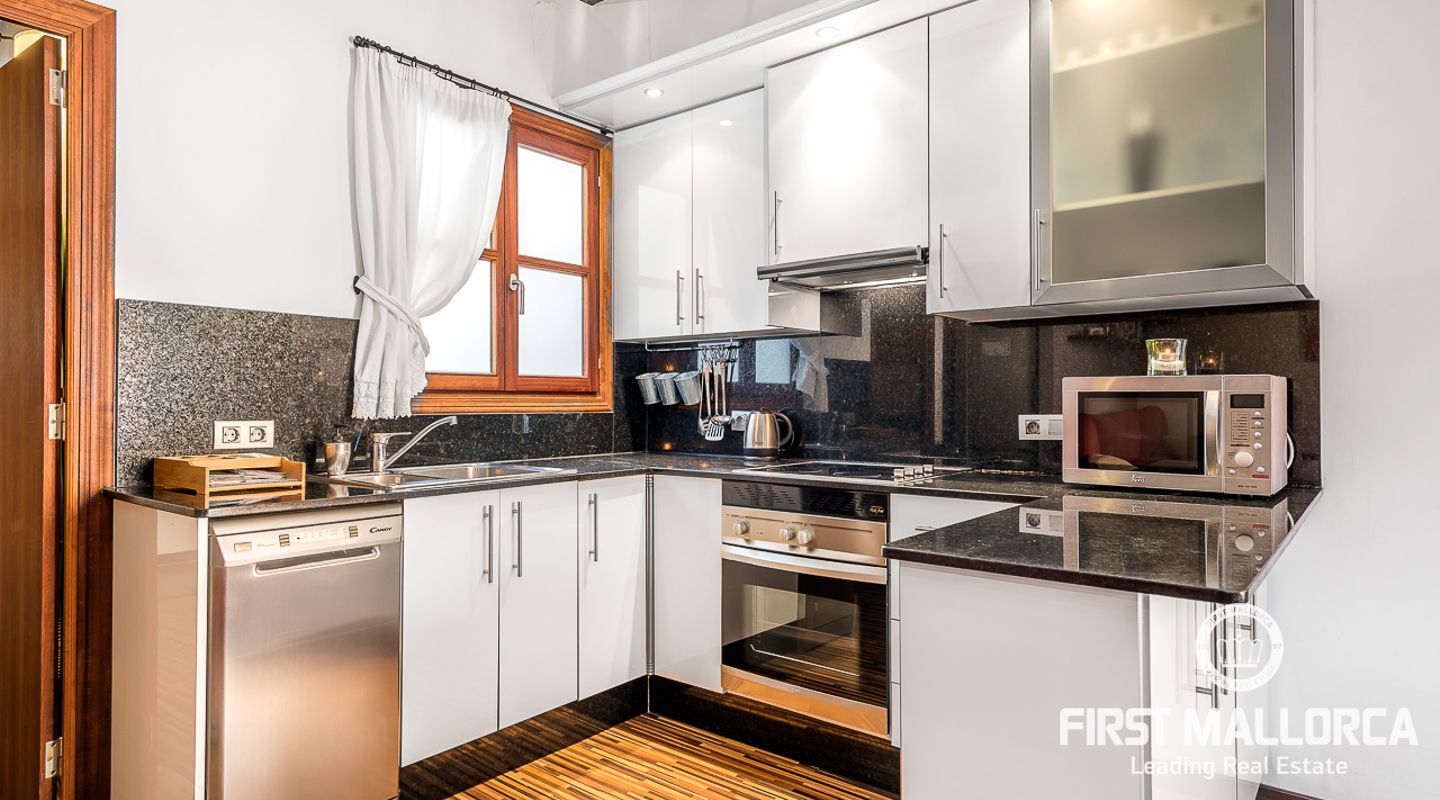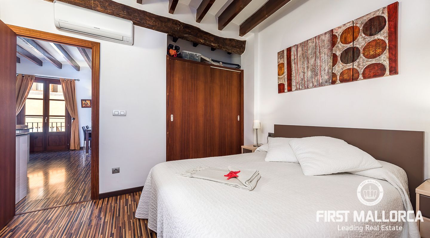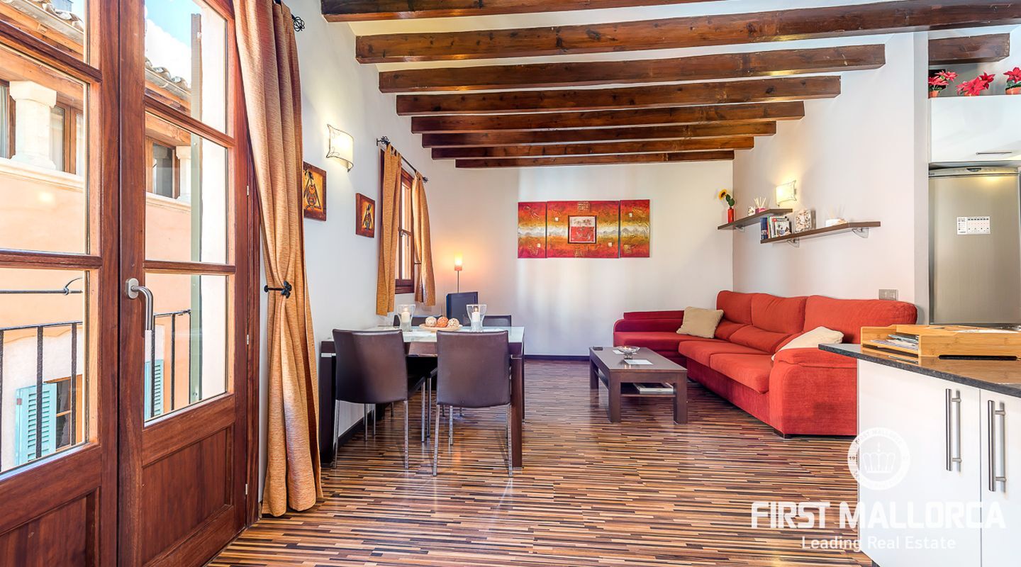Tiene techos altos y vigas vistas características. Este bonito apartamento está totalmente reformado y amueblado. Dispone de un amplio dormitorio y baño en suite. Tiene una orientación sur desde la sala de estar, y se puede ver el mar desde el balcón.