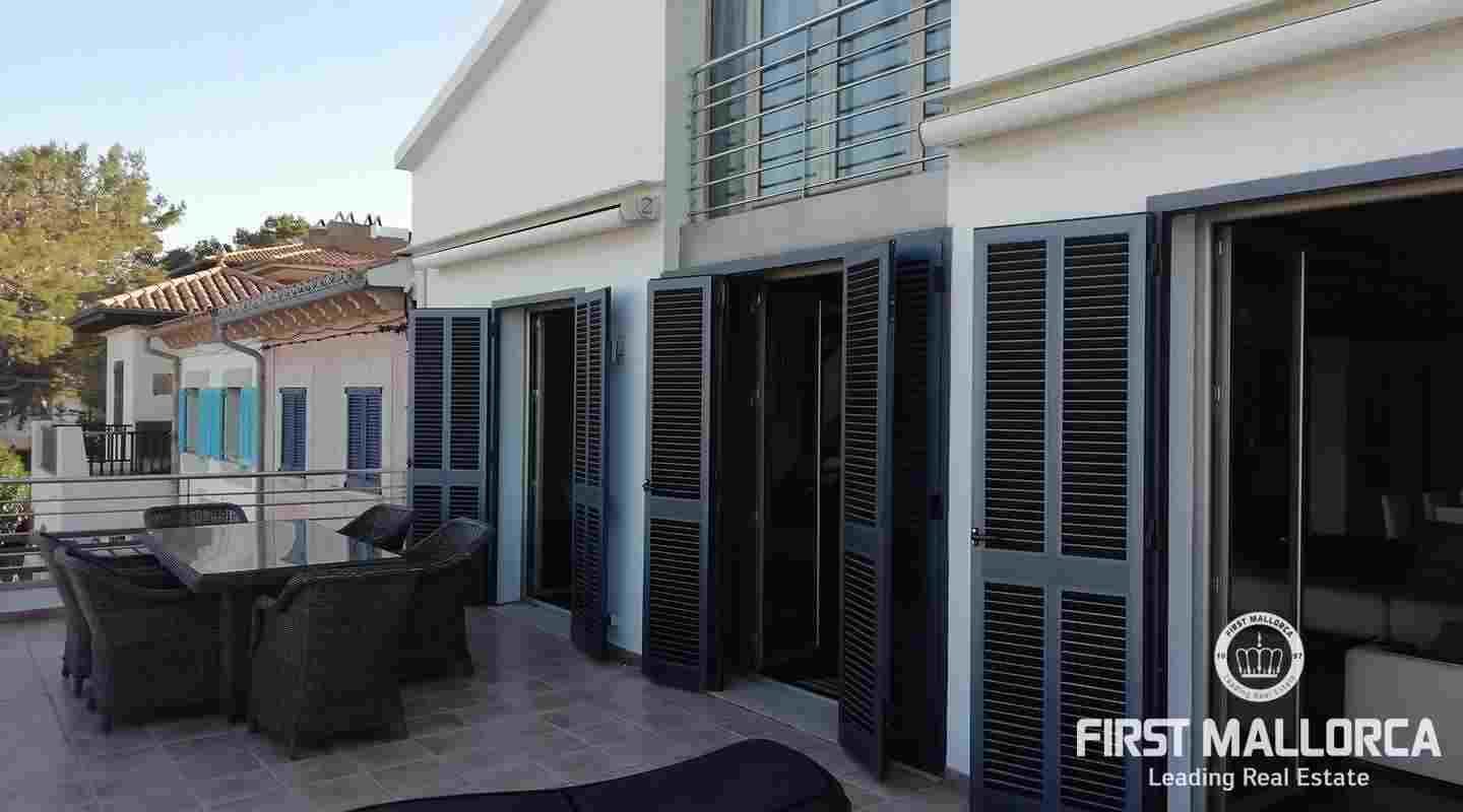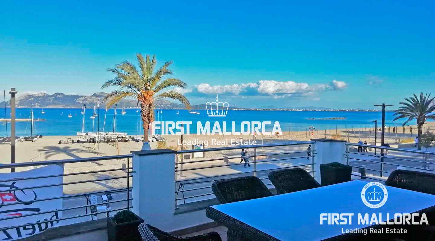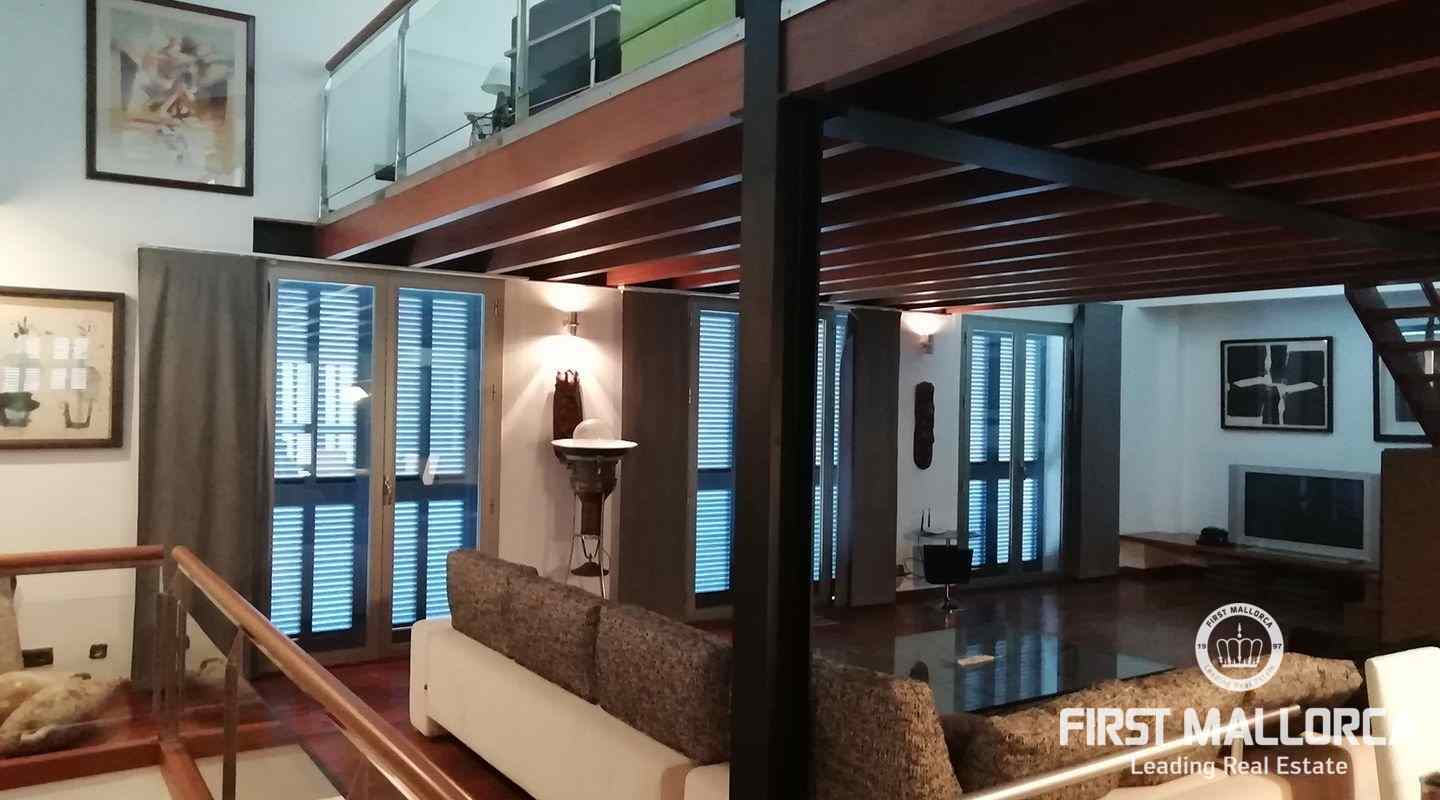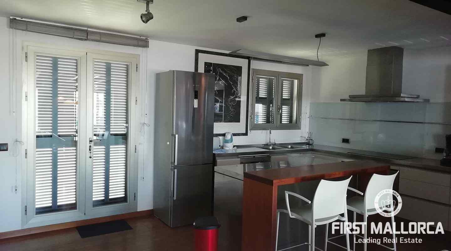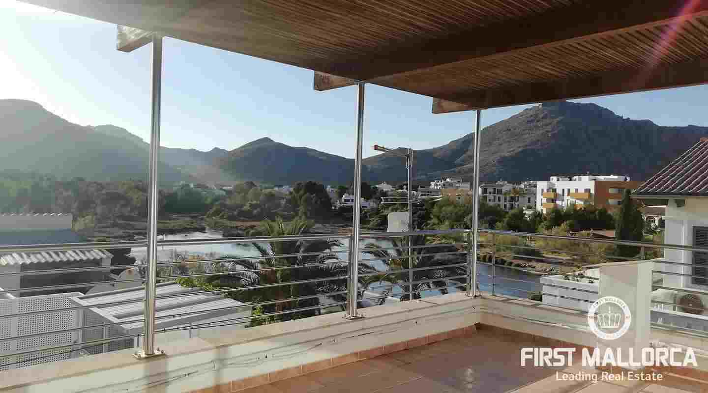 Este apartamento está ubicado en el primer piso de un restaurante, que se encuentra en el paseo marítimo del puerto de Pollensa. En unos pocos pasos estás en el puerto y la playa está justo frente a ti. Al entrar, una escalera lo lleva a un área de cocina espaciosa de planta abierta. También uno de los dormitorios y baños se encuentra en este nivel. El apartamento tiene 2 terrazas grandes, desde una de ellas se puede contemplar las hermosas montañas de Tramuntana y desde la terraza principal se tiene una vista espectacular del mar y de toda la bahía hasta Alcudia. En el segundo piso hay un gran espacio abierto con una segunda cama doble y una terraza. Las ventanas grandes que llegan hasta el piso brindan mucha luz y el piso de madera, así como una gran cantidad de arte, crean un ambiente cálido.