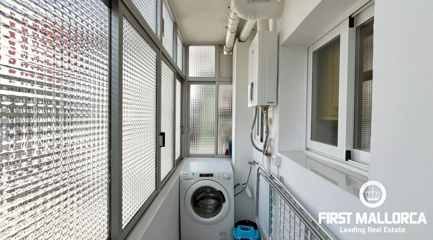 Cuenta con un acogedor salón, una cocina abierta y una terraza cerrada con zona de lavandería.