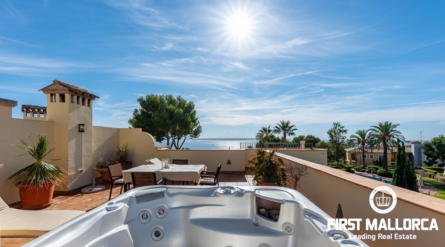 Impecable vista al mar ático situado en una exclusiva urbanización de alta calidad Sa Vinya en Bendinat. La propiedad de lujo que disfruta de una terraza con vistas panorámicas al mar. El apartamento tiene una superficie construida de 116 m2 incluyendo 20 m2 de terrazas cubiertas, además de un 50 m2 de terrazas. Otras características incluyen 3 piscinas comunitarias, un jacuzzi privado en la azotea, aire acondicionado frío / calor, suelos de mármol, armarios empotrados, servicio de seguridad las 24 horas y 2 plazas de aparcamiento subterráneo. Amueblado.