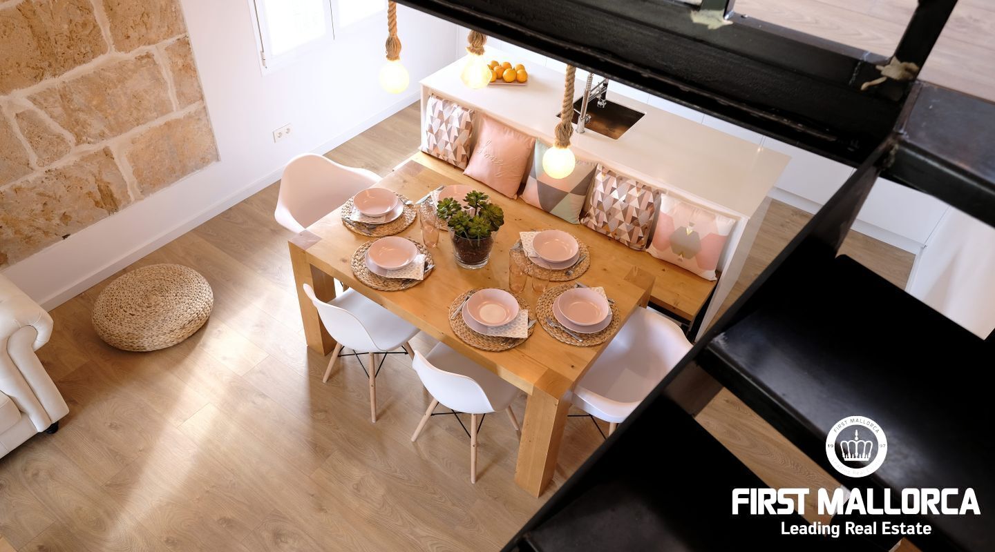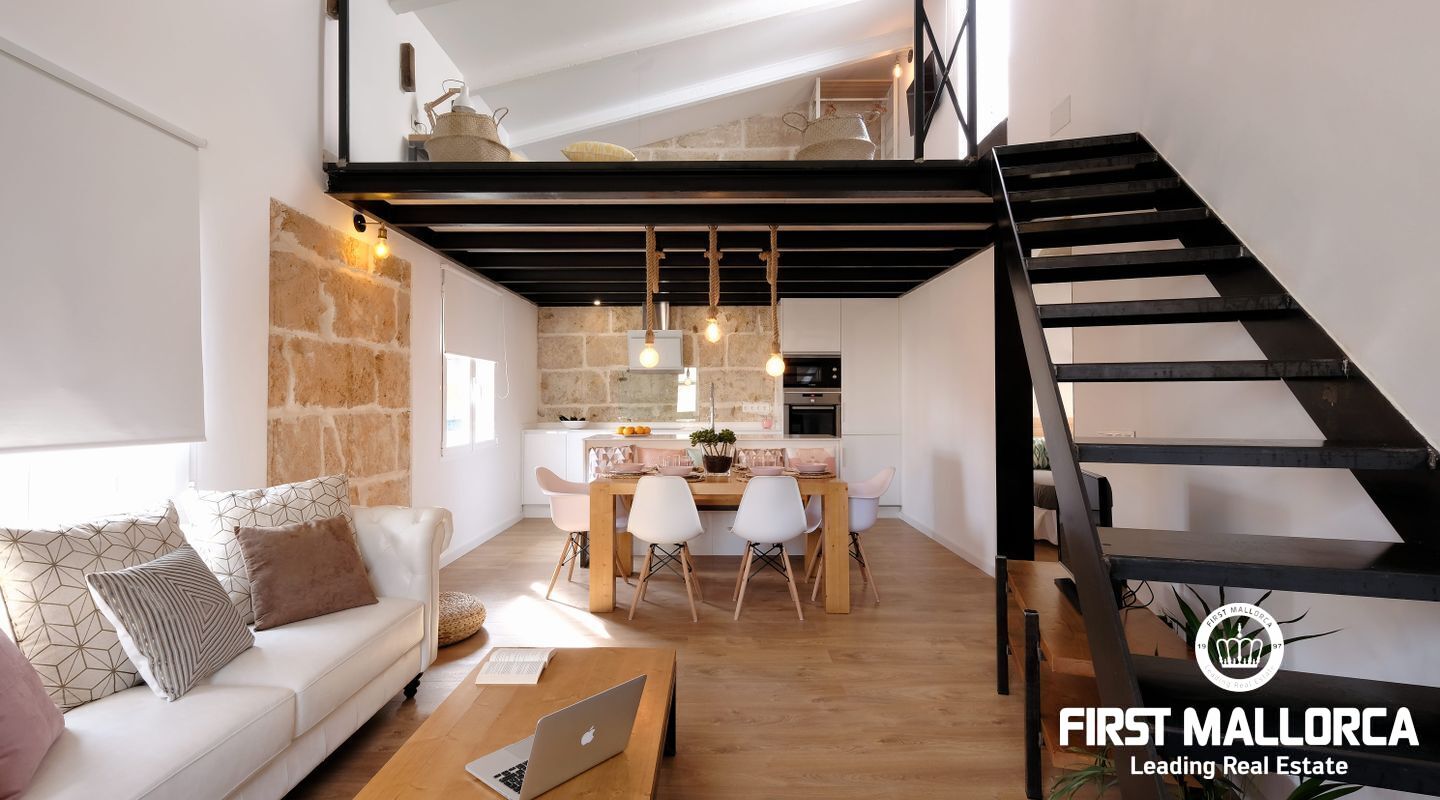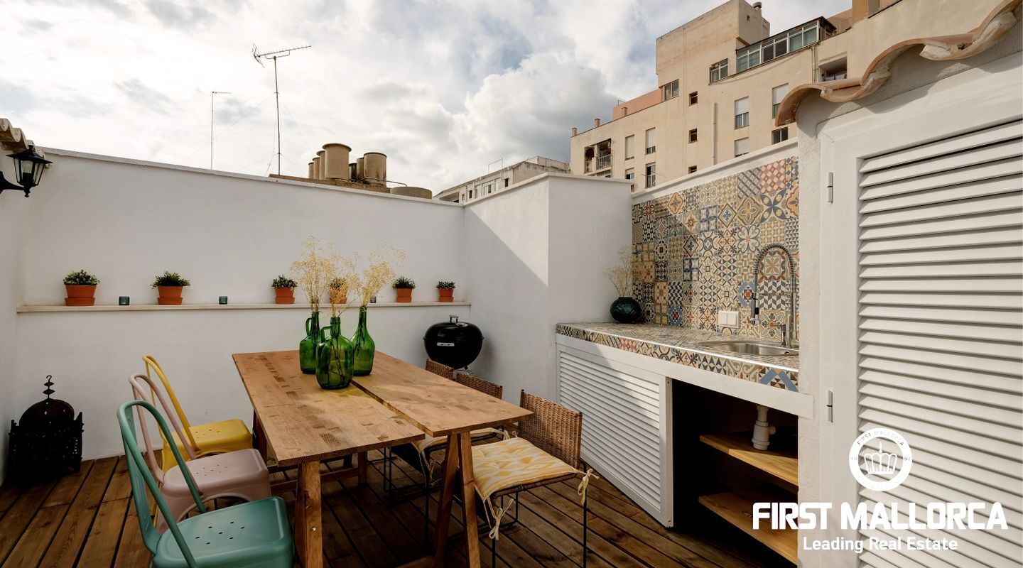 Ubicado en pleno centro de Palma, este ático combina a la perfección el encanto de su arquitectura original con el diseño contemporáneo. Los techos altos, las bovedillas de hormigón vistas en el pasillo y dos de las habitaciones, así como los muros de marés expuestos en puntos estratégicos, aportan una personalidad única y un carácter que enamora. La vivienda es muy luminosa gracias a su orientación esquinera, que permite la entrada abundante de luz natural.