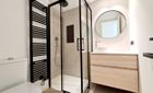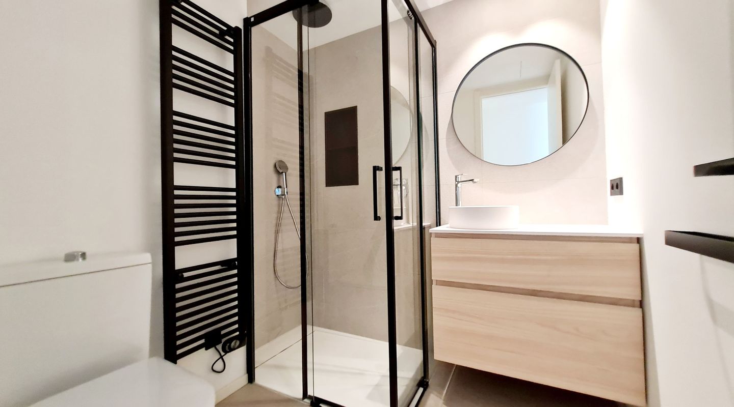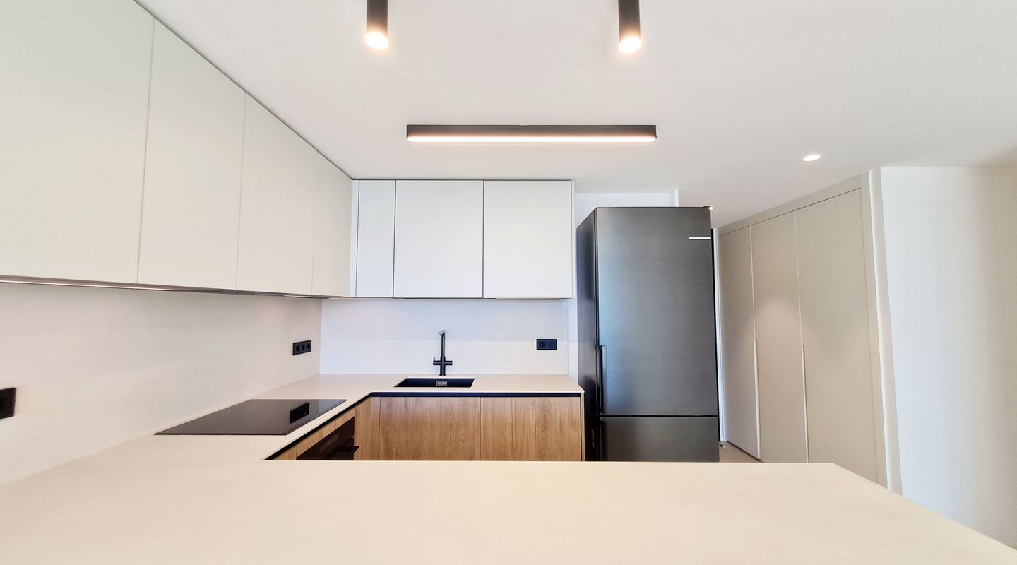 El ático cuenta con una amplia sala de estar-comedor con cocina integrada, junto con dos cómodas habitaciones, cada una con su propio baño. Se aprecian los acabados de alta calidad que adornan esta propiedad. Además, se puede disfrutar del lujo de su propia terraza de 14 m2 y azotea privada de 80 m2, perfecta para tomar el sol y disfrutar de vistas parciales al mar y crear su propio santuario al aire libre, completo con una barbacoa para reuniones inolvidables. Dos plazas de aparcamiento están incluidas para mayor comodidad.