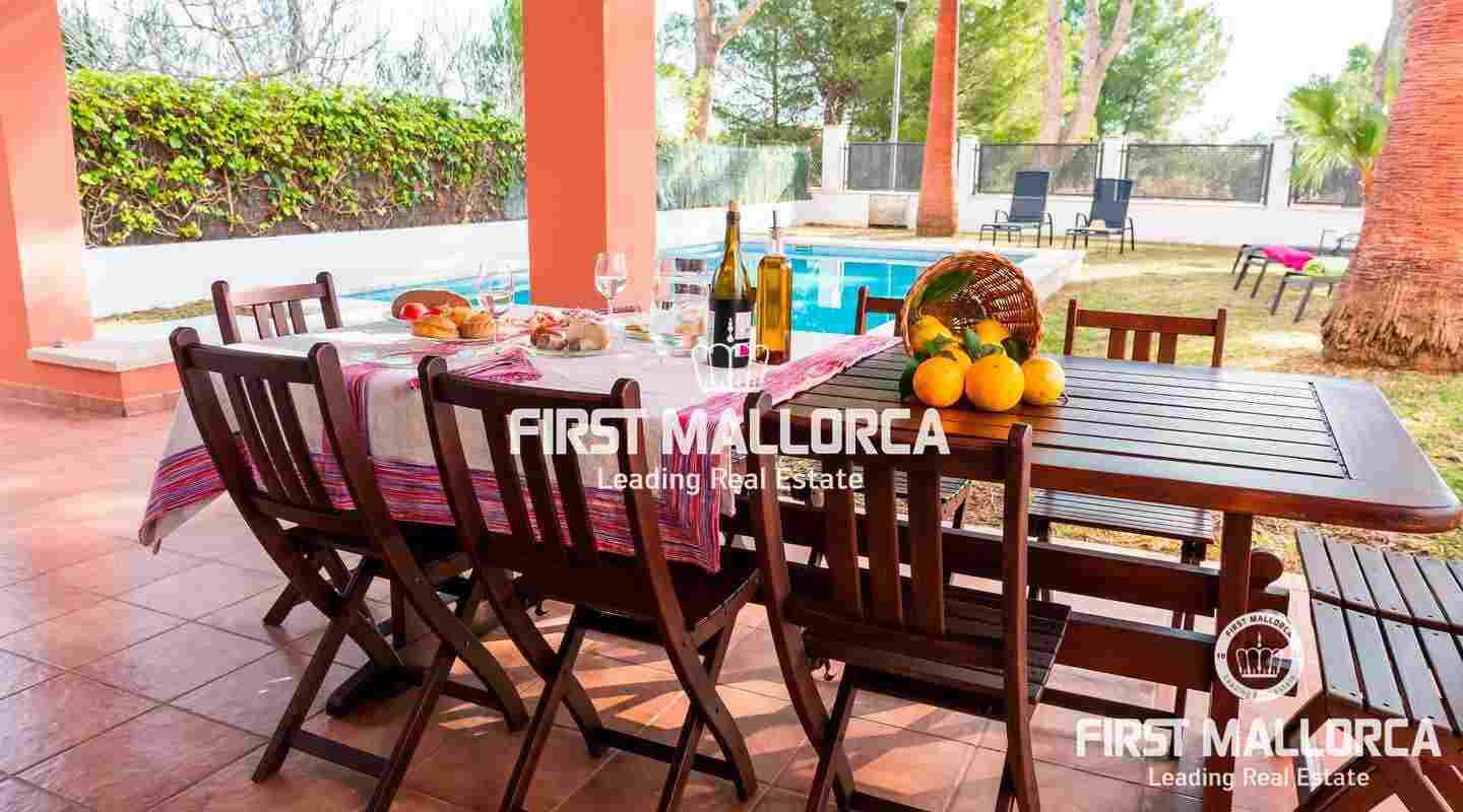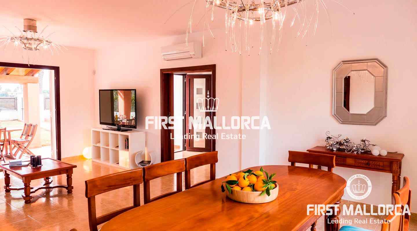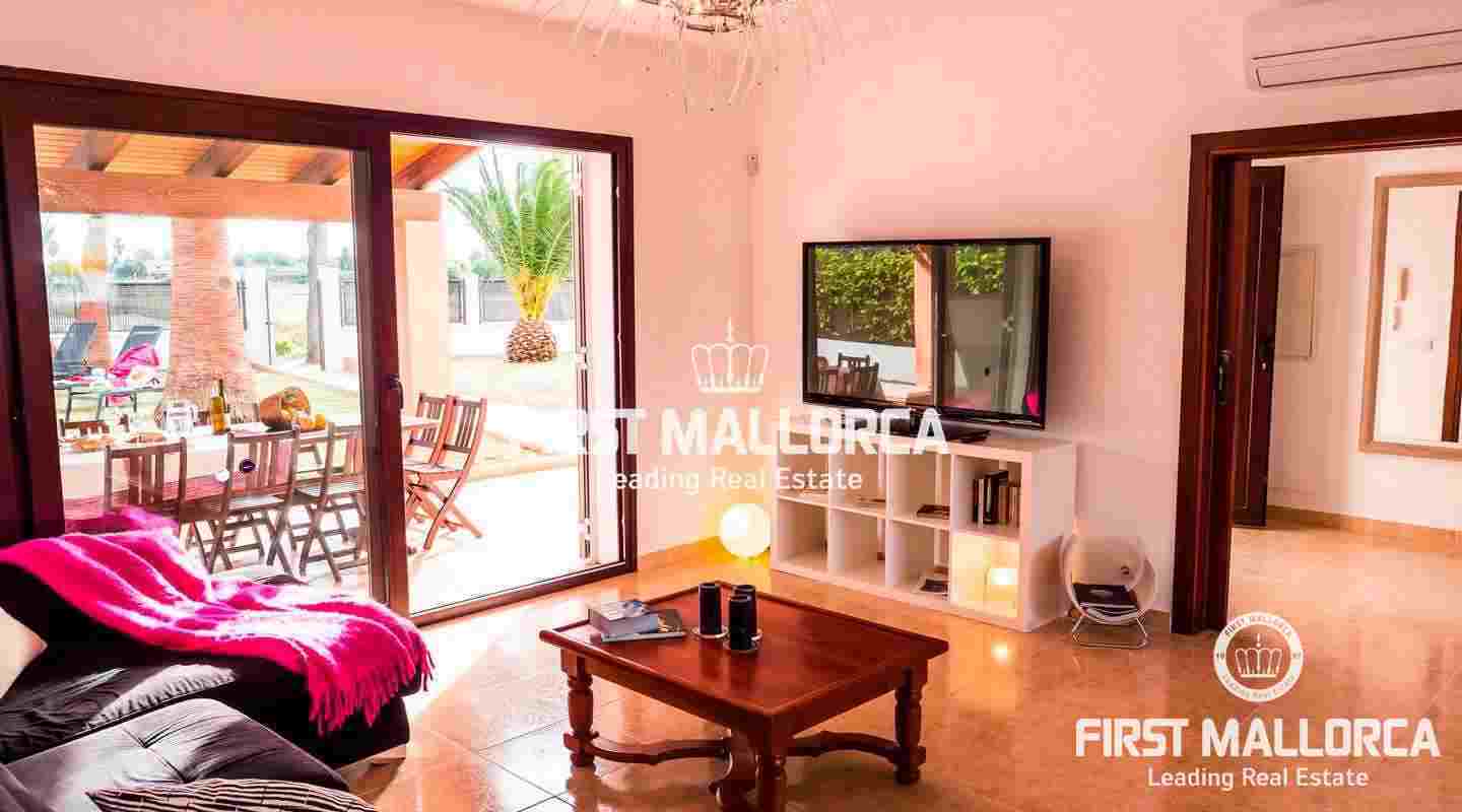 Bonito Chalet independiente con piscina y jardín, a 100 metros de la playa de Sa Marina y en una zona muy tranquila enfrente de la Albufera. Equipado con 4 dormitorios, 3 baños, amplio salón, cocina y gran terraza con zona de piscina.