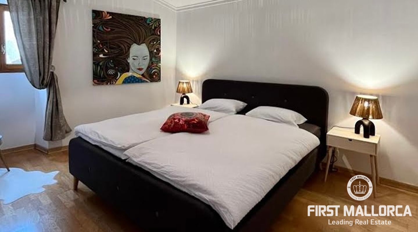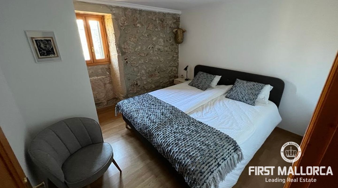 Esta casa de pueblo abierta y espaciosa, situada cerca de la Plaza Mayor y del ayuntamiento de Pollença, destaca por sus auténticas características originales, como su interior de piedra y sus vigas de madera. El local, que tiene una superficie total construida de 300m2, se distribuye entre 5 dormitorios y 2 baños. Complementado por una cocina equipada y un acogedor salón con chimenea, crea el escenario ideal para disfrutar de las noches con la familia y los amigos. Este hermoso adosado también ofrece 20m2 de terraza para pasar las encantadoras tardes mallorquinas, así como un garaje con espacio para dos coches. Proporcionando una oportunidad deseable para vivir en el corazón de Pollença, donde se puede disfrutar de pintorescas callejuelas y una gran selección de restaurantes y cafés. Además de estar rodeado de historia y cultura, esta perfecta ubicación también garantiza el acceso a todas las comodidades y servicios esenciales. La casa se alquila sin muebles, pero hay algunos muebles que se pueden comprar a los antiguos inquilinos. No dude en contactar con nuestro equipo de FIRST MALLORCA para obtener más información y concertar una visita.