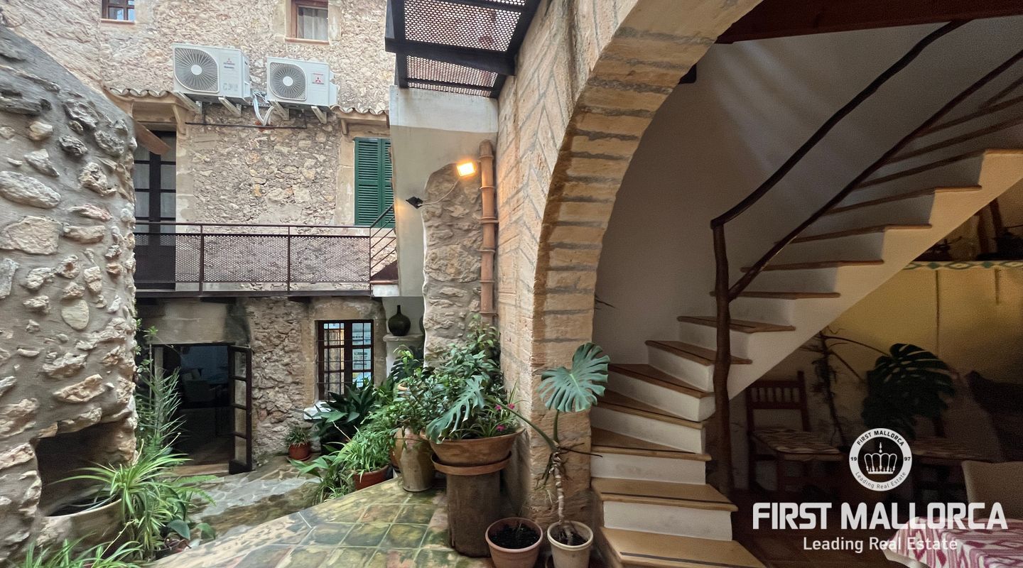 Situada en una de las calles más emblemáticas del casco antiguo de Pollença, justo junto a las escaleras del Calvari, esta encantadora casa mallorquina combina el encanto de la arquitectura tradicional con el confort de la vida moderna. Con una superficie de aproximadamente 220 m², la vivienda ofrece espacios amplios, luminosos y llenos de carácter. La casa se distribuye en tres plantas y dispone de tres dormitorios dobles, todos con aire acondicionado, dos baños completos, un acogedor salón con techos de vigas vistas y suelos de terracota, así como una cocina independiente totalmente equipada.