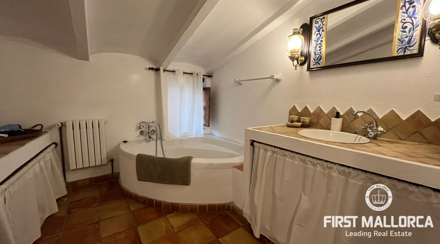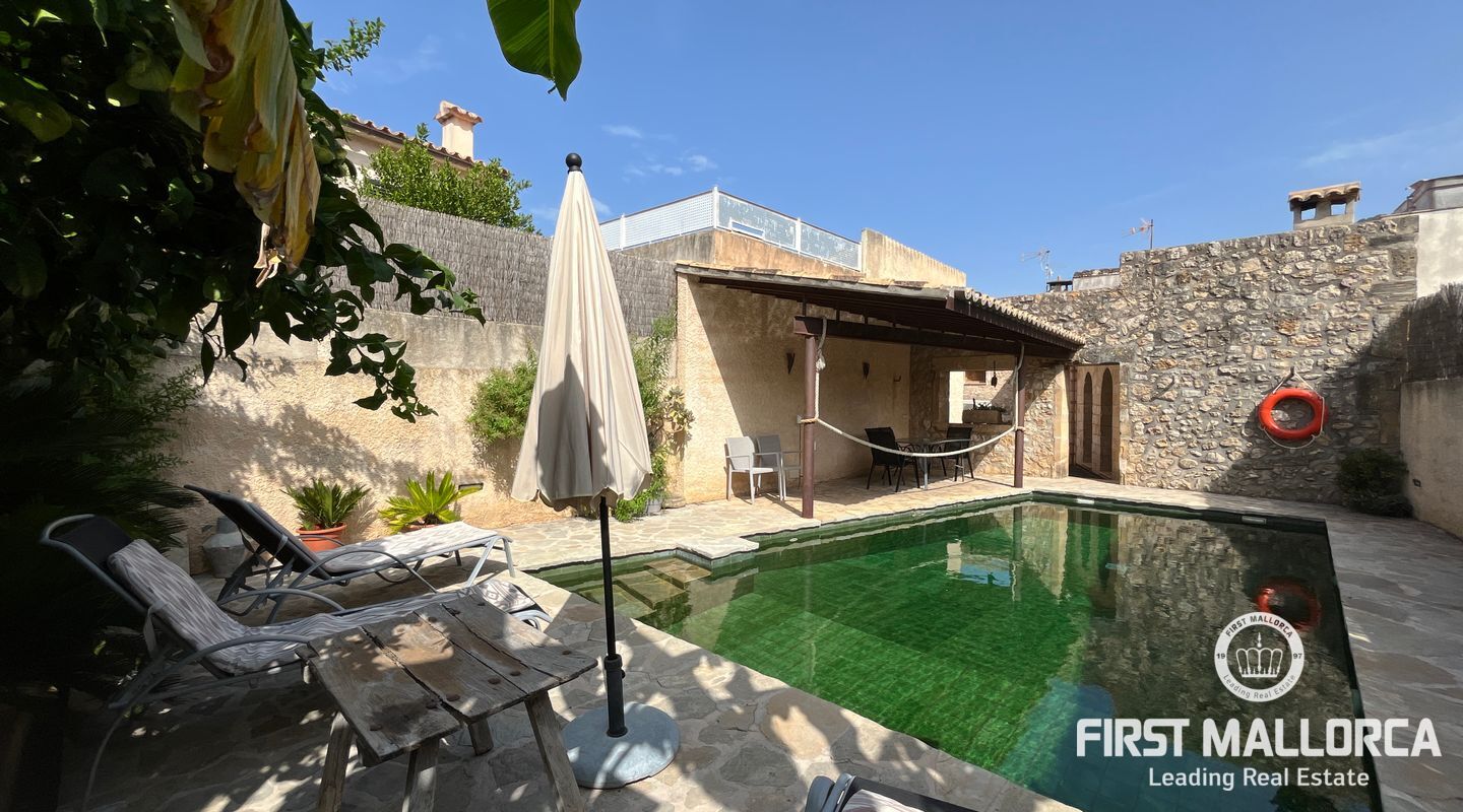 En el exterior, se puede disfrutar de una terraza privada con zona de comedor al aire libre, barbacoa y una piscina privada de 6x3,5 metros, perfecta para relajarse durante todo el año. El entorno es tranquilo y pintoresco, ideal para quienes valoran la autenticidad y la belleza de Pollença, a tan solo unos pasos de la plaza mayor, restaurantes, tiendas y todos los servicios necesarios.