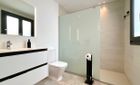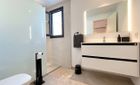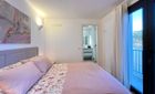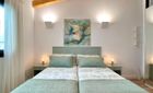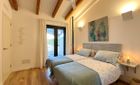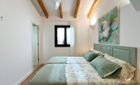 Desde el salón, otra escalera interior lleva a la zona de descanso, donde se encuentran tres dormitorios dobles, todos con baño completo en suite. Dos de ellos tienen acceso directo a la terraza superior cubierta y a la zona de la piscina. Cada dormitorio está decorado con un estilo propio y diferenciado: “Salmón”, “Azul” y “Verde”.