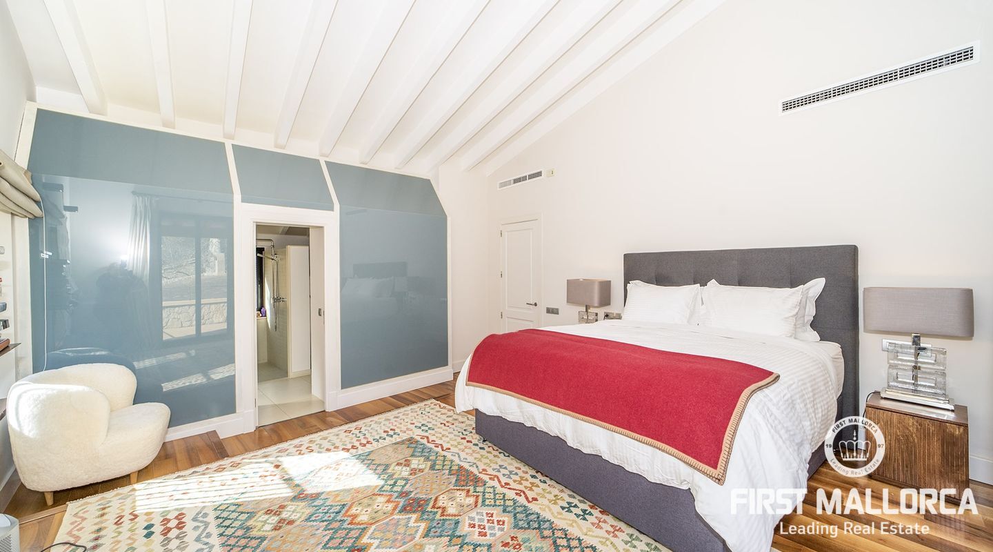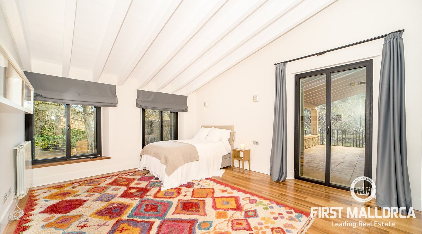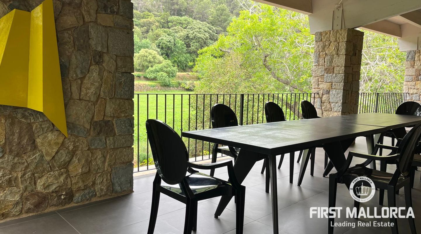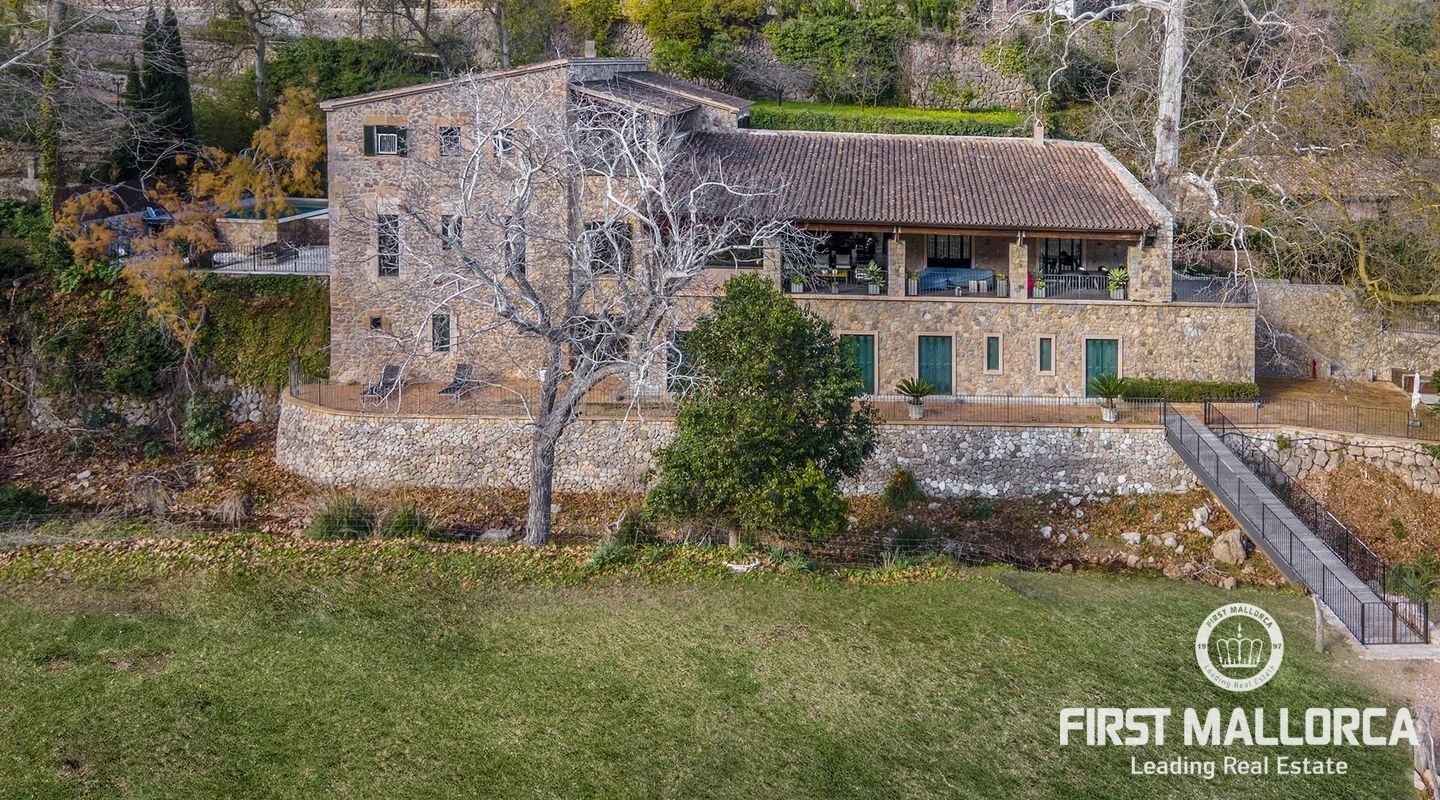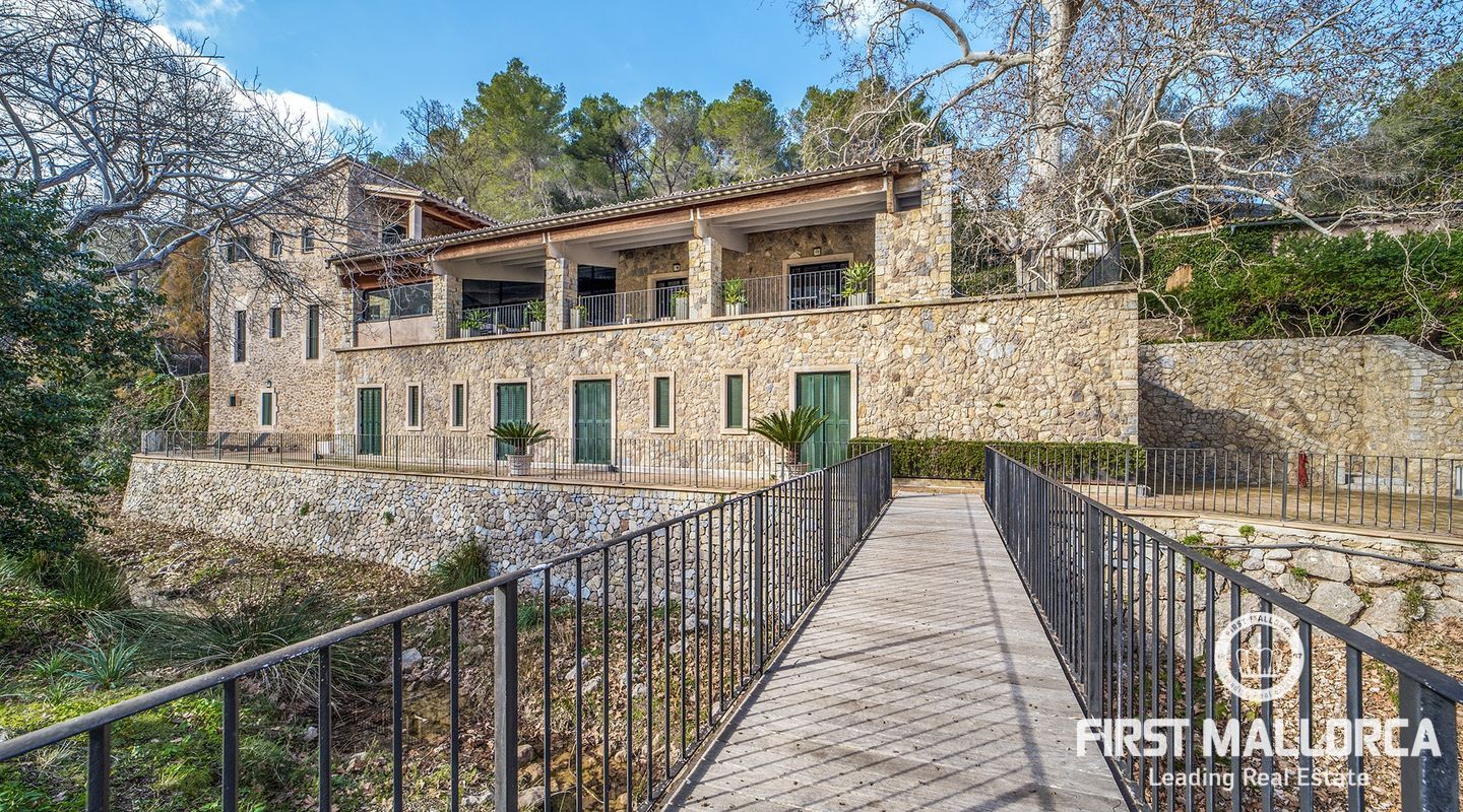 Ubicada en el corazón de la Sierra de Tramuntana, esta impresionante finca ofrece una combinación perfecta de elegancia rústica y confort contemporáneo. Rodeada de frondosos bosques, la propiedad principal cuenta con 600 m² de superficie habitable, complementada por una casa de invitados de 130 m² distribuida en dos plantas.