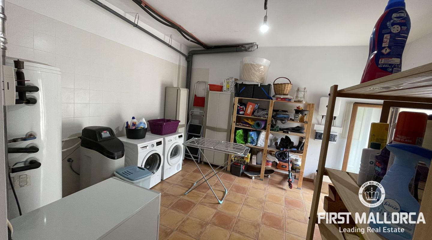 La planta baja ofrece un dormitorio y un baño completo con plato de ducha. En el cuarto de lavandería, equipado con lavadora y secadora, se encuentra el sistema de descalcificación de la casa, la caldera alimentada por paneles solares y el panel de control de los paneles solares que suministran electricidad a la propiedad.