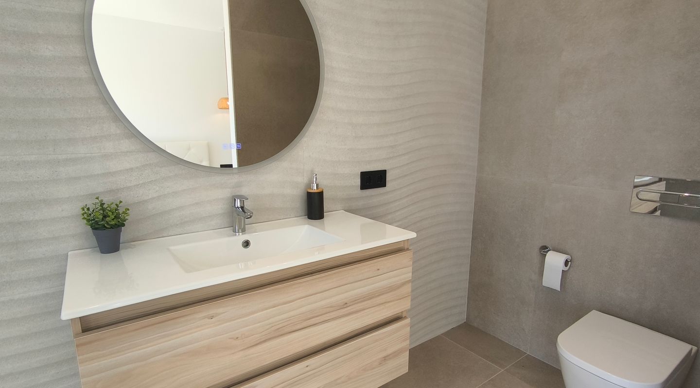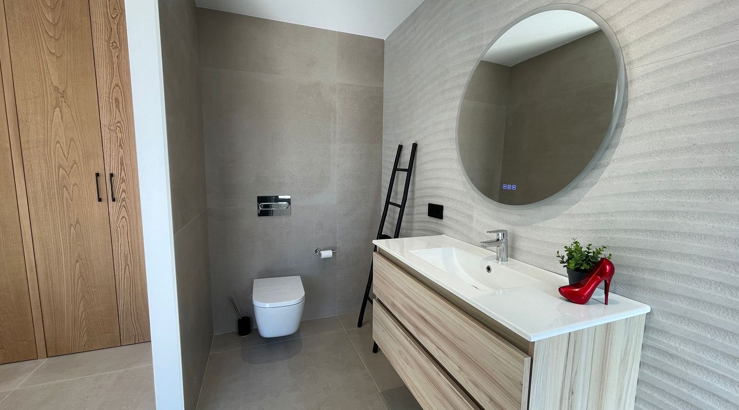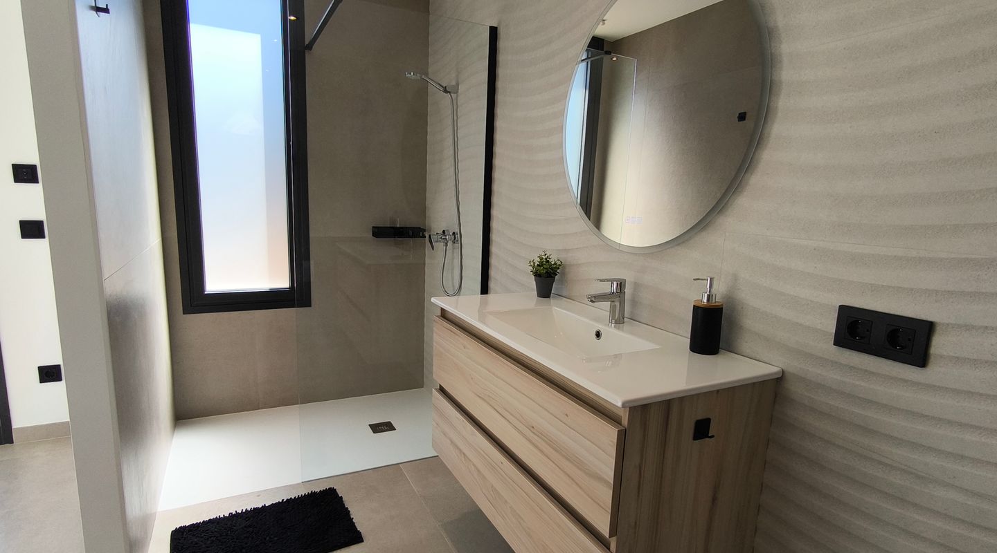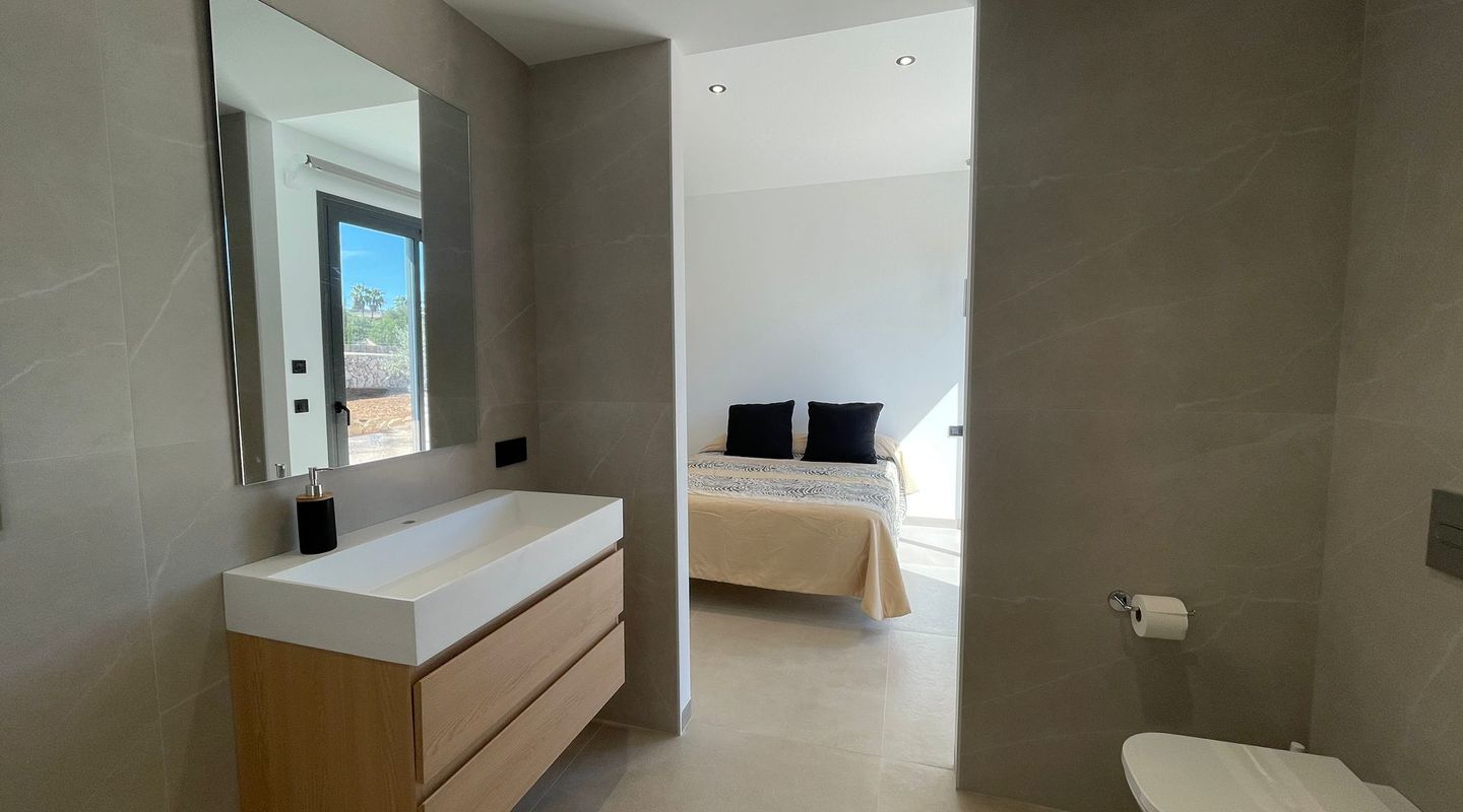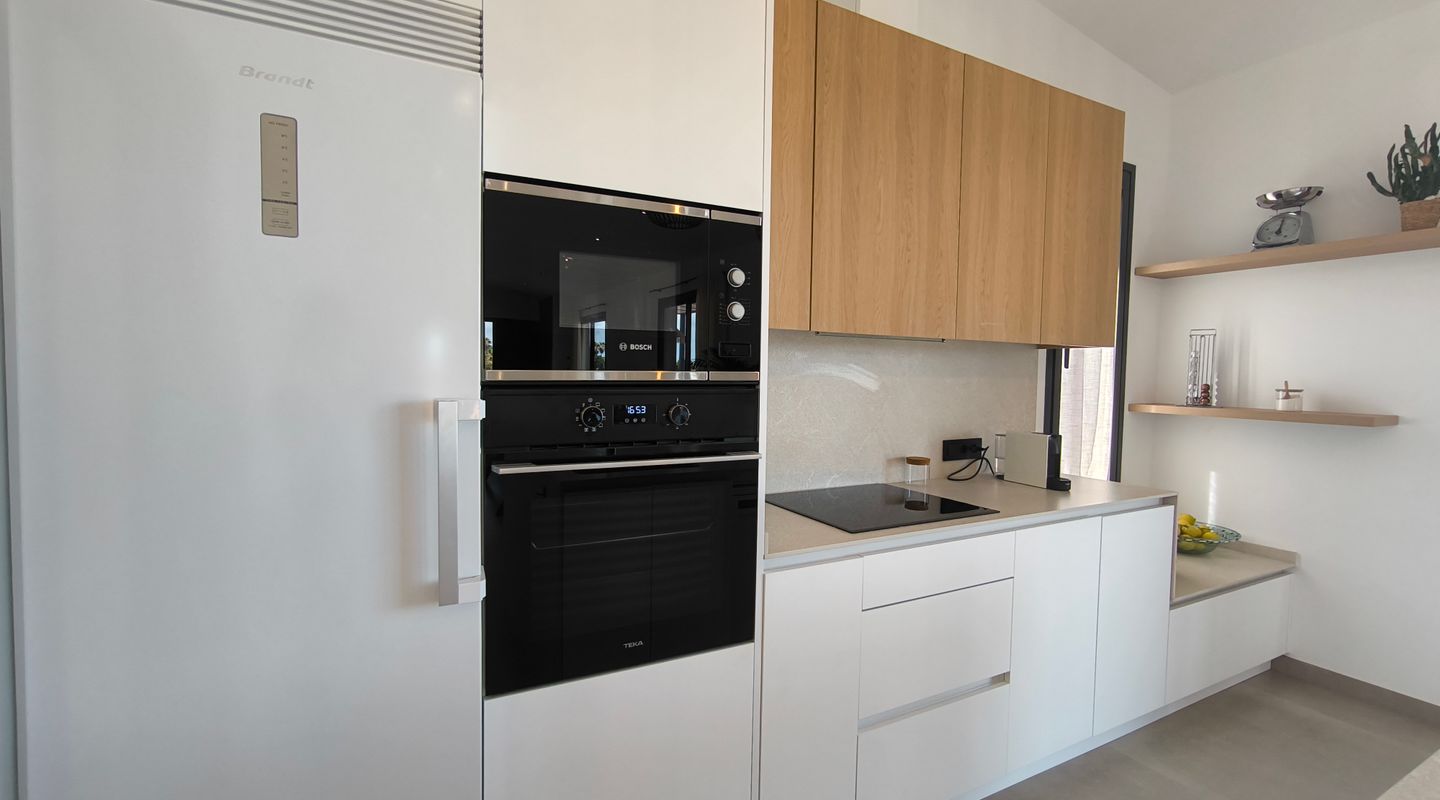 Al acceder a la vivienda, encontramos un espacio totalmente diáfano con grandes ventanales que enmarcan las bonitas vistas al jardín y llenan la casa de luz natural. Este ambiente se distribuye en una confortable sala de estar con televisión, un comedor espacioso que conecta con una moderna cocina con isla, totalmente equipada. La vivienda dispone de tres amplios dormitorios dobles, todos con baño en suite, además de un aseo. En el exterior, destacan una piscina privada con sistema de cloración salina y una terraza cubierta, ideal para relajarse y disfrutar en total privacidad.