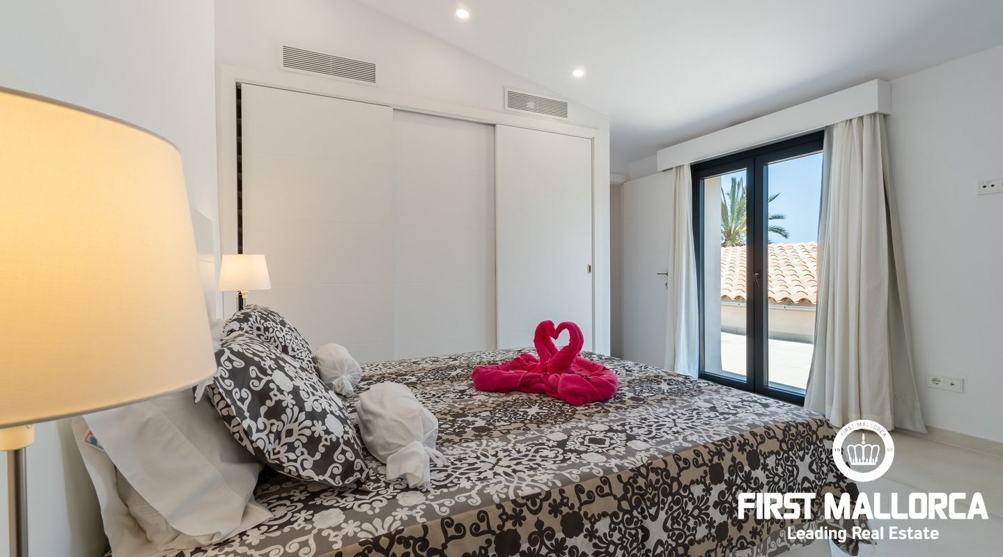 Situada dentro de un terreno de unos 14200 m2 con cuidados jardines y grandes palmeras, la casa fue renovada totalmente en el año 2022 y tiene 3 habitaciones, dos de ellas en la planta de abajo, y 3 baños, dos de ellos en suite, quedando la habitación principal como única estancia en el piso superior, con una gran terraza solárium con vistas panorámicas.