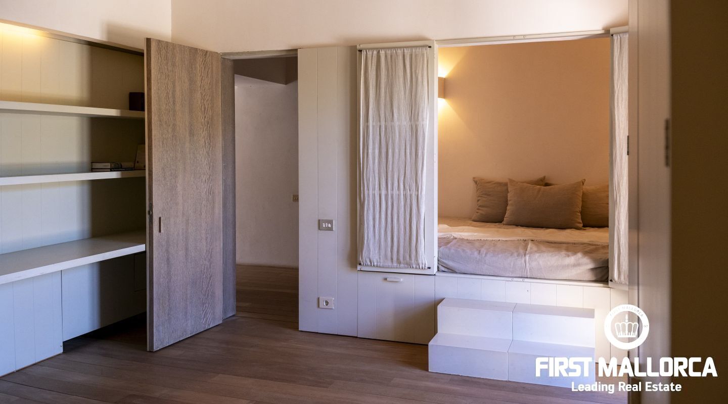 La propiedad consta de cinco edificios, la casa principal con una casa de huéspedes contigua, una casa de piscina con sauna, la oficina/gimnasio con su gran terraza con vistas a la piscina, una torre de molino de viento tradicional, y Casa María como otra casa de huéspedes independiente con barbacoa exterior. En total hay seis grandes dormitorios con aire acondicionado y seis cuartos de baño, todos con calefacción por suelo radiante. El interior ha sido modernizado en 2023 respetando la arquitectura mediterránea, incluyendo nuevos electrodomésticos de alta gama y WiFi de alta velocidad en todo.