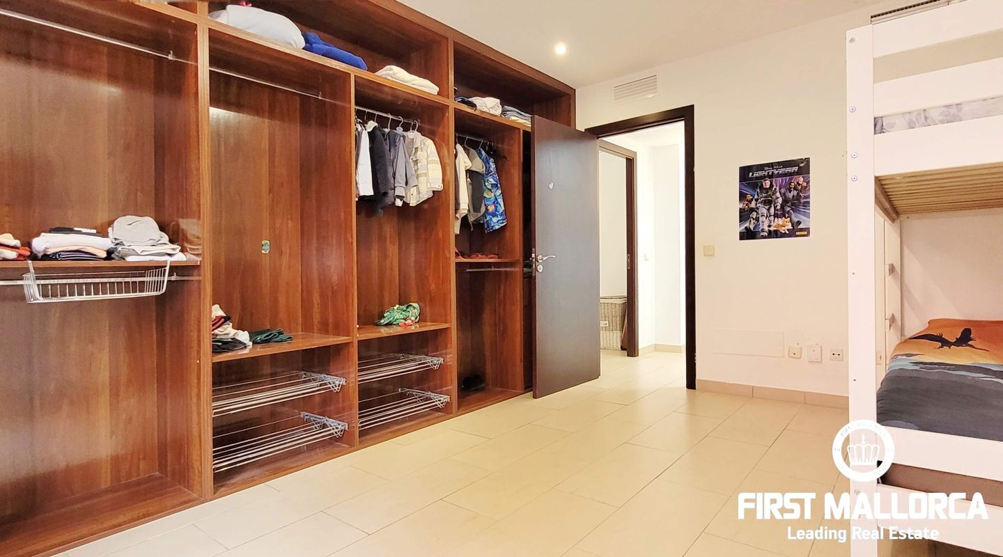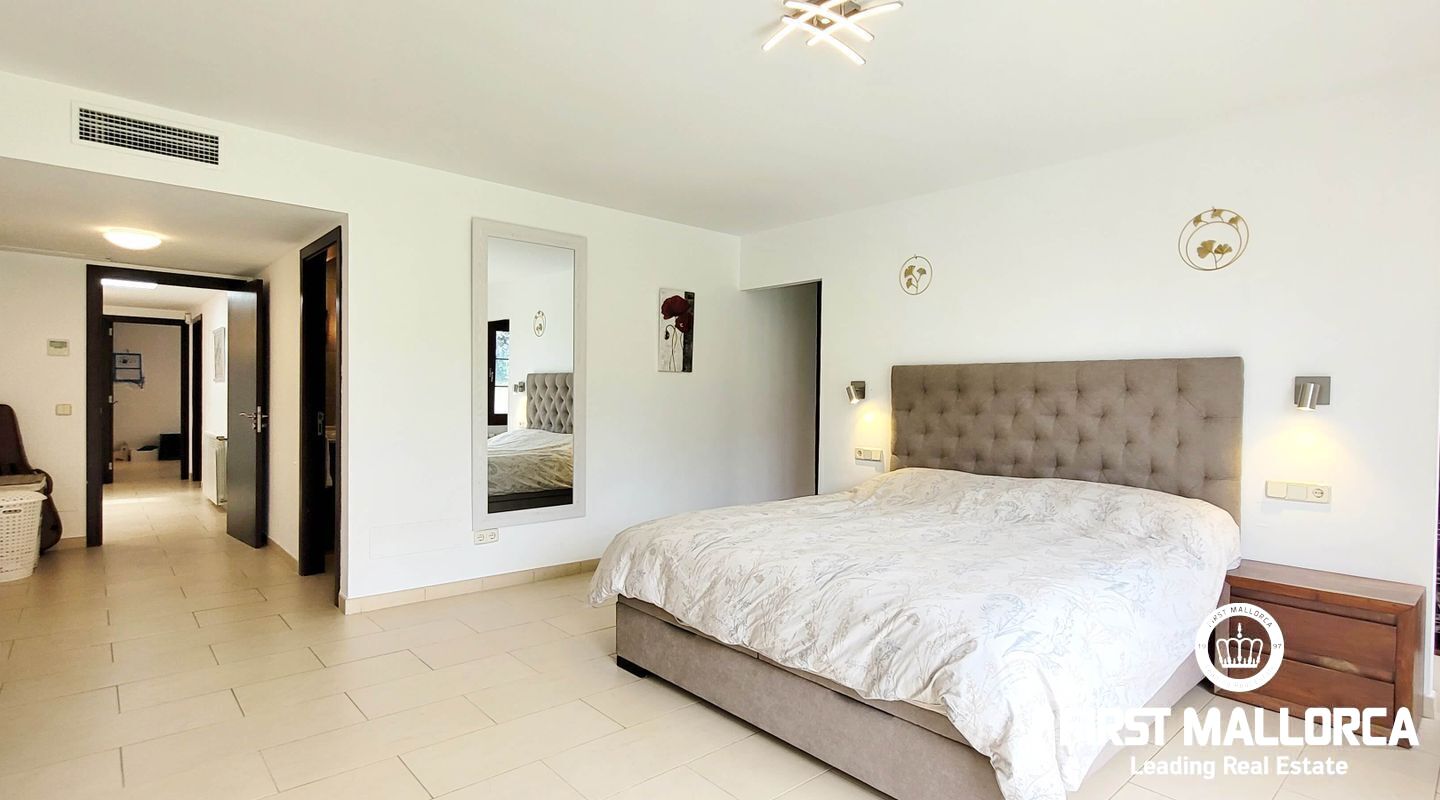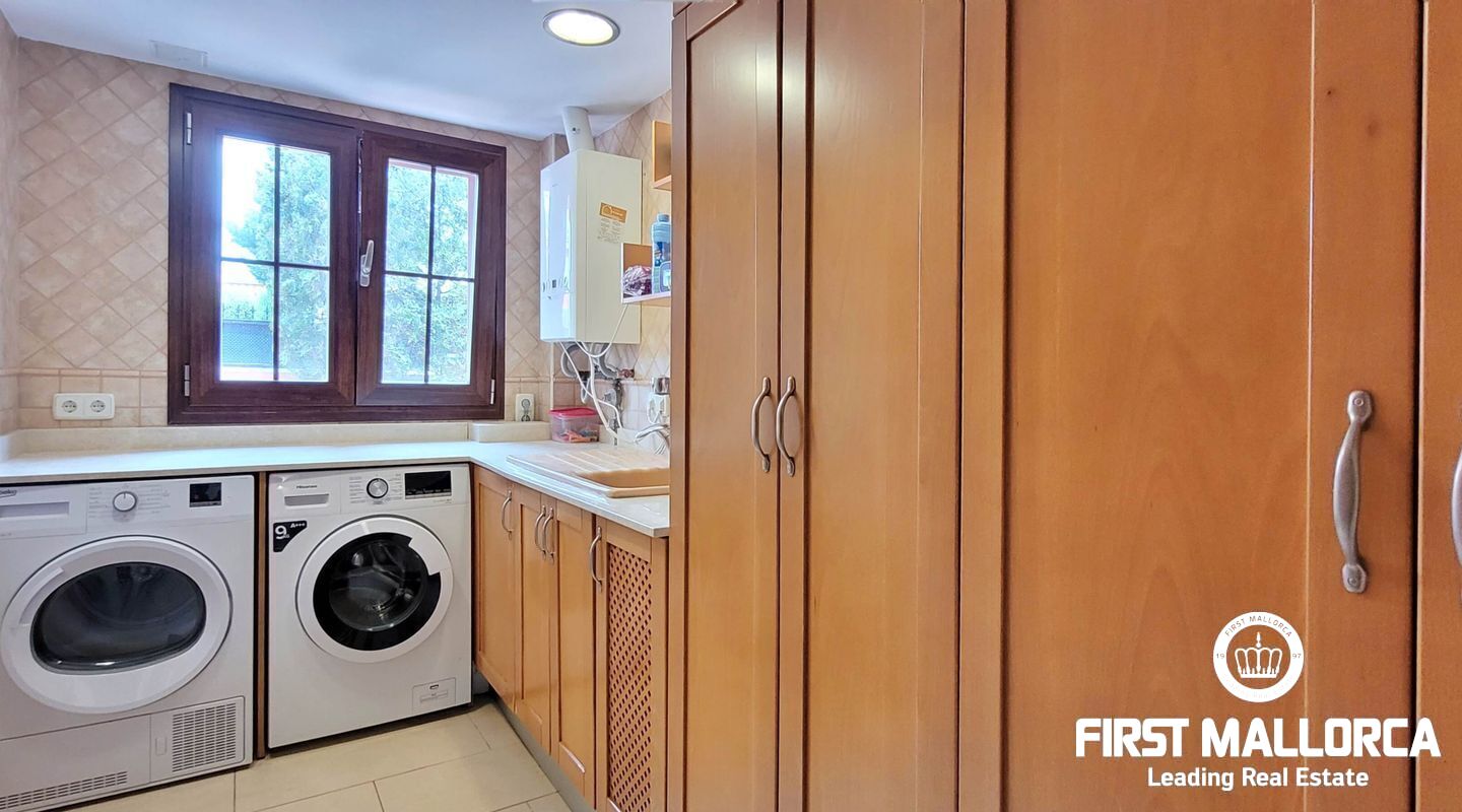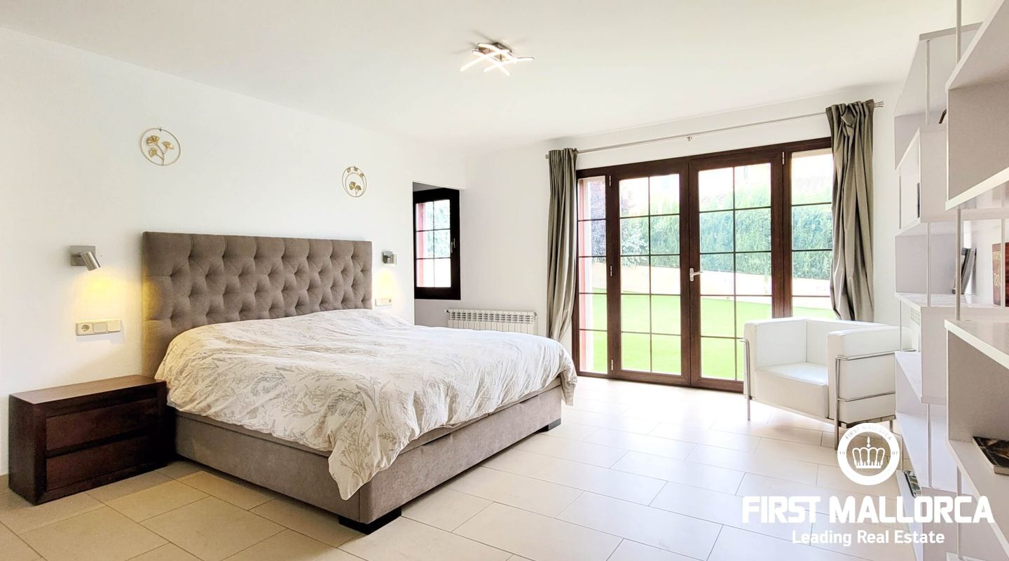 Esta Villa está situada en la zona de Sa Cabaneta, un barrio muy tranquilo. Con una piscina muy grande, de más de 52m2, y mucho espacio de jardín para relajarse, tiene una zona de terraza con sofás y una mesa de comedor junto a la piscina.