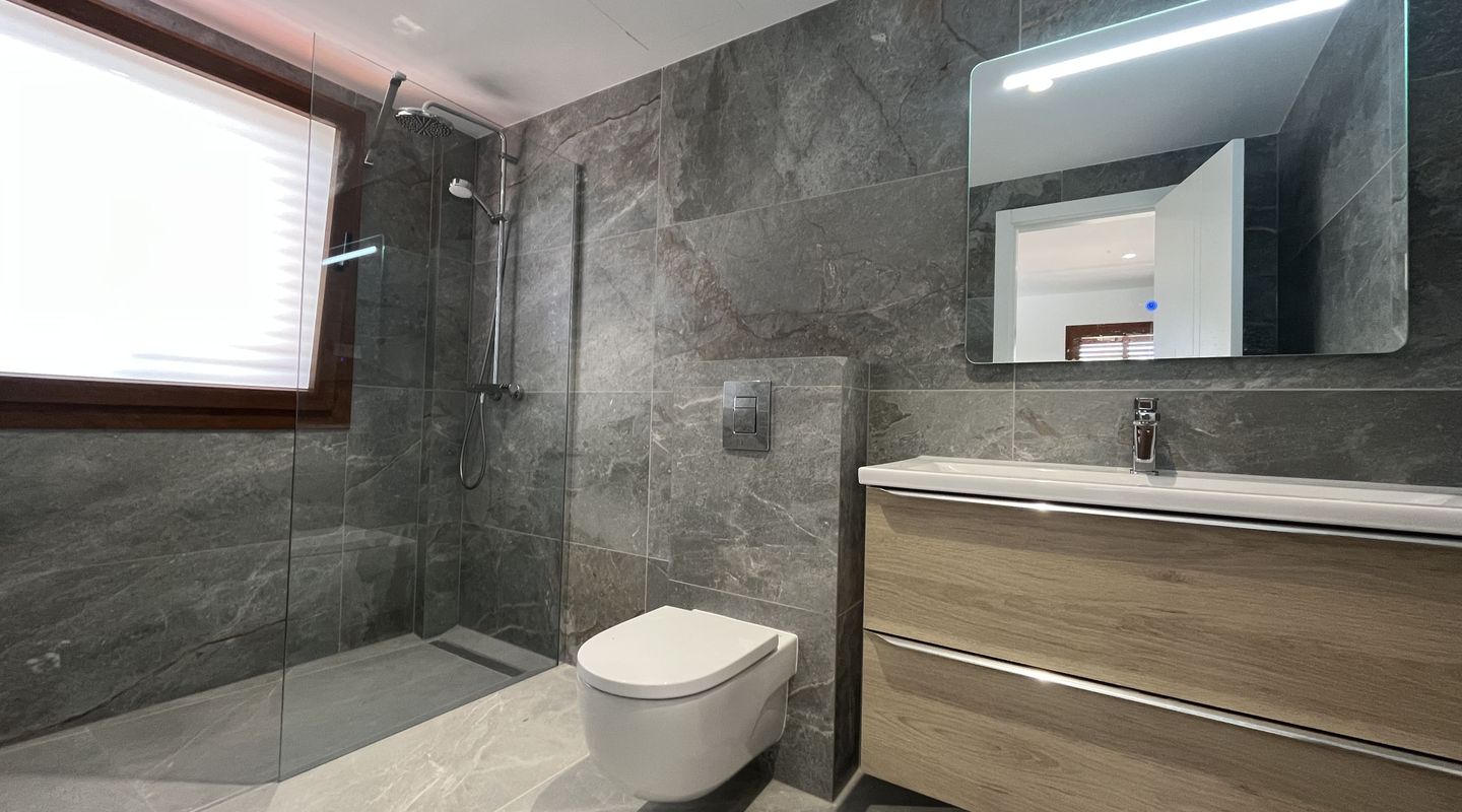 La vivienda cuenta con 4 habitaciones, dos de ellas con baño en suite, y una suite principal de ensueño con gran armario empotrado, baño privado y acceso directo a la terraza y piscina infinity, donde podrás disfrutar de amaneceres y atardeceres únicos.