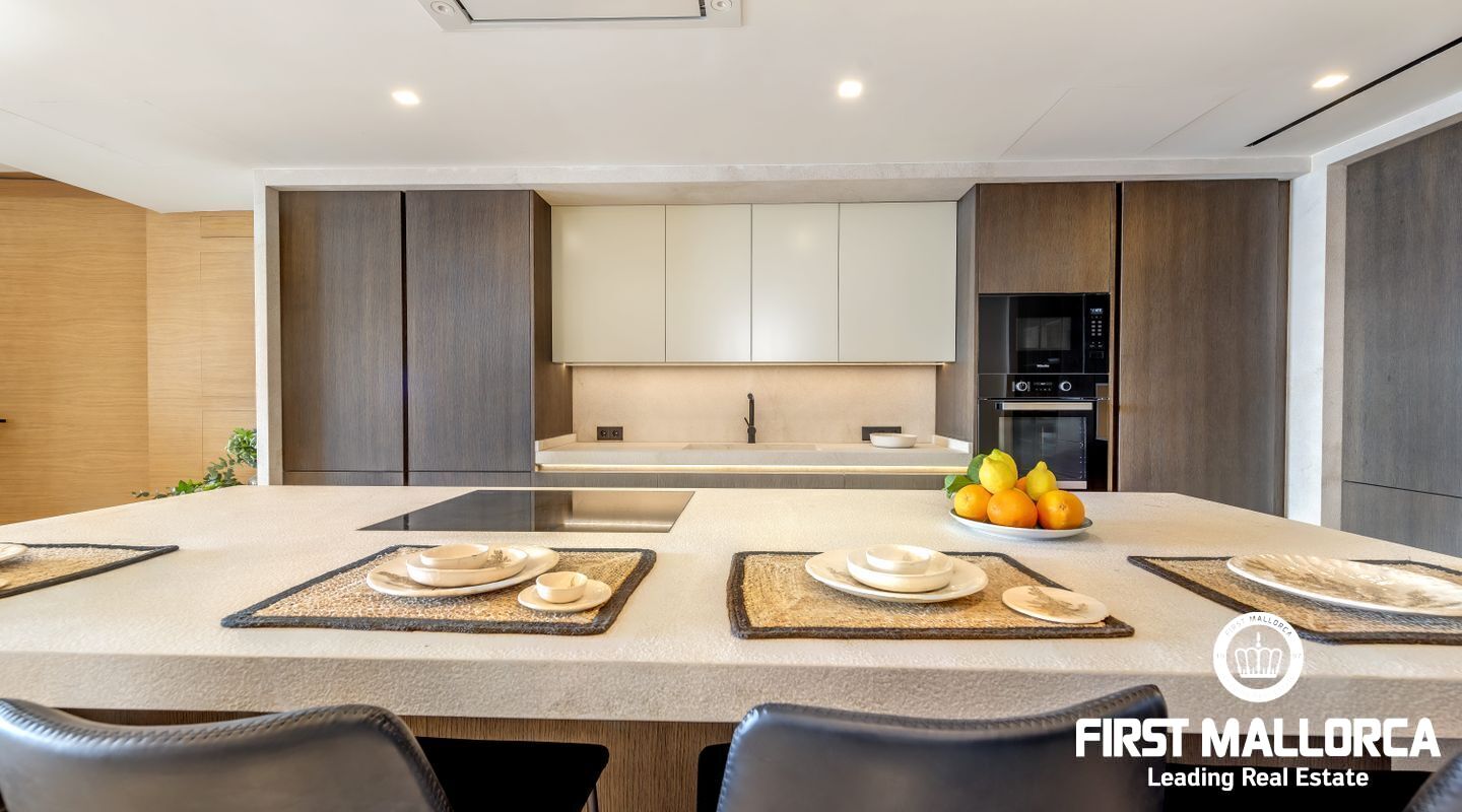 Promoción en construcción en una zona muy tranquila de Santa Ponsa. Consta de 3 bloques con 8 apartamentos cada uno. Todos tienen 155m2 construidos mas 18m2 de terraza cubierta. Las plantas bajas tienen una terraza/jardin privado de 90m2 y los aticos una azotea de 90m2 con piscina privada. Todas tienen 4 dormitorios y 3 baños (siendo el principal en Suite). La tecnología utilizada en la construcción cuenta con un sistema de ventilación de doble flujo que permite ventilar la vivienda sin sufrir molestias por ruidos o cambios de temperatura así como calefacción por suelo radiante. Bonito estilo de interiores con electrodomésticos de madera, suelos de piedra, gran cocina abierta con isla. El edificio cuenta con una gran piscina infinita, ascensor y aparcamiento subterráneo. Precios desde 1.443.000€. No dude en contactar con nosotros para ver este fantástico complejo.