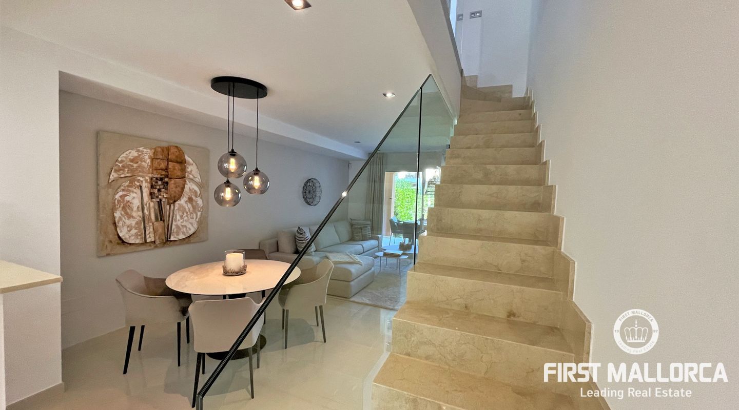 Esta casa adosada de alta calidad se encuentra en una residencia muy deseable a poca distancia de la playa de Camp de Mar. La propiedad está en perfecto estado y ofrece en dos niveles, una cómoda sala de estar / comedor, una cocina moderna totalmente equipada, 2 dormitorios con dos baños, uno de ellos en suite, así como agradables zonas de terraza y un jardín con césped. En el encantador complejo, la gran piscina ofrece refrescarse en verano. Las características de este adosado incluyen: Doble acristalamiento, ventanas de aluminio, aire acondicionado frío/calor, calefacción por suelo radiante y una plaza de aparcamiento privado. Por favor, no dude en ponerse en contacto con nosotros para más detalles o para concertar una visita.