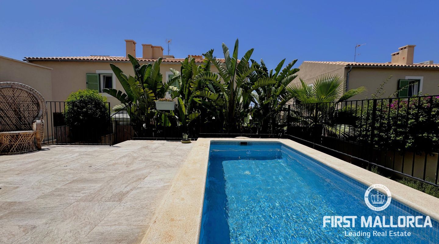 La casa destaca por su gran terraza orientada al sur con superficie antideslizante, armonizada cromáticamente con la zona de la piscina. La piscina está equipada con un sistema autolimpiante. Un toldo automático proporciona sombra agradable. El jardín, cuidadosamente diseñado, dispone de riego automático y un patio delantero de fácil mantenimiento.