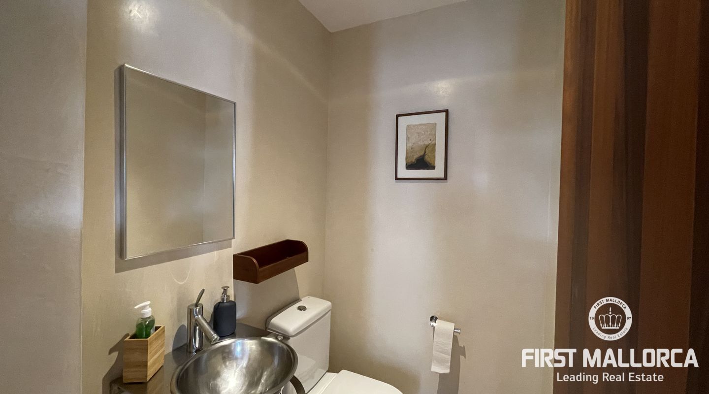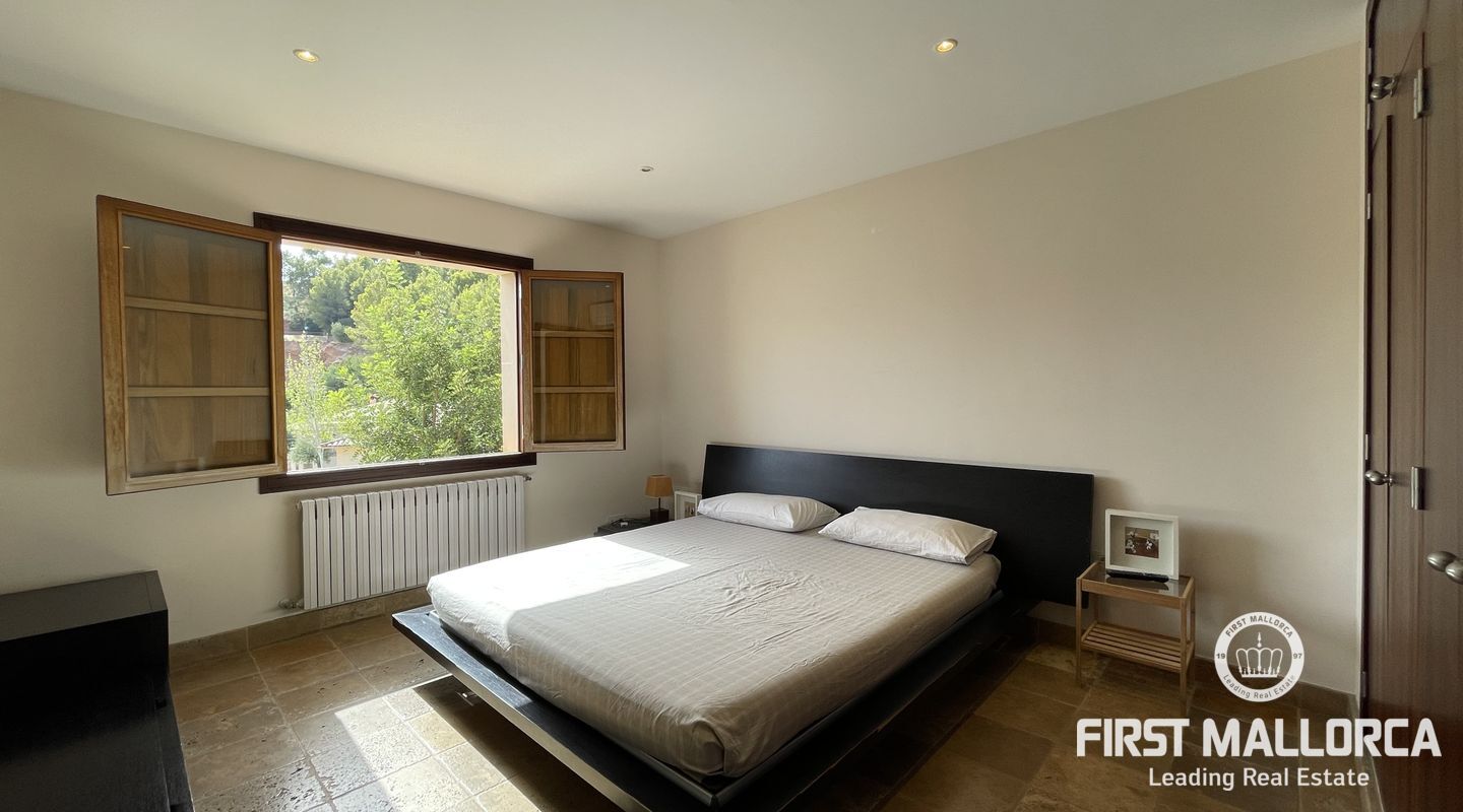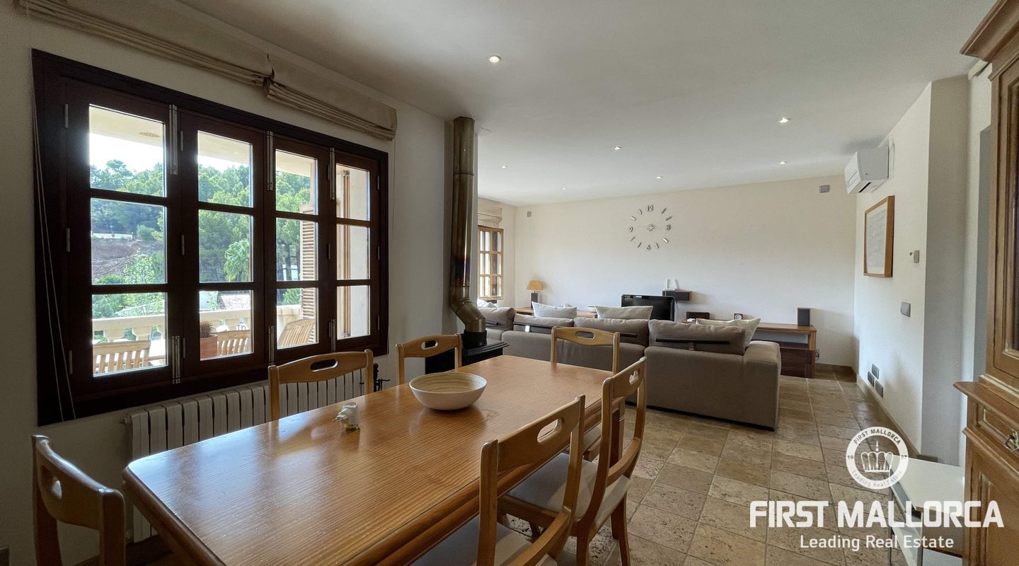 Esta casa adosada tiene una buena distribución. Las habitaciones son amplias, al igual que los baños y la cocina-salón con despensa. Desde la entrada a nivel de calle se accede al pasillo y desde aquí a la cocina, un dormitorio, un aseo y la acogedora sala de estar orientada al oeste con acceso al balcón cubierto con una vista maravillosa. Los demás dormitorios y baños se encuentran en la planta inferior. En el nivel del jardín está el gran garaje doble. La propiedad es fácil de mantener y está plantada con arbustos y árboles mediterráneos. Cabe la posibilidad de construir una piscina. La casa está equipada con ventanas aislantes, tiene aire acondicionado frío/calor en todas las habitaciones, está en muy buen estado y lista para su ocupación inmediata. La licencia de alquiler para hasta 8 personas hace que la oferta sea adicionalmente atractiva.