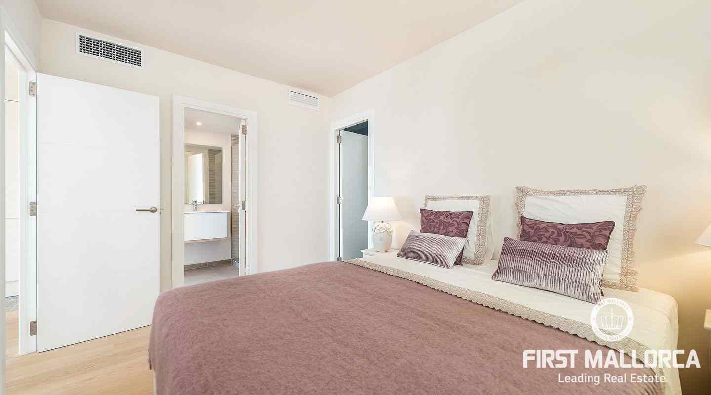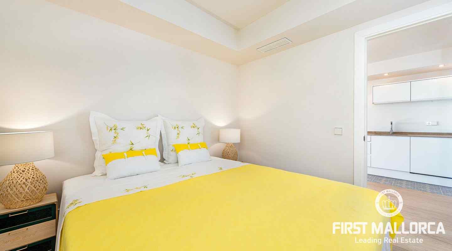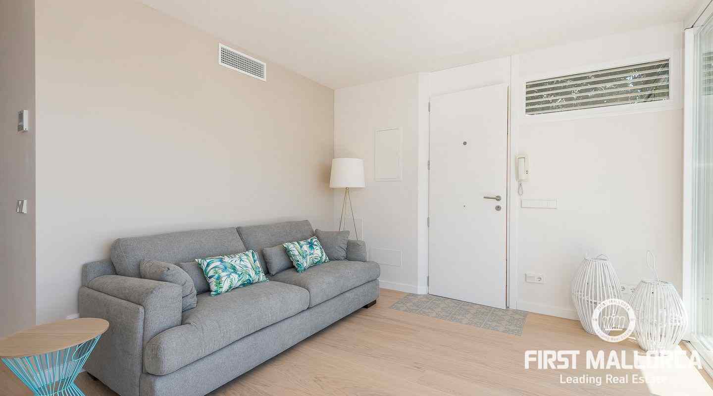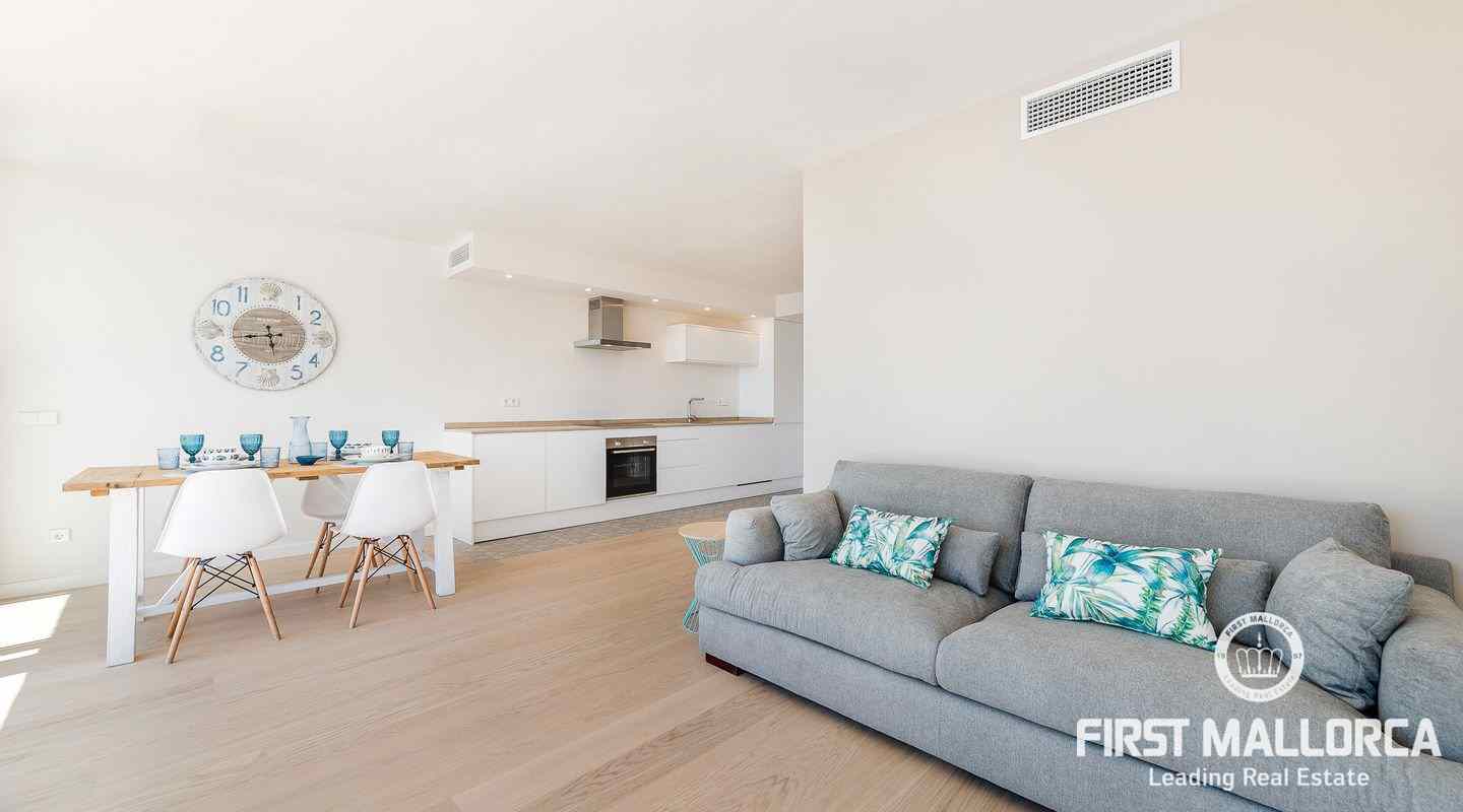 El apartamento tiene una luminosa sala de estar conectada directamente a la terraza con vista al mar, una cocina abierta y 2 dormitorios que comparten un baño. El apartamento se diseñó con gran atención al detalle y es elegante y a la vez práctico. La comunidad goza de una fabulosa ubicación justo al lado de una de las playas más bonitas de Illetas y a pocos minutos a pie de varios beach clubs y restaurantes, así como de pequeñas tiendas.