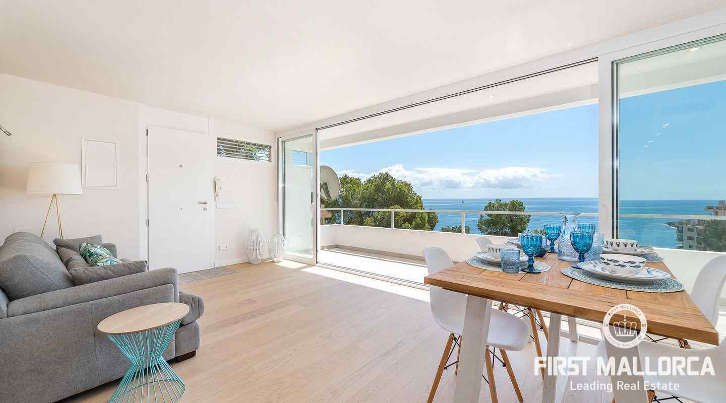 Este atractivo apartamento en perfecto estado justo encima de la playa en Illetas ofrece fantásticas vistas al mar. La propiedad fue recientemente modernizada para alcanzar un alto nivel y cuenta con un moderno interior.