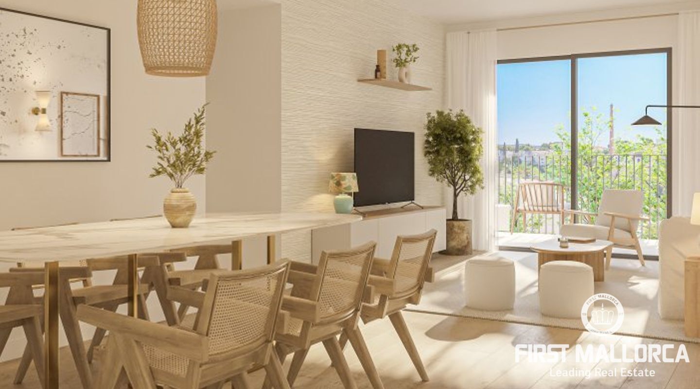 Este nuevo complejo en palabras de sus arquitecto, se configura como una ola marcada por el ritmo de las viviendas, disfrutando todas ellas de orientación exterior, abundante luz y ventilación natural. Hacia el interior, un atrio descubierto y ajardinado da acceso a las viviendas y potencia el encuentro social. Las amplias terrazas difuminan el límite interior-exterior y subrayan la conexión entre las casas y la naturaleza”. Ubicación, comunicaciones y servicios: esas son las tres claves para que tu casa esté bien situada. Este nuevo complejo cumple con todas ellas. La piscina comunitaria quedará completamente integrada en las zonas exteriores ajardinadas configurando un espacio único y diferente que se convertirá en uno de los lugares más especiales del conjunto. Disfruta de un relajante baño o invita a tus seres queridos a refrescarse en las tardes de verano para compartir momentos inolvidables. No dude en ponerse en contacto con el equipo de First Mallorca para organizar una visita!