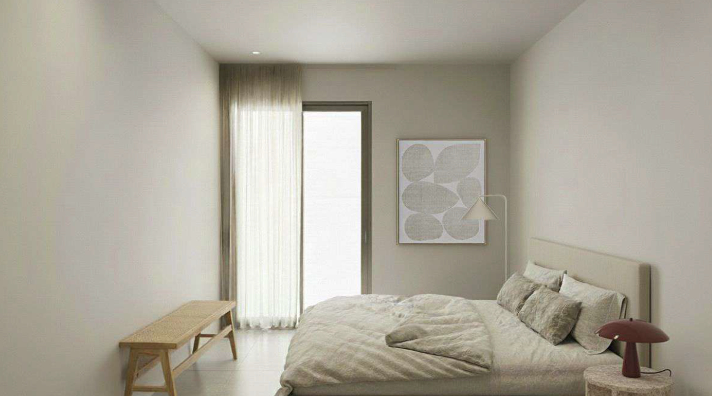 La vivienda se distribuye en tres dormitorios (dos dobles y uno sencillo) dispone de dos baños completos, uno de ellos en suite con bañera y otro con ducha, ambos con acabados modernos y de alta gama.
