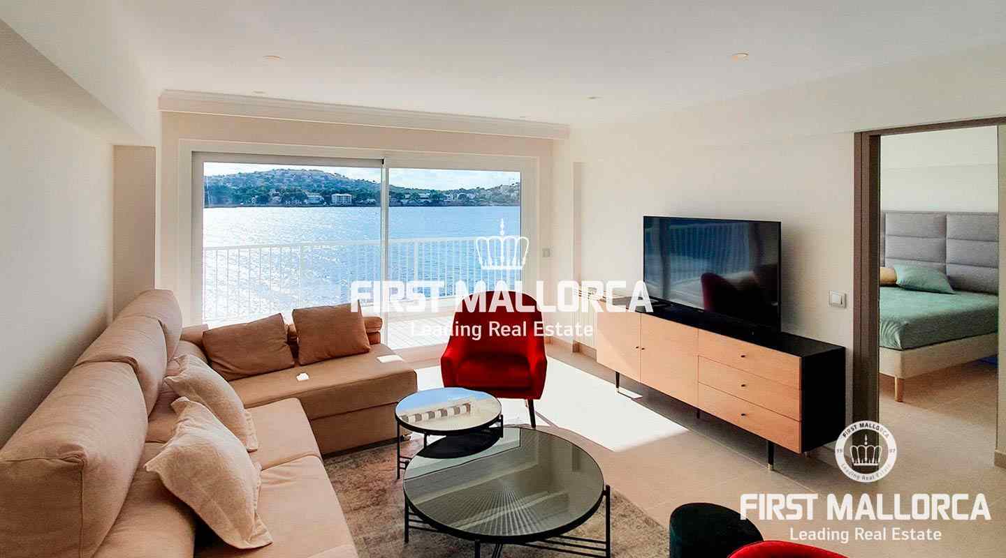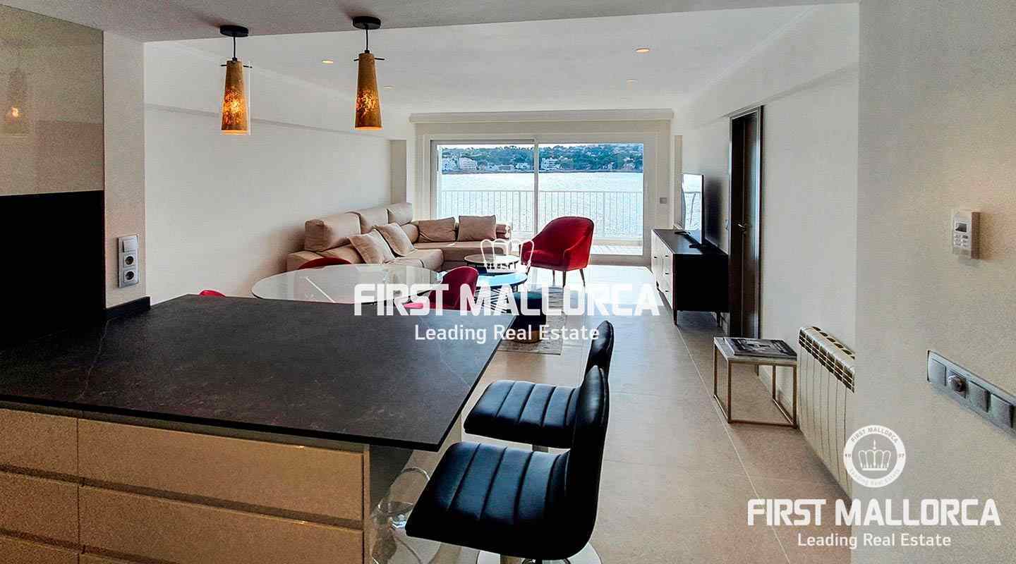 Atractivo apartamento en primera línea en Santa Ponsa con gran piscina comunitaria y acceso directo al mar. El apartamento fue completamente reformado el año pasado y ahora se ofrece a la venta en estado a estrenar. El inmueble ofrece 2 dormitorios y 2 baños más una habitación adicional que se puede utilizar como estudio o habitación individual, una cocina diáfana totalmente equipada y una sala de estar que se abre a la terraza frente al mar. También hay un lavadero independiente. El apartamento se vende amueblado y el edificio cuenta con portero físico. En las inmediaciones encontrará todos los servicios para las necesidades diarias, así como cafeterías y restaurantes. La gran playa de arena de Santa Ponsa está a sólo unos minutos a pie. El centro de la ciudad de Palma y el aeropuerto internacional se encuentran a 15 y 20 minutos en coche.