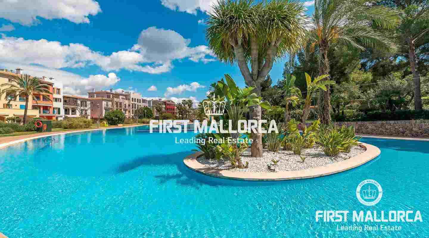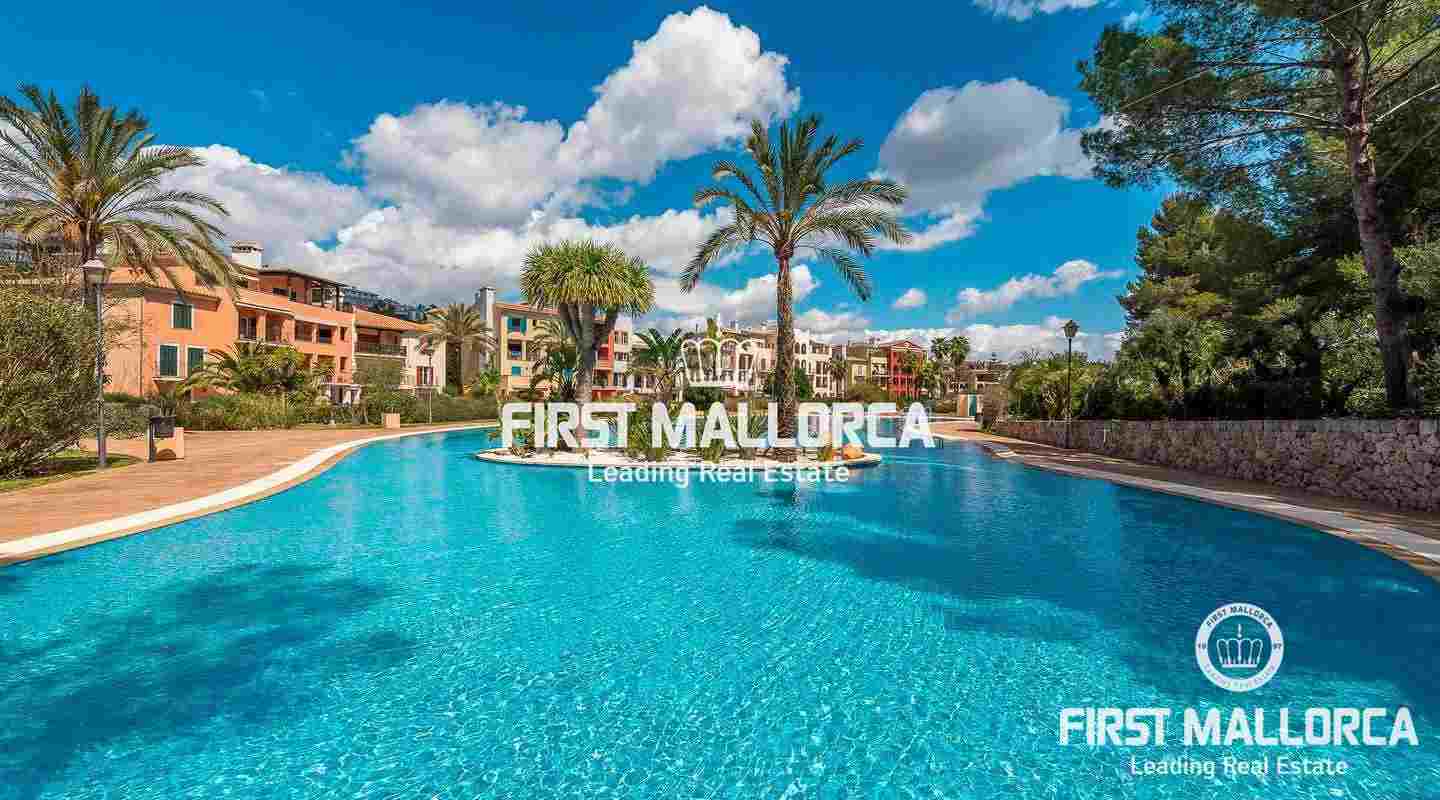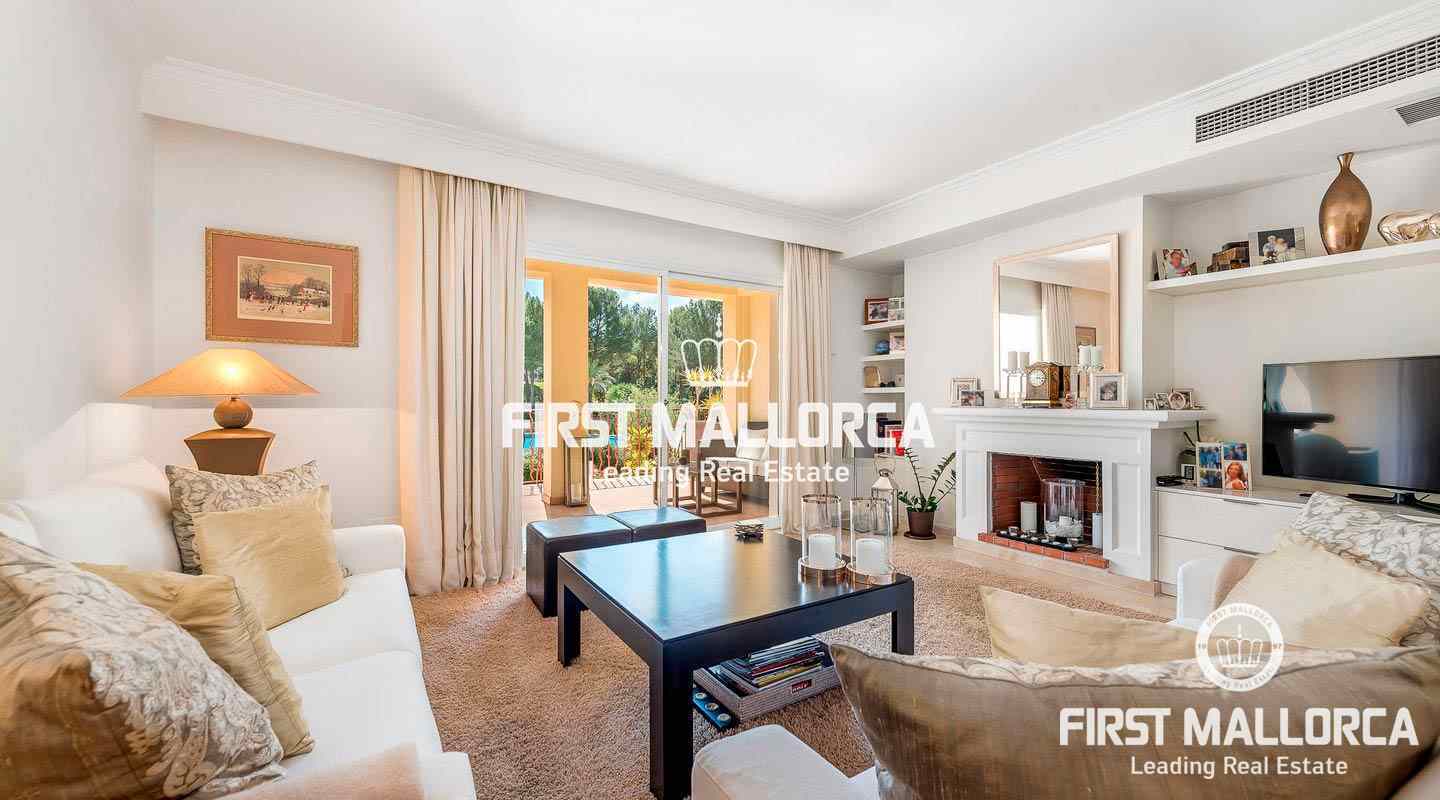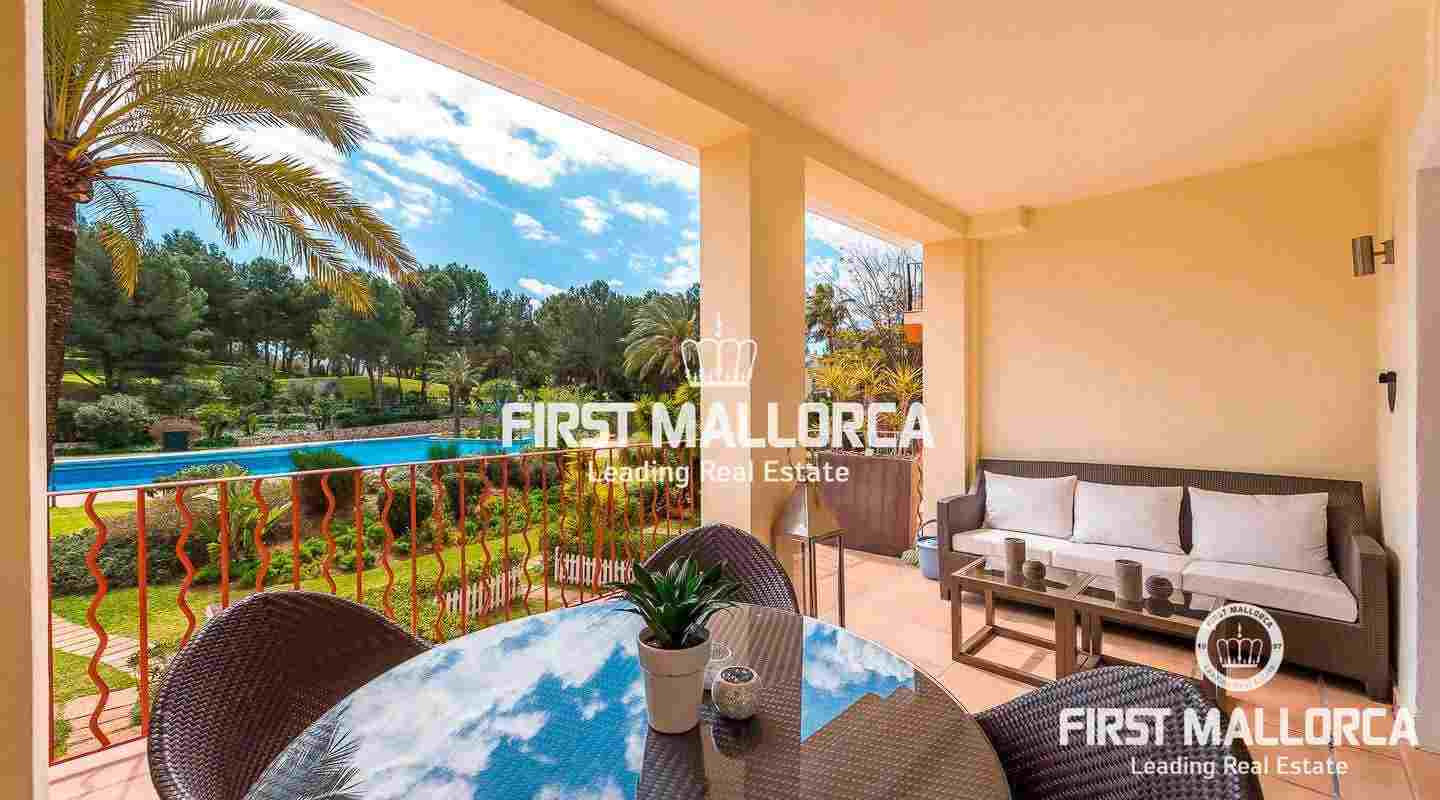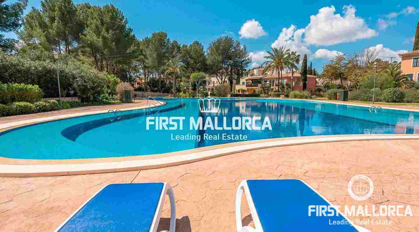 Este atractivo y luminoso apartamento está ubicado en una exclusiva comunidad en el suroeste de Mallorca y goza de vistas a los jardines subtropicales, la amplia piscina principal y el campo de Real Golf de Bendinat.