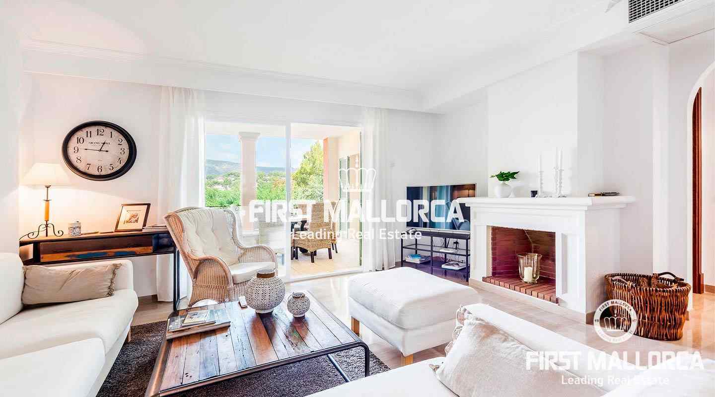 Este elegante apartamento de calidad con vistas al Real Golf de Bendinat, los jardines comunitarios y las montañas, dispone de 2 dormitorios, 2 baños, uno de ellos en suite, y un amplio salón-comedor con cocina adyacente.