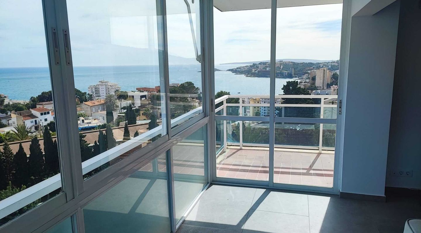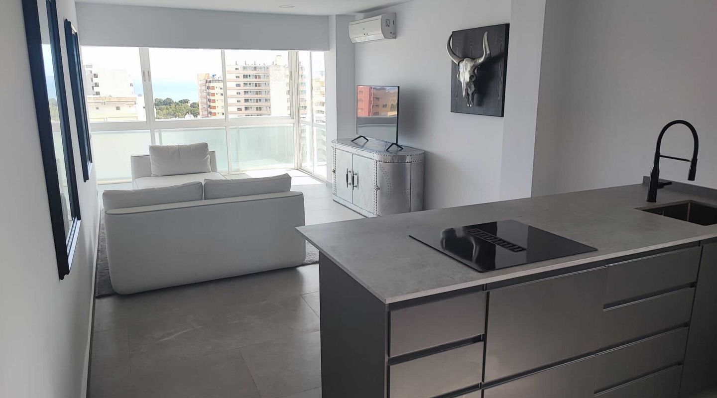 Piso con vista panorámica al mar. Desde la sala de estar de planta abierta de este hermoso piso de 1 dormitorio en la 5ª planta, se puede disfrutar de las impresionantes vistas panorámicas al mar en toda la sala de estar. El piso tiene 48m² y un balcón de 6m². El piso fue completamente renovado a mediados/finales de 2022 y equipado con una cocina y muebles nuevos y modernos. El edificio tiene ascensor, plaza de parking cubierta y una bonita piscina comunitaria. El piso dispone de una plaza de aparcamiento privada y cubierta.